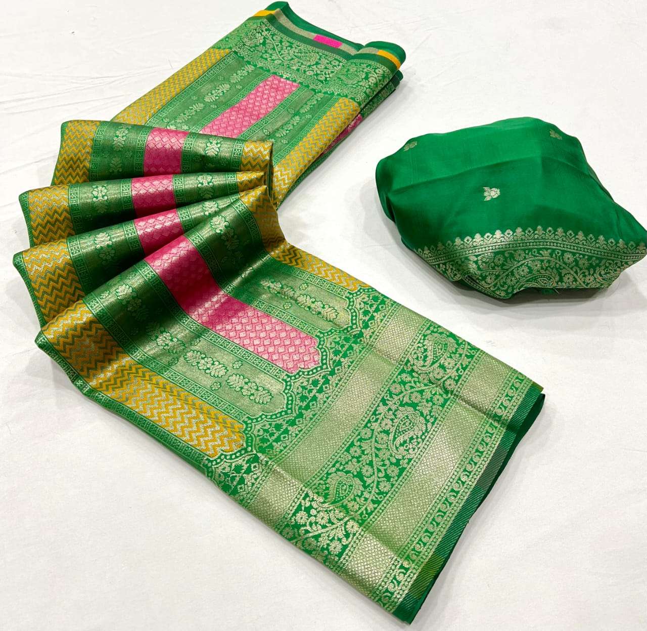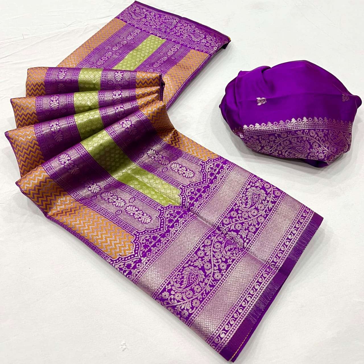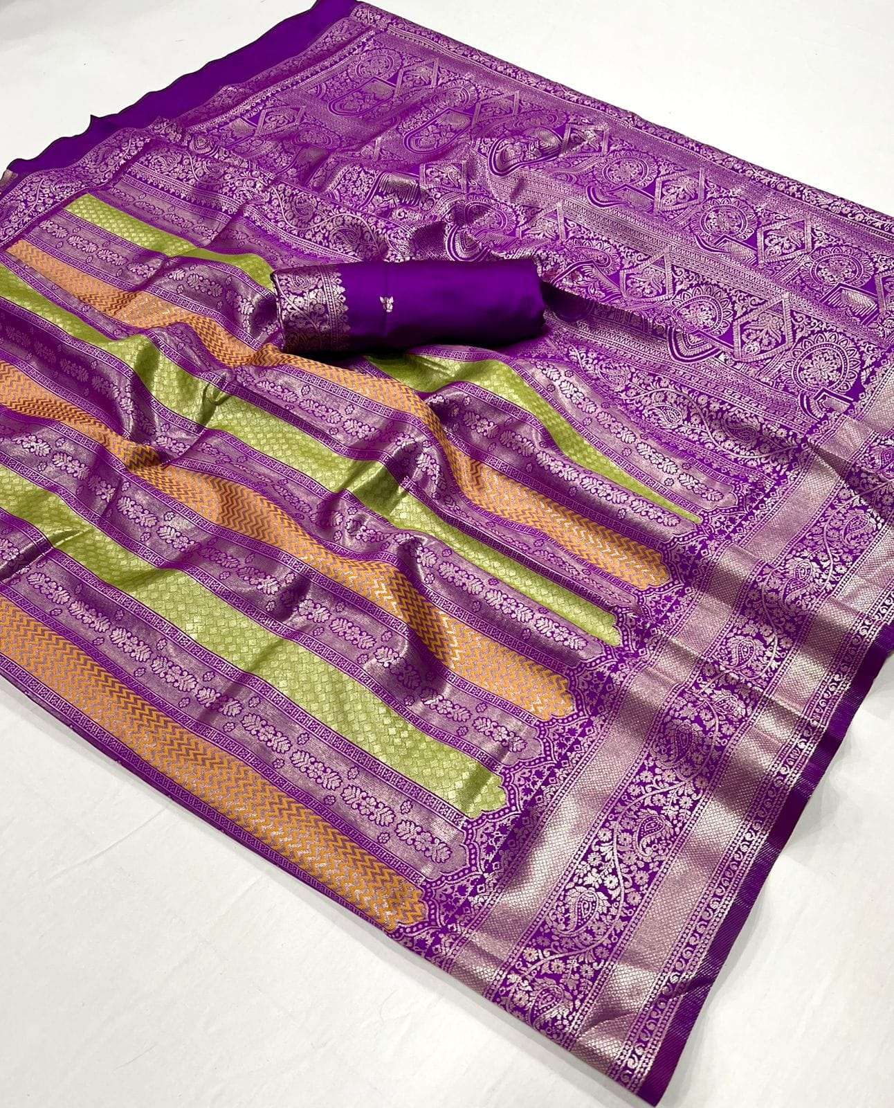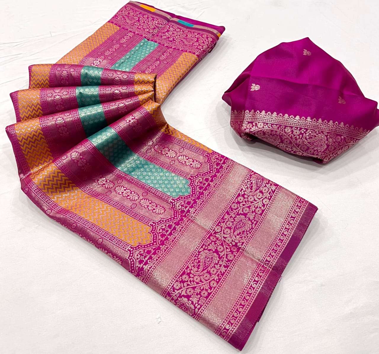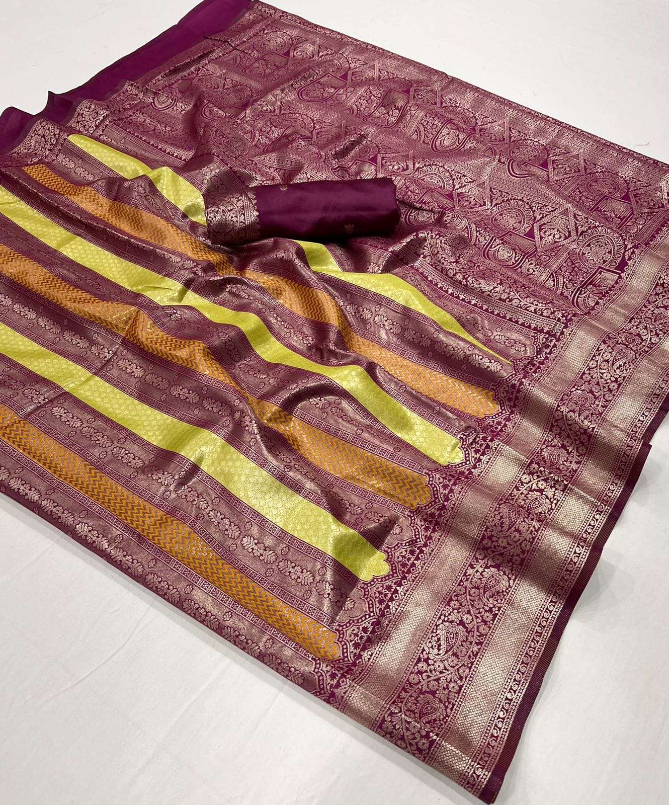 🔰 *Fabric*- *Kanjivaram silk Saree with elegant Weaving multi color lining on all over the saree Weaving border on either side Rich & Elegant Weaving Pallu as shown*