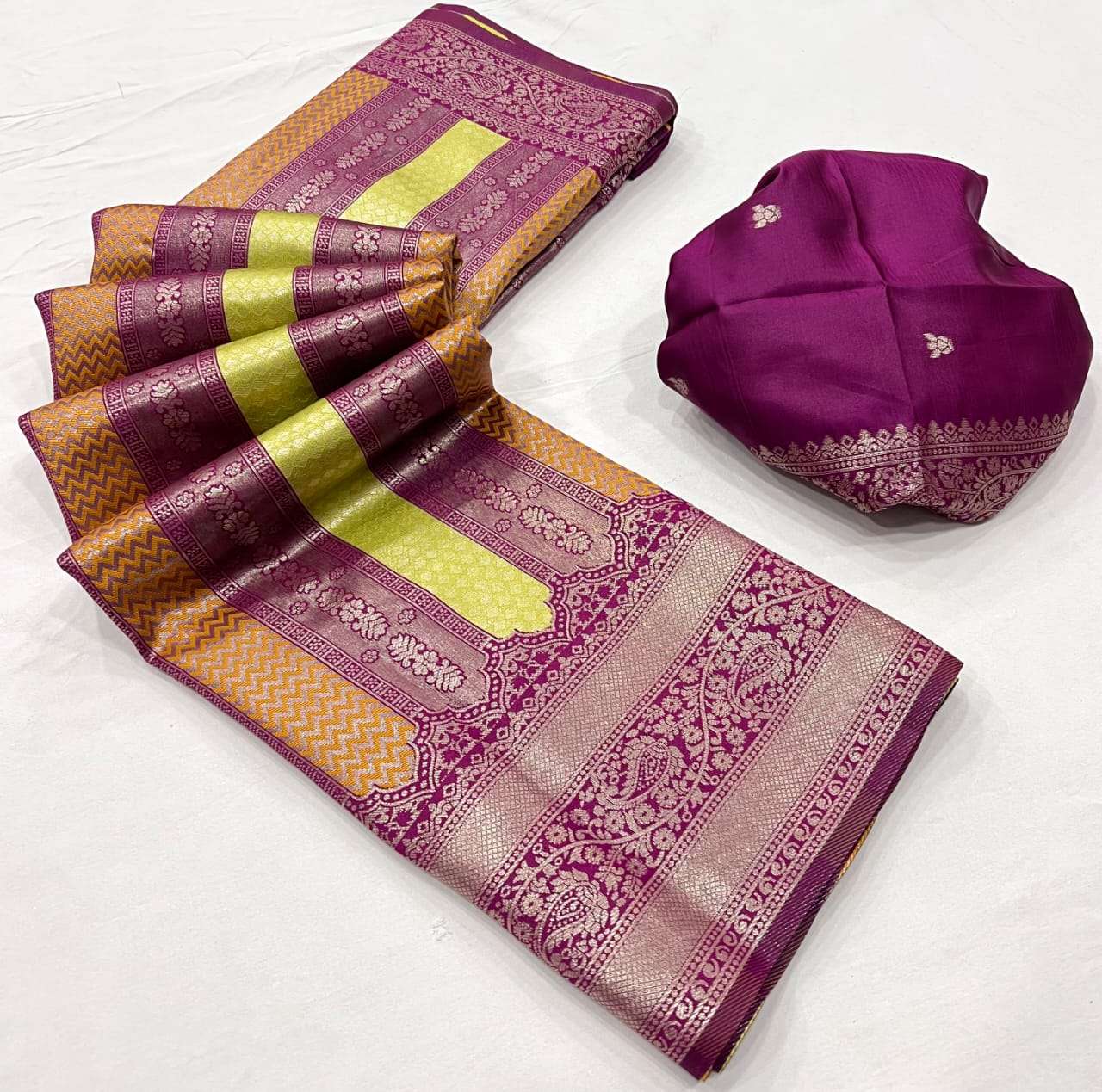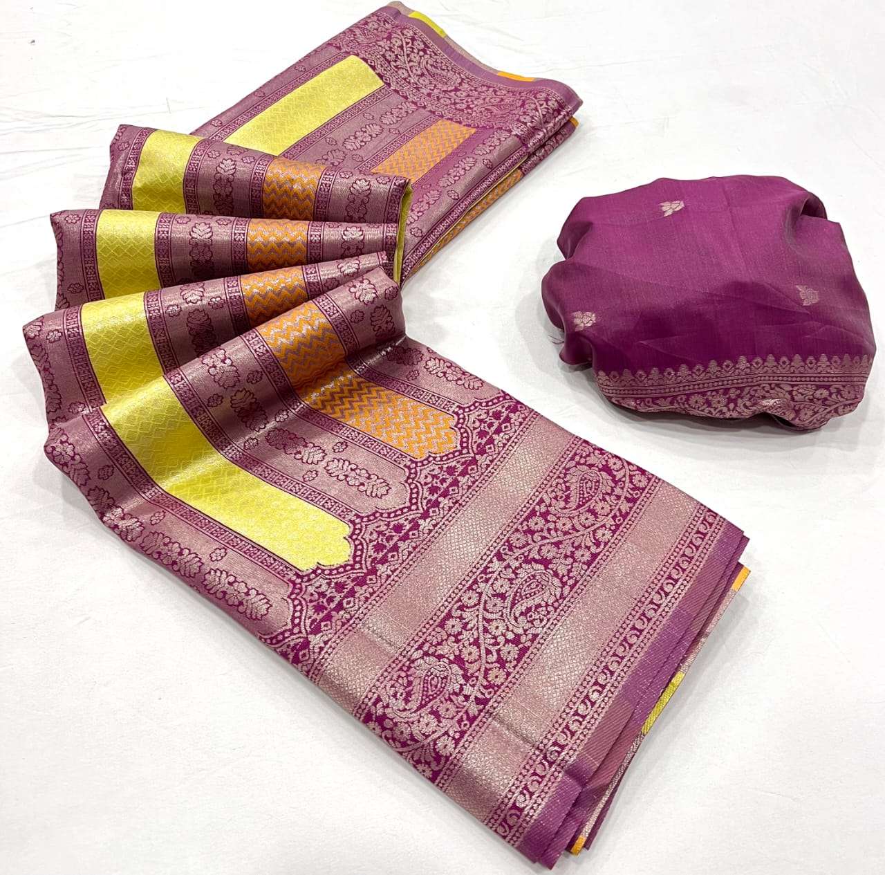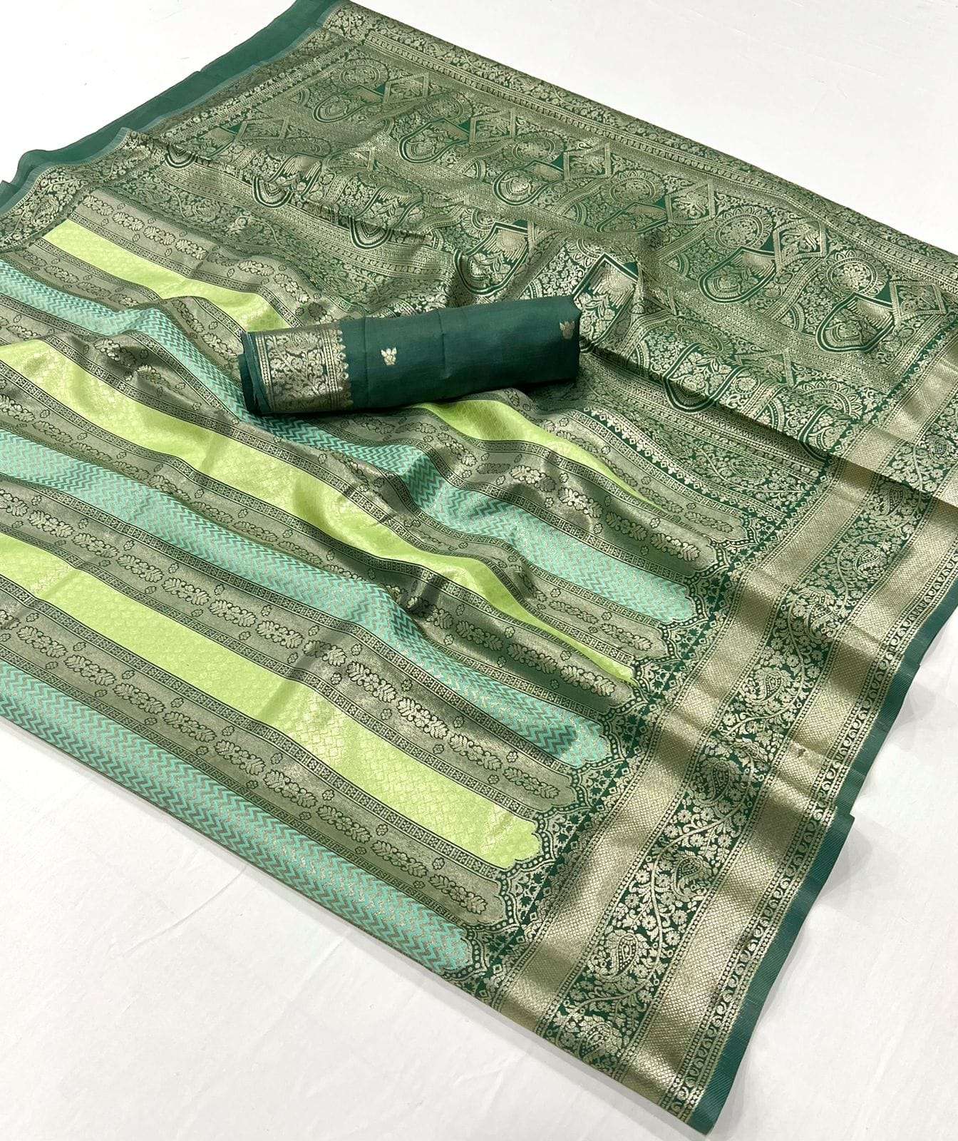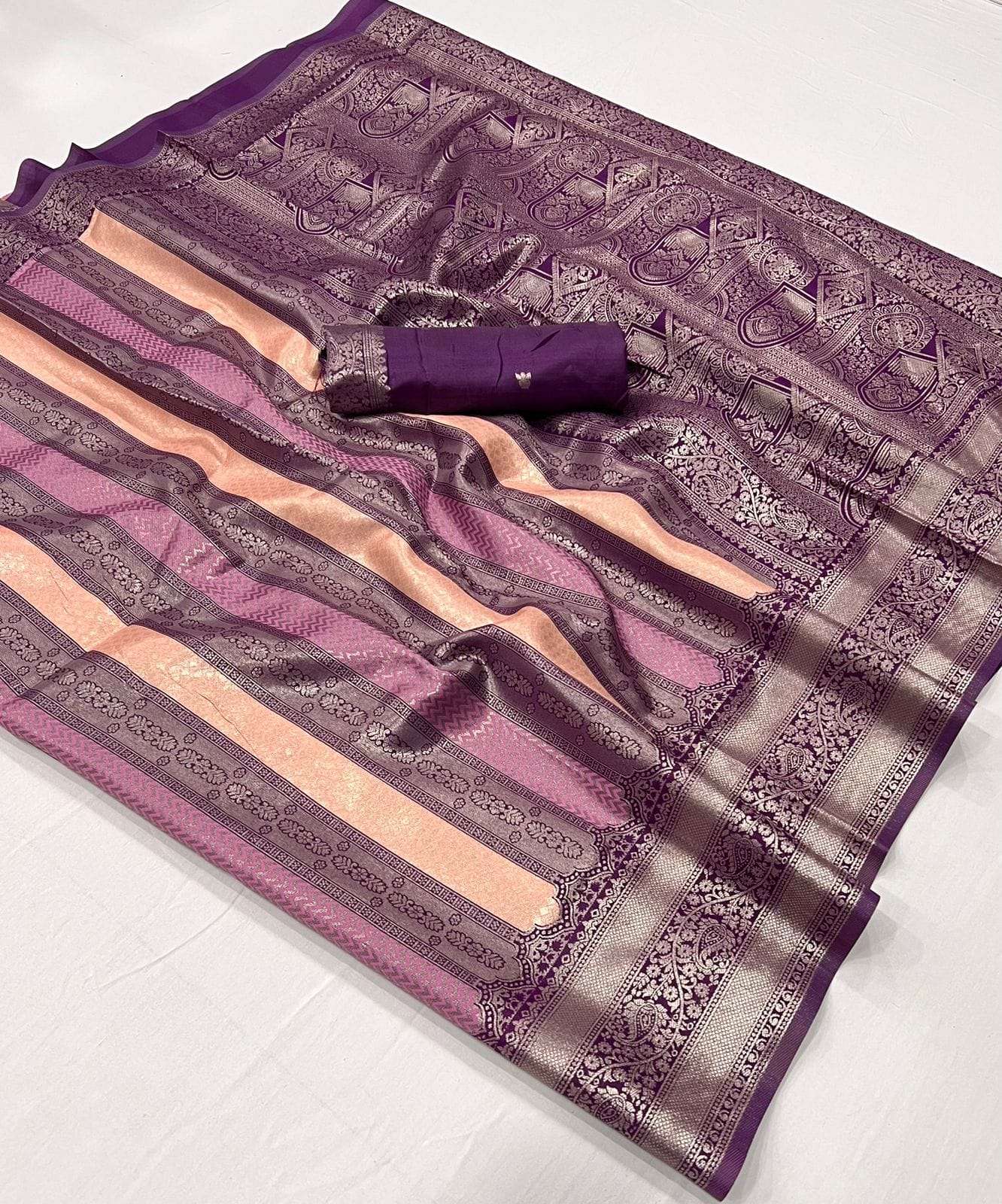 🔰 *Fabric*- *Kanjivaram silk Saree with elegant Weaving multi color lining on all over the saree Weaving border on either side Rich & Elegant Weaving Pallu as shown*