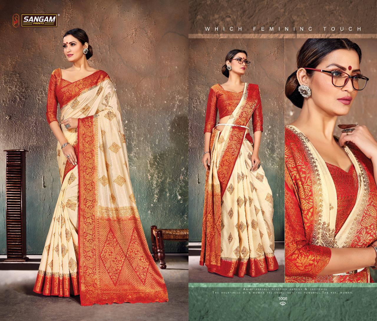 Buy Online Kannad Silk By Sangam Silk Sarees Set And Single Wholesale Dealer And Exporter India 6 Pcs of Full Catalogue at Wholesale Price. Looking for Kannad Silk By Sangam Silk Sarees Set And Single Wholesale Dealer And Exporter India Full Catalouge at Best Price? Buy Now Kannad Silk By Sangam Silk Sarees Set And Single Wholesale Dealer And Exporter India at Wholesale Rate of Rs 6990 with Total 6 Pcs from authroized dealer and supplier of BRAND'S Brand. Cost of Each piece is just only Rs 1165 which is very low and affordable price to resale the product in your retail store ,This is Surat based Wholesale Supplier & Dealer of BRAND'S Brand. Click on Brand name to Know more about BRAND'S Brand's products.Call or Whatsapp on 9898838984 for booking or enquiry