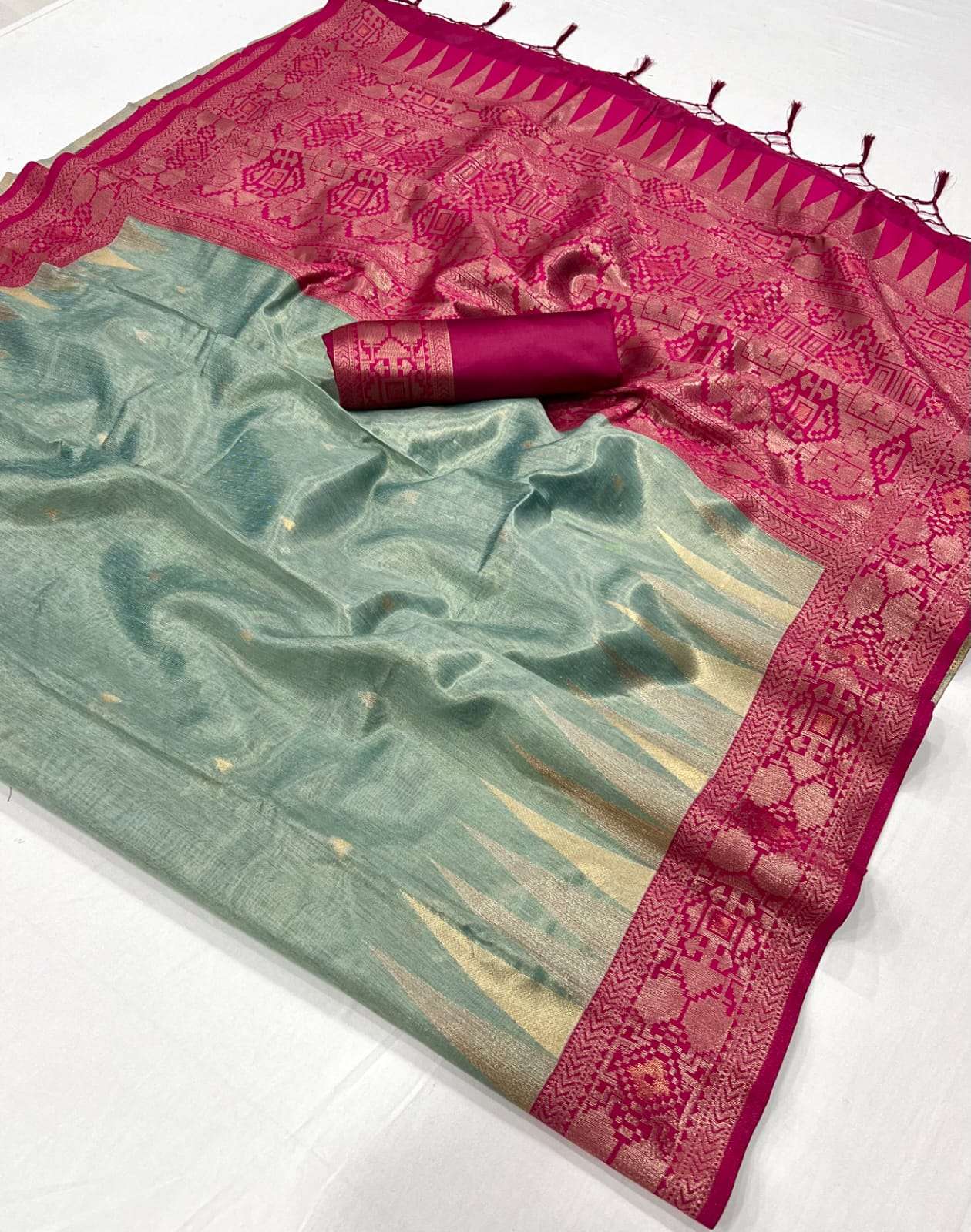 🔰 *Fabric*- *HANDWOVEN ZARI TISSUE SILK - CONTRAST PALLU & BLOUSE*