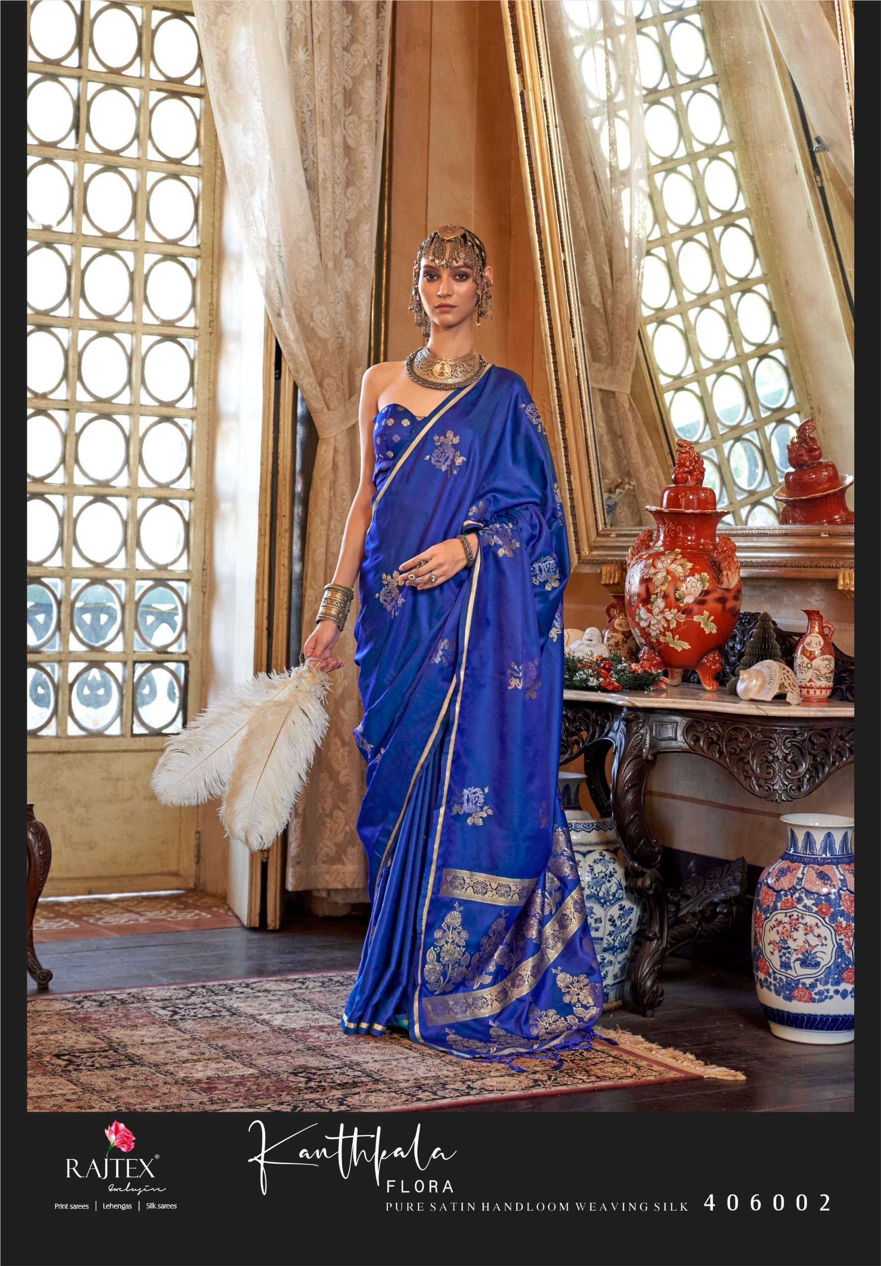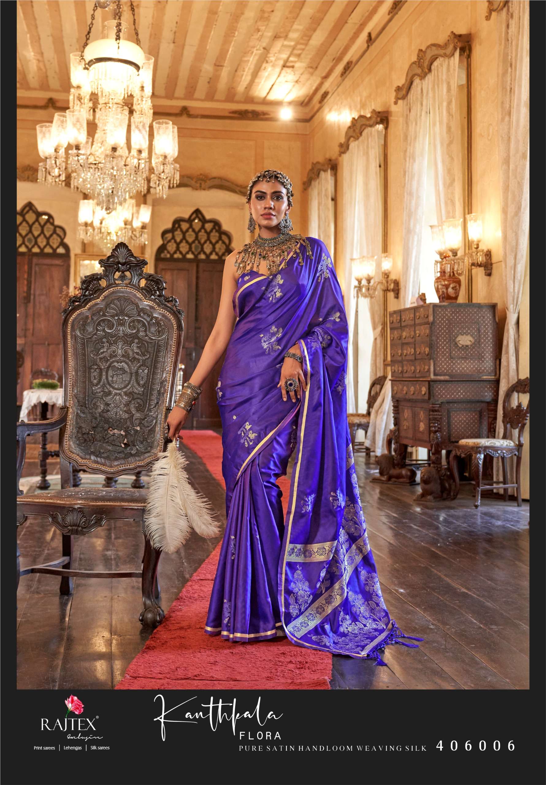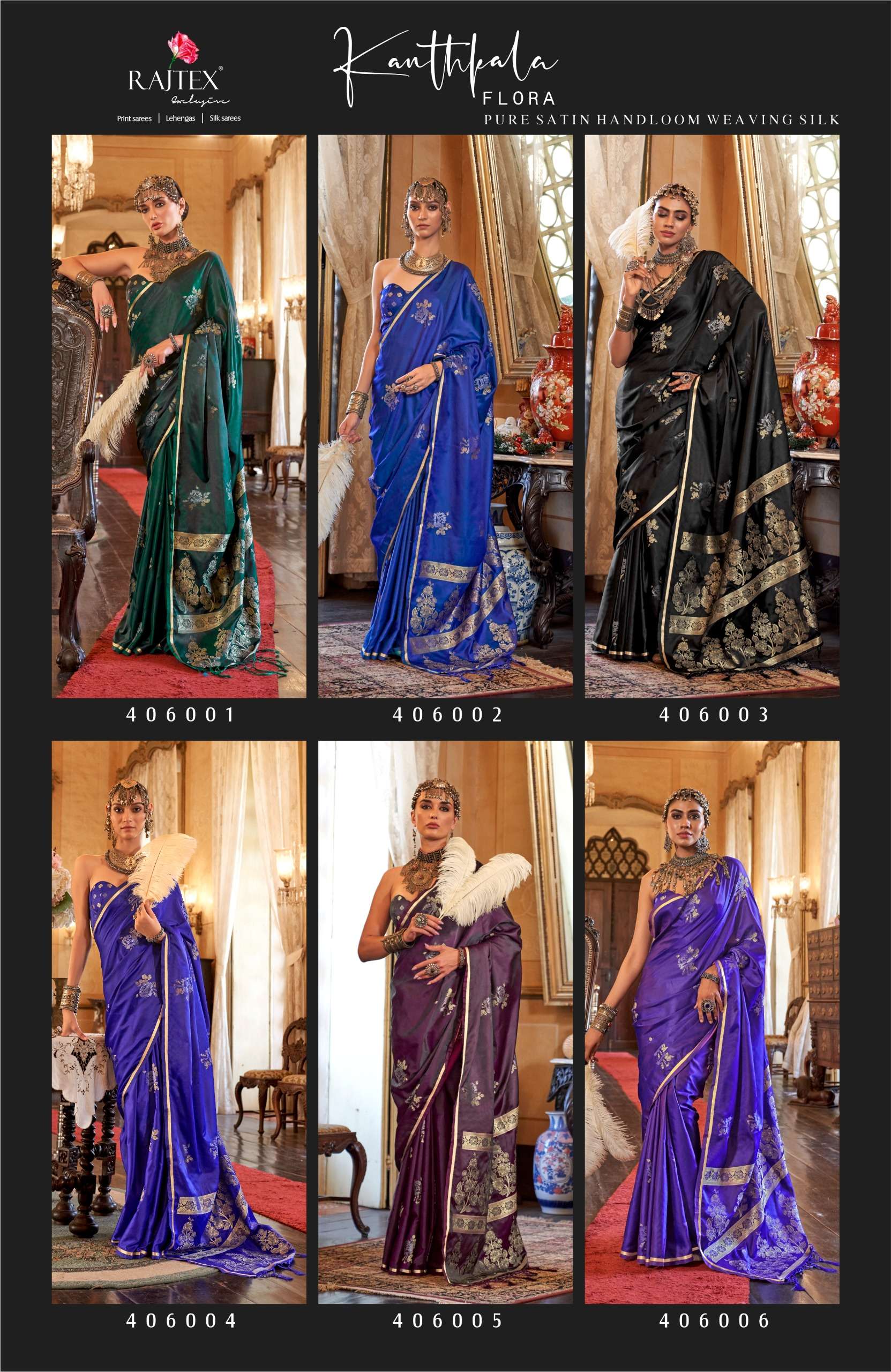 Kanthkala Flora Series 406001 TO 406006 by Rajtex Pure Satin silk saree collection manufacturer surat