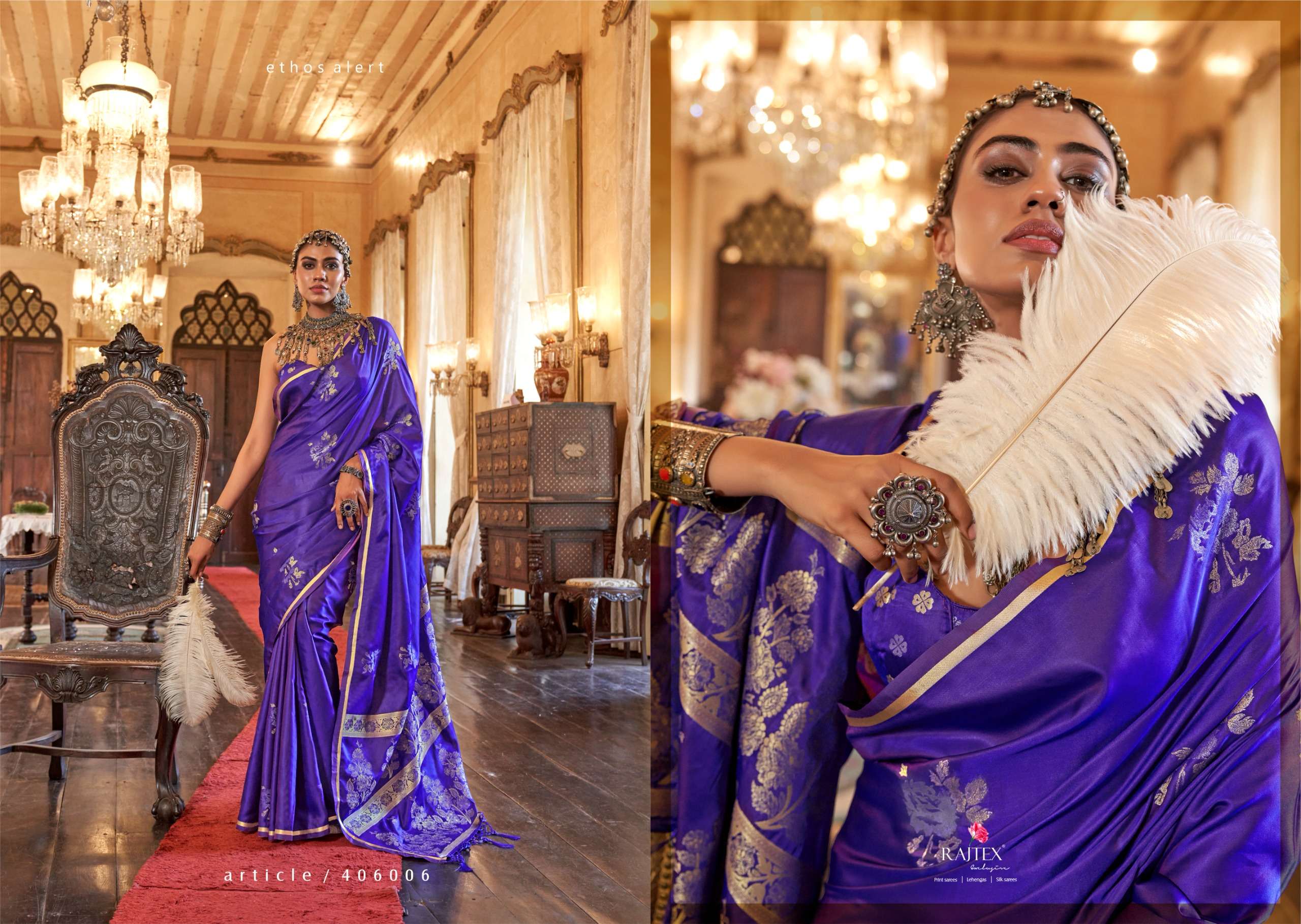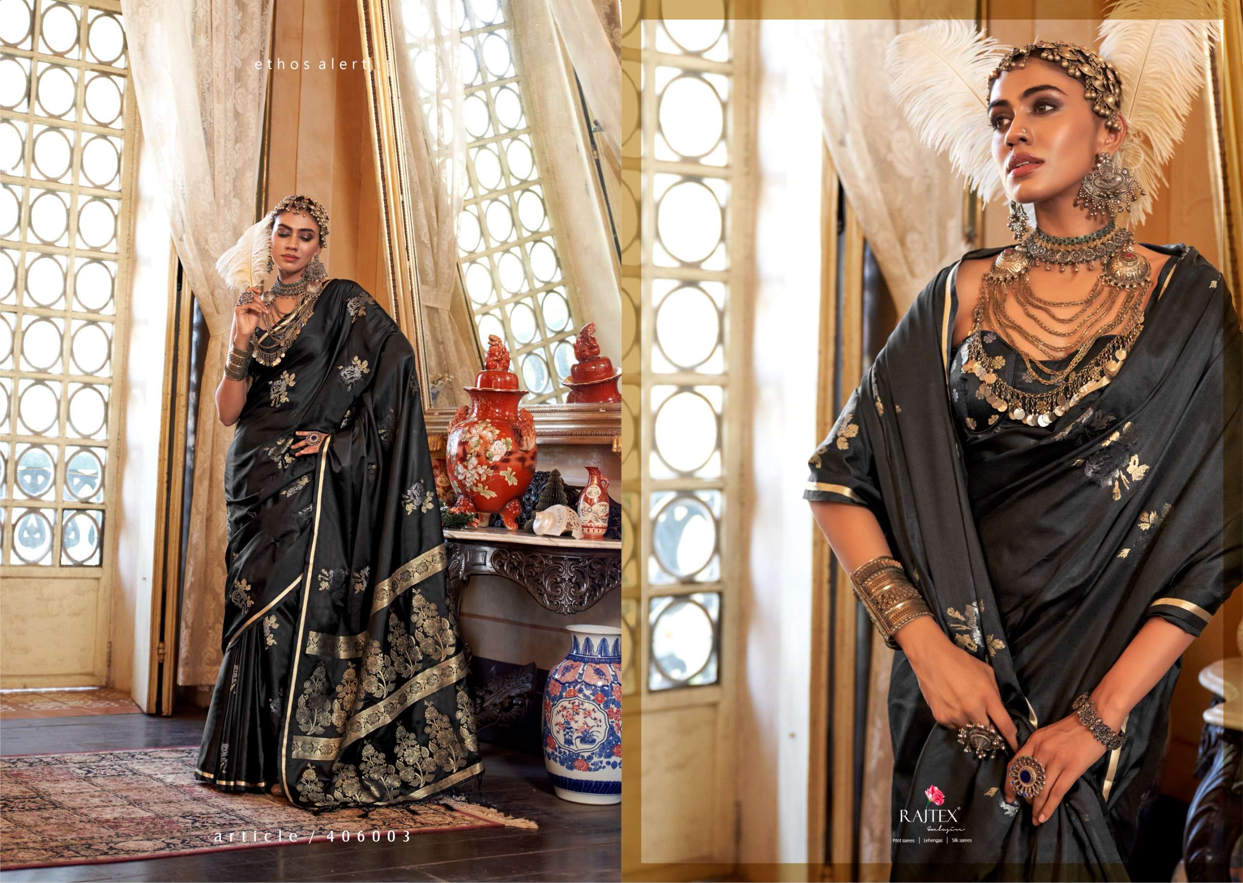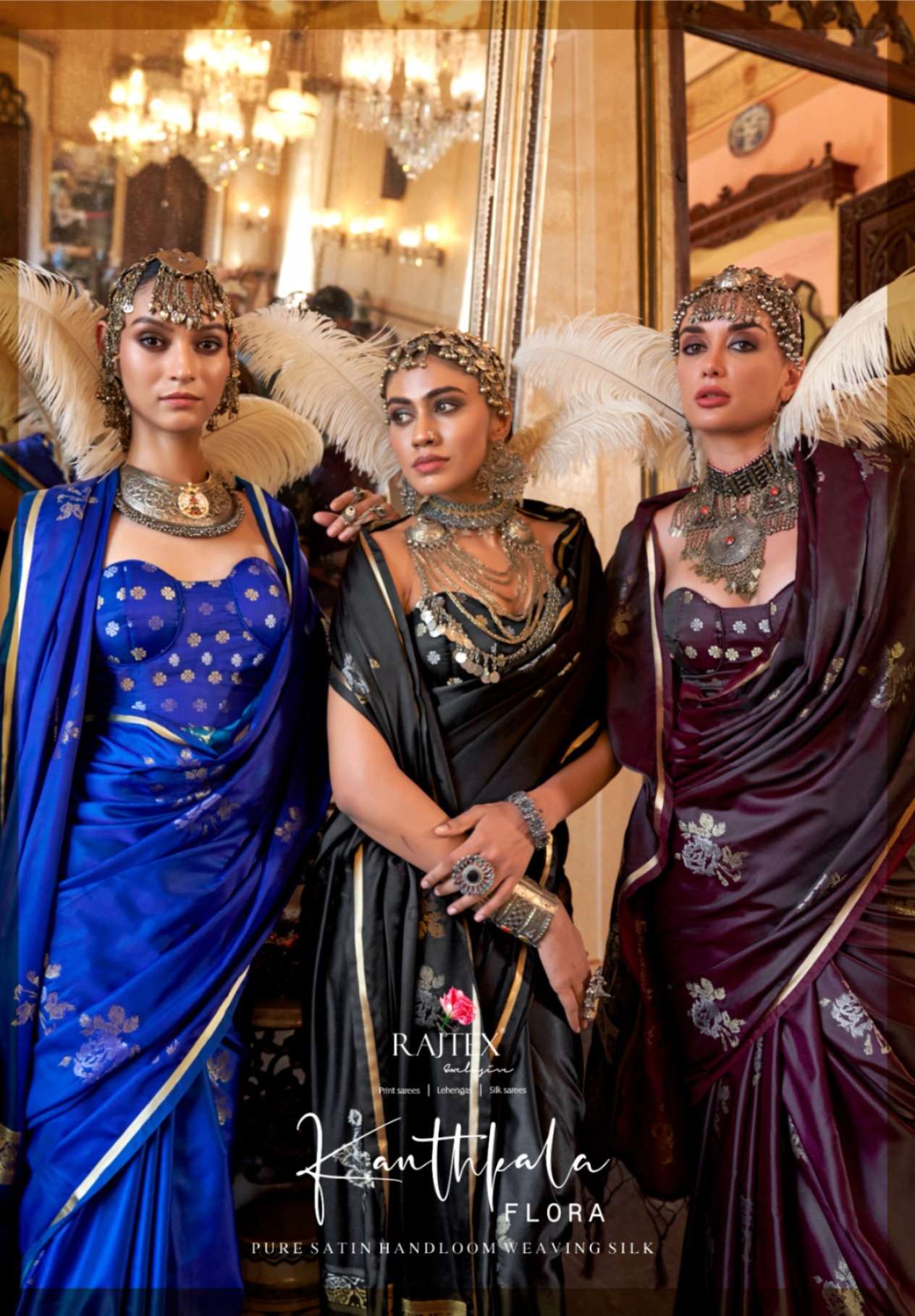 Kanthkala Flora Series 406001 TO 406006 by Rajtex Pure Satin silk saree collection manufacturer surat