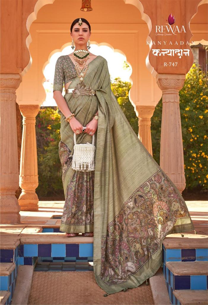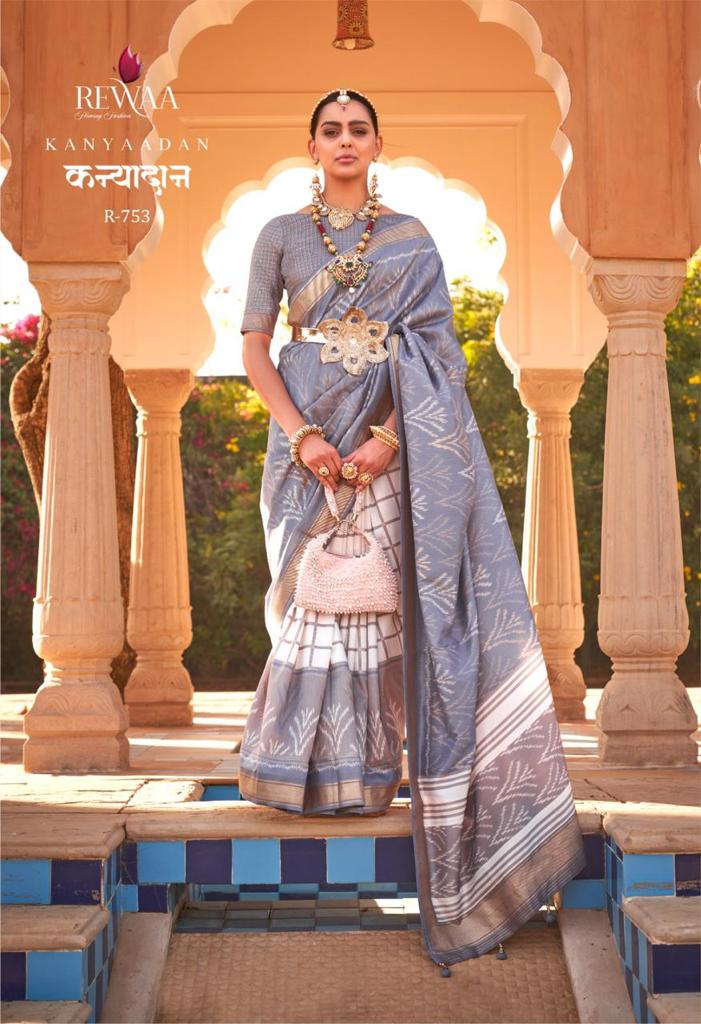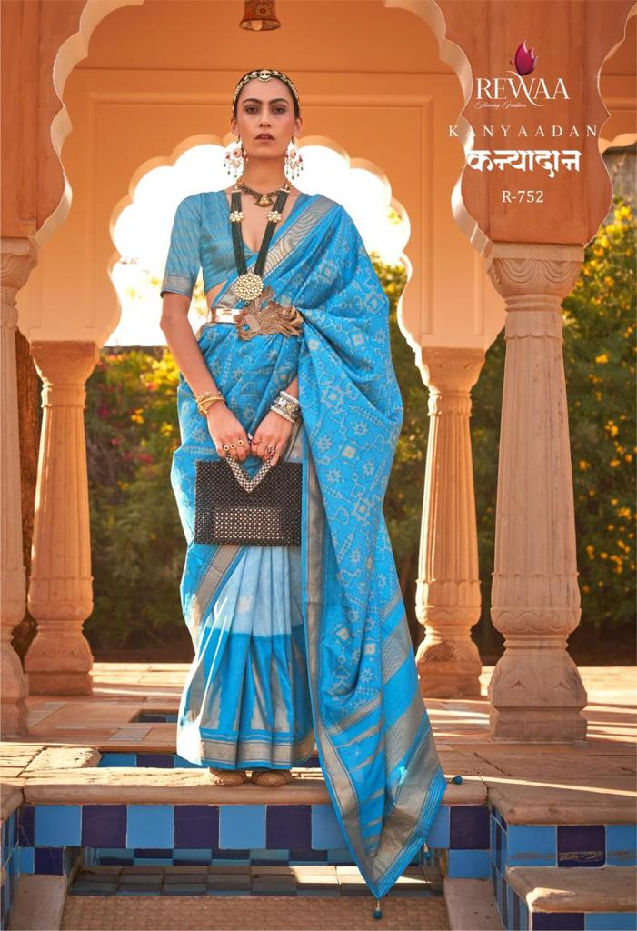 *BRAND : REWAA* *CATALOG : KANYADAAN* *PRICE :- 1995/- 5% GST EXTRA* *SAREE FABRIC -: SOFT KACHHI SILK* *BLOUSE FABRIC:- SOFT SILK* SINGLE AVAILABLE *READY DISPATCH* 100+Singles |