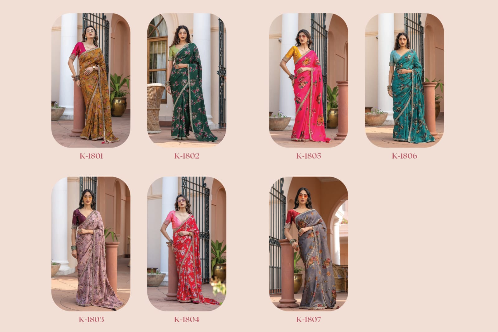 Buy Online Karagiri By Kira Creation Viscose Fancy Sarees Collection Surat 7 Pcs of Full Catalogue at Wholesale Price. Looking for Karagiri By Kira Creation Viscose Fancy Sarees Collection Surat Full Catalouge at Best Price? Buy Now Karagiri By Kira Creation Viscose Fancy Sarees Collection Surat at Wholesale Rate of Rs 14665 with Total 7 Pcs from authroized dealer and supplier of Brand. Cost of Each piece is just only Rs 2095 which is very low and affordable price to resale the product in your retail store ,This is Surat based Wholesale Supplier & Dealer of Brand. Click on Brand name to Know more about Brand's products.Call or Whatsapp on 9898838984 for booking or enquiry