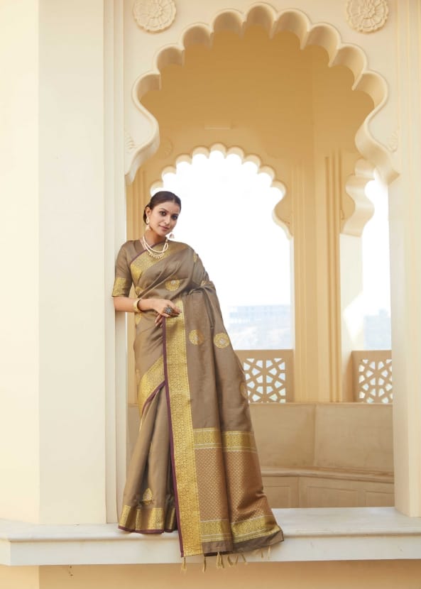Karaikudi silk Shangrila Presents Original Kanjivaram Zari Silk Weaving With Dual Zari And New Latest Silky Color...!! 6 pc 1090/- |