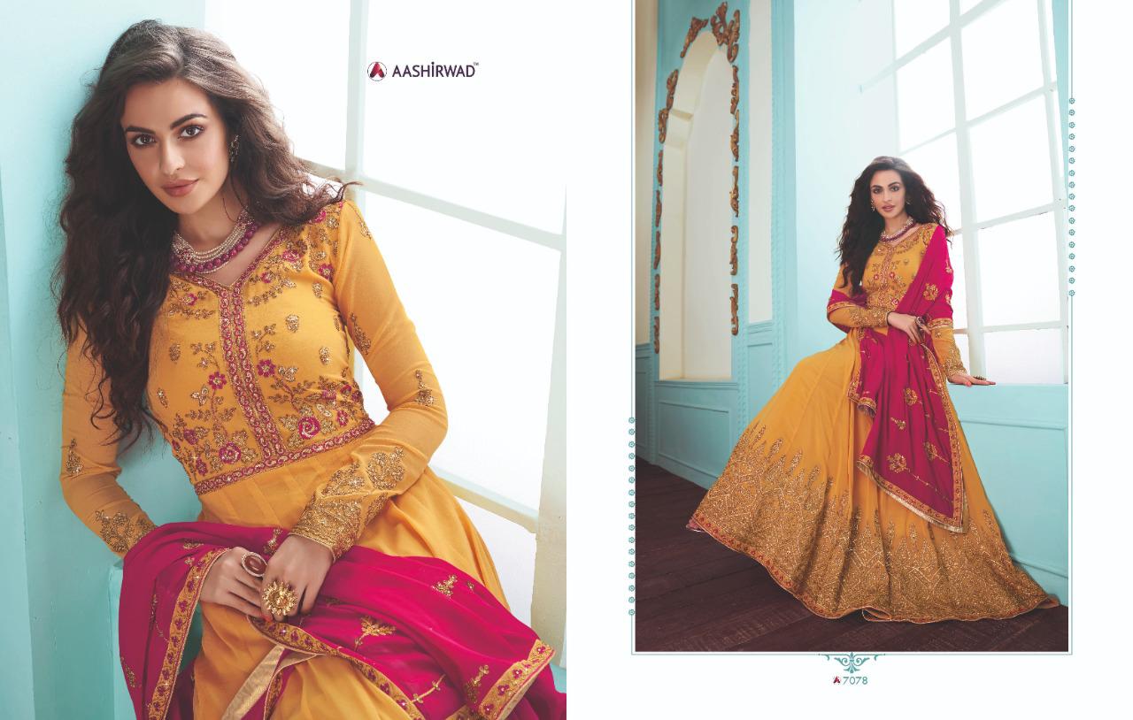 Buy Online Karishma By Ashirwad Series 7076 To 7081 Designer Party Wear Suits Wholesale Supplier Gujarat 6 Pcs of Full Catalogue at Wholesale Price. Looking for Karishma By Ashirwad Series 7076 To 7081 Designer Party Wear Suits Wholesale Supplier Gujarat Full Catalouge at Best Price? Buy Now Karishma By Ashirwad Series 7076 To 7081 Designer Party Wear Suits Wholesale Supplier Gujarat at Wholesale Rate of Rs 14370 with Total 6 Pcs from authroized dealer and supplier of AASHIRWAD Brand. Cost of Each piece is just only Rs 2395 which is very low and affordable price to resale the product in your retail store ,This is Surat based Wholesale Supplier & Dealer of AASHIRWAD Brand. Click on Brand name to Know more about AASHIRWAD Brand's products.Call or Whatsapp on 9898838984 for booking or enquiry