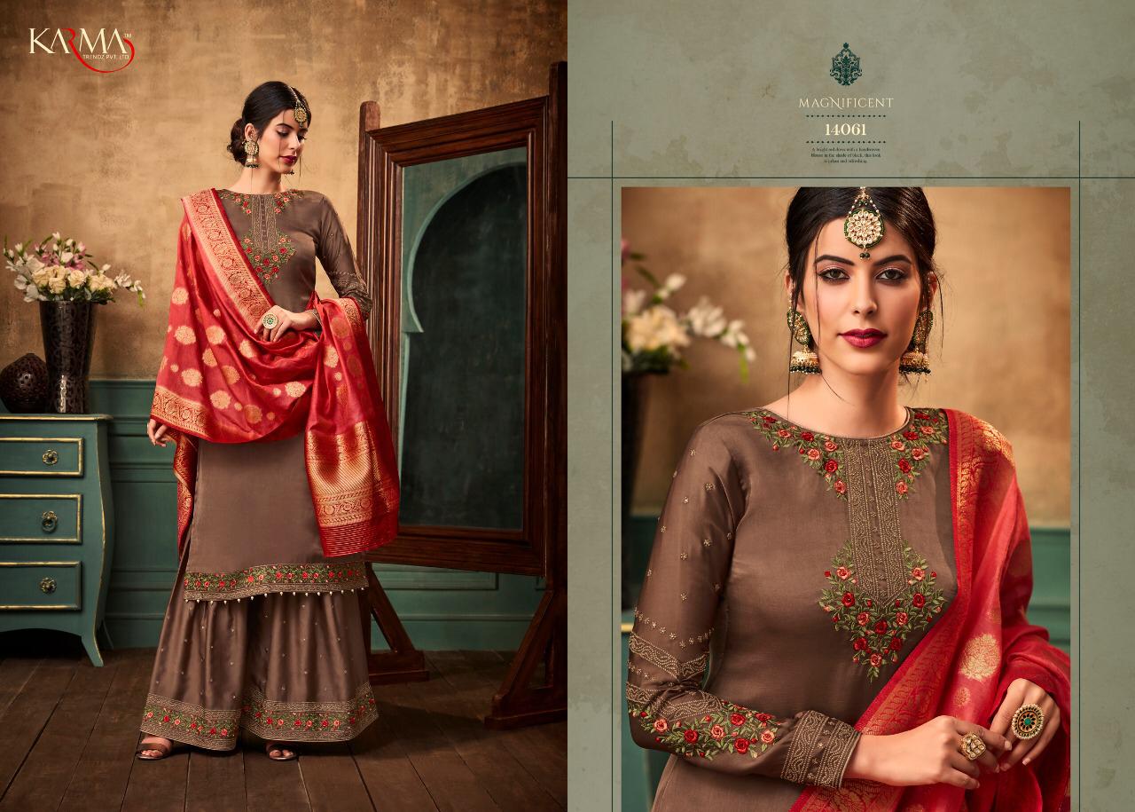 Karma 14058 Series Fancy Party Wear Satin Georgette Party Wear Sarara Suit Collection Wholesaler Surat