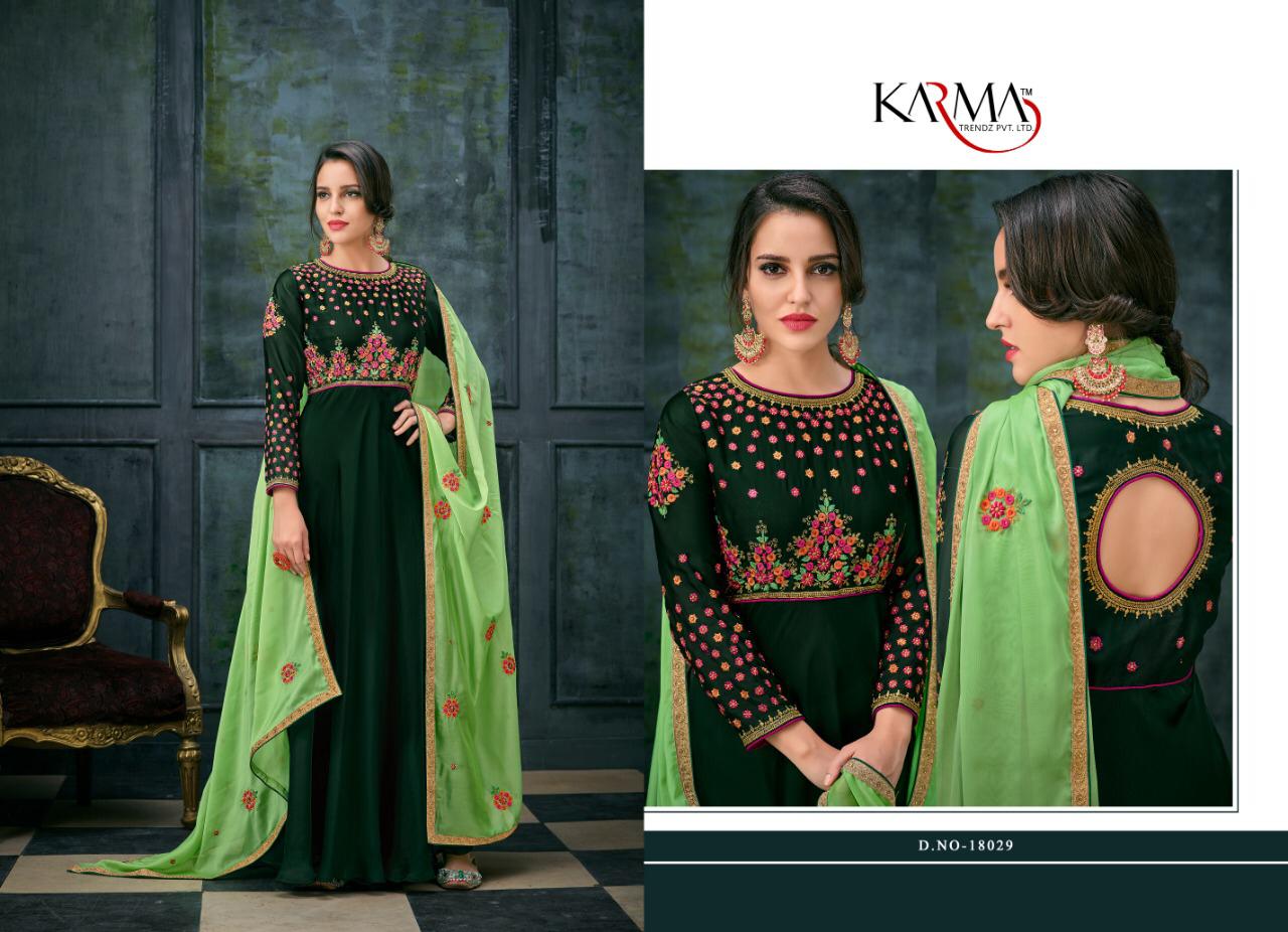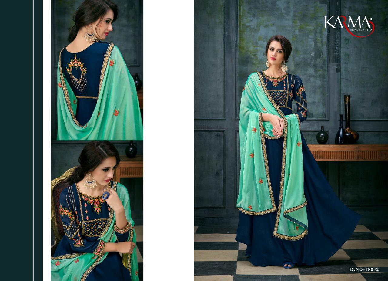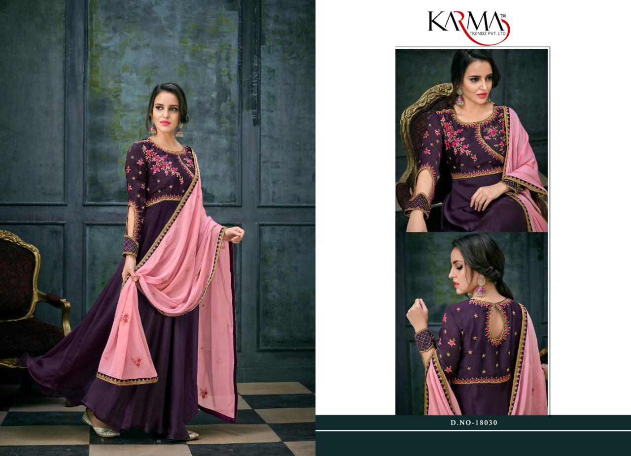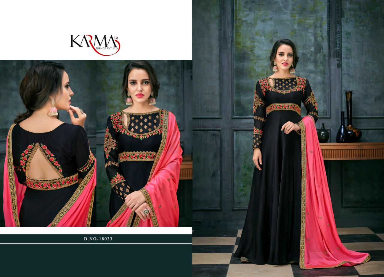 Buy Online Karma 18027 Series Satin Georgette Embroidered Designer Party Wear Gowns Wholesale Supplier India 7 Pcs of Full Catalogue at Wholesale Price. Looking for Karma 18027 Series Satin Georgette Embroidered Designer Party Wear Gowns Wholesale Supplier India Full Catalouge at Best Price? Buy Now Karma 18027 Series Satin Georgette Embroidered Designer Party Wear Gowns Wholesale Supplier India at Wholesale Rate of Rs 11165 with Total 7 Pcs from authroized dealer and supplier of KARMA Brand. Cost of Each piece is just only Rs 1595 which is very low and affordable price to resale the product in your retail store ,This is Surat based Wholesale Supplier & Dealer of KARMA Brand. Click on Brand name to Know more about KARMA Brand's products.Call or Whatsapp on 9898838984 for booking or enquiry