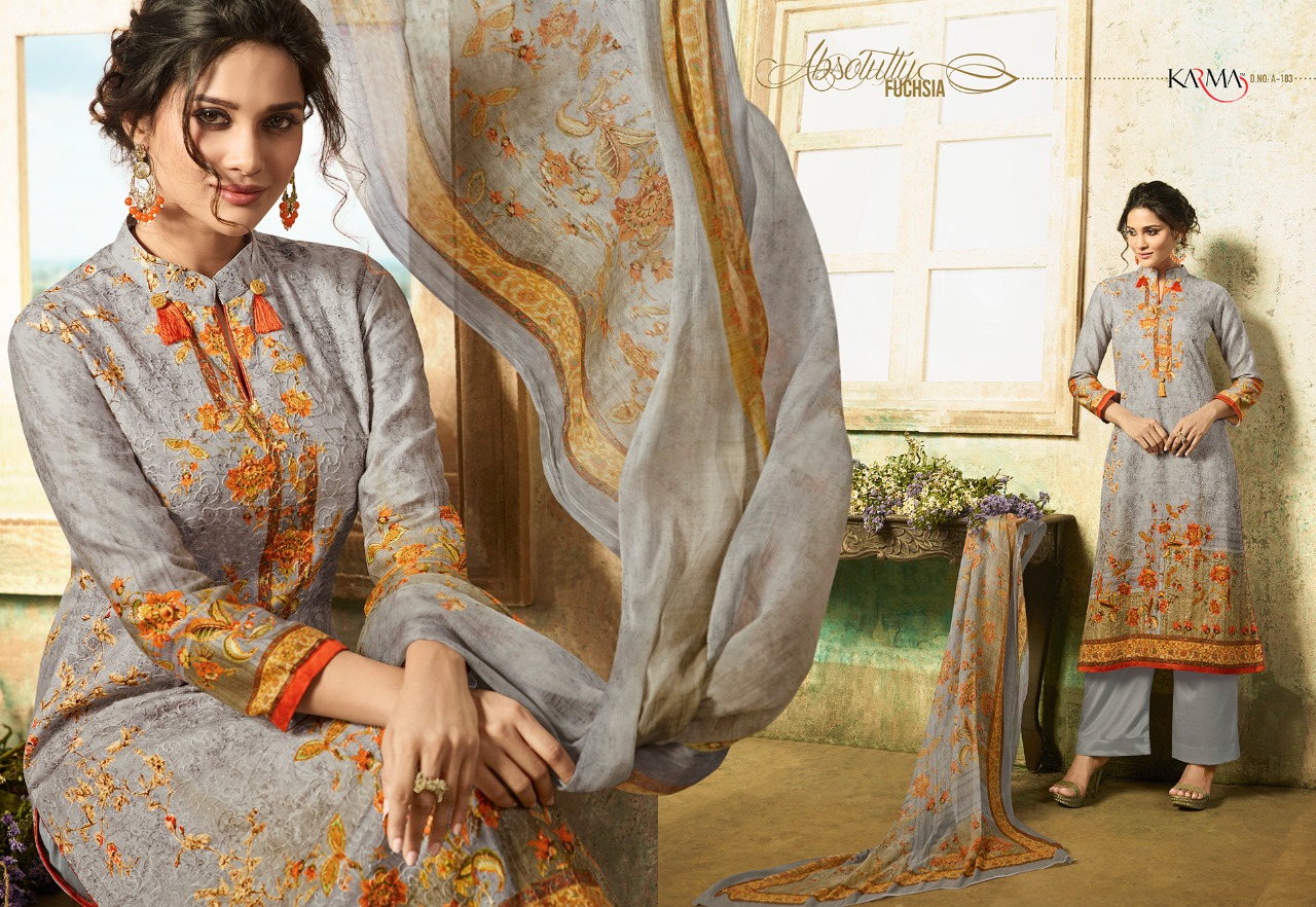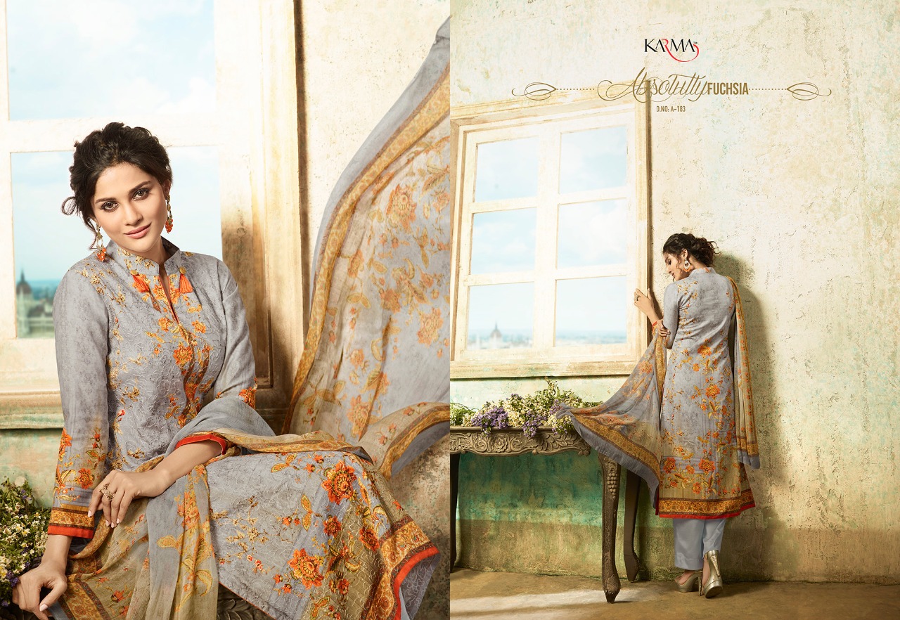 Buy Online Karma Amaira A 180 Series Cotton Cambric Salwar Kameez Catlog Wholesale Dealer And Supplier Surat 8 Pcs of Full Catalogue at Wholesale Price. Looking for Karma Amaira A 180 Series Cotton Cambric Salwar Kameez Catlog Wholesale Dealer And Supplier Surat Full Catalouge at Best Price? Buy Now Karma Amaira A 180 Series Cotton Cambric Salwar Kameez Catlog Wholesale Dealer And Supplier Surat at Wholesale Rate of Rs 10800 with Total 8 Pcs from authroized dealer and supplier of KARMA Brand. Cost of Each piece is just only Rs 1350 which is very low and affordable price to resale the product in your retail store ,This is Surat based Wholesale Supplier & Dealer of KARMA Brand. Click on Brand name to Know more about KARMA Brand's products.Call or Whatsapp on 9898838984 for booking or enquiry