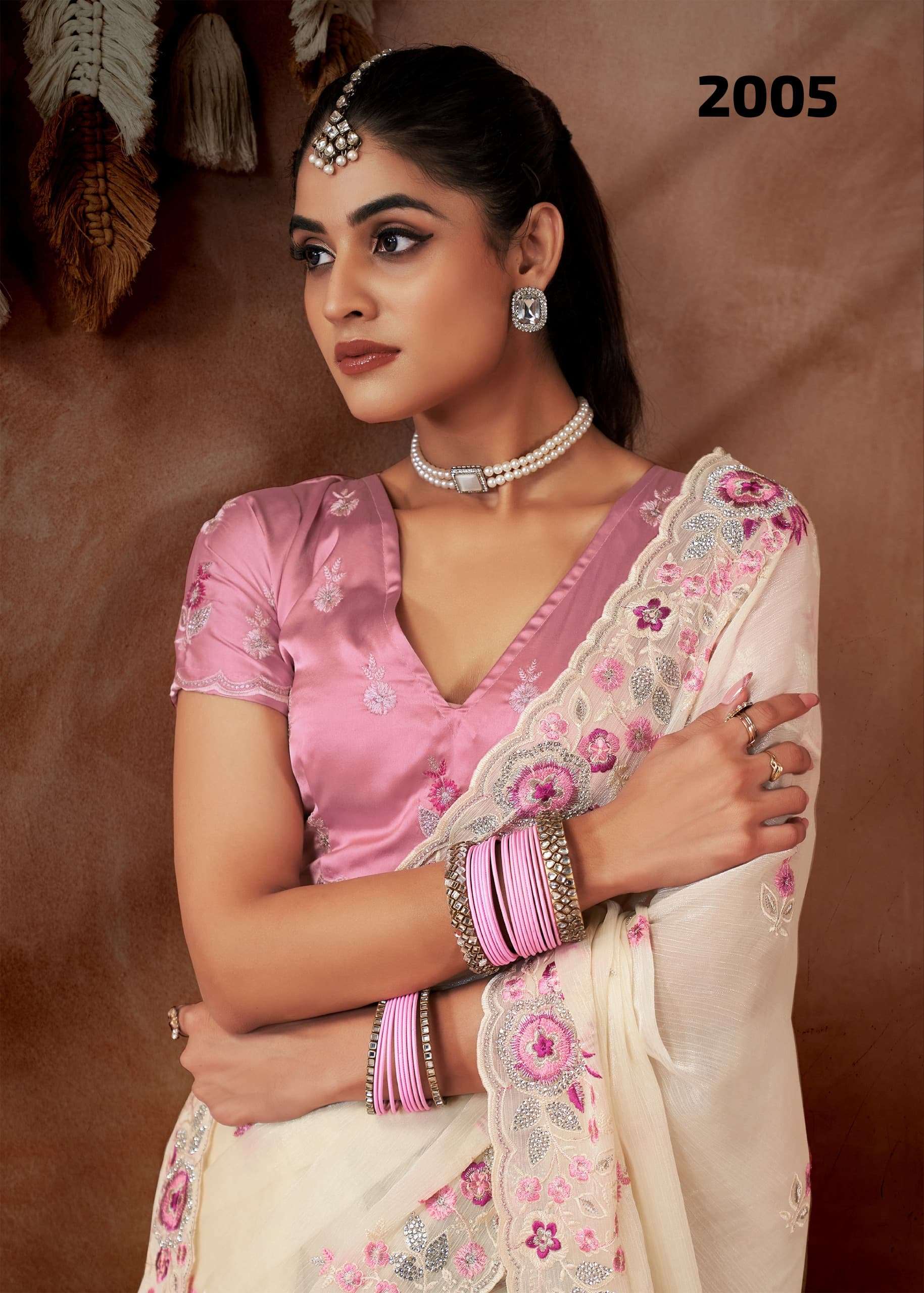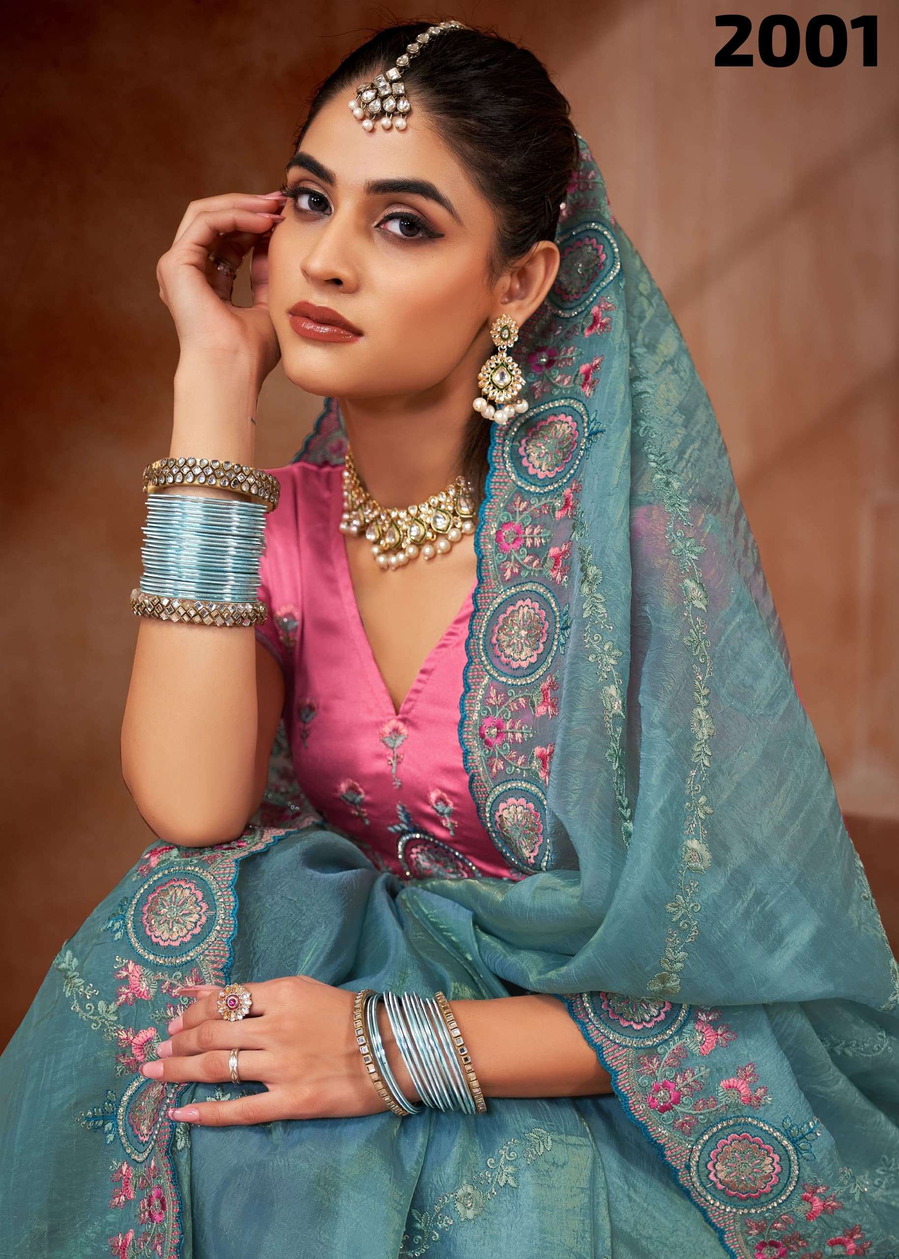 ➡️Catalog *Karma* ➡️Rate *2195+5%* ➡️Fabric - *Pure based Fancy Fabric with Hand worked Border & Designer Blouse*