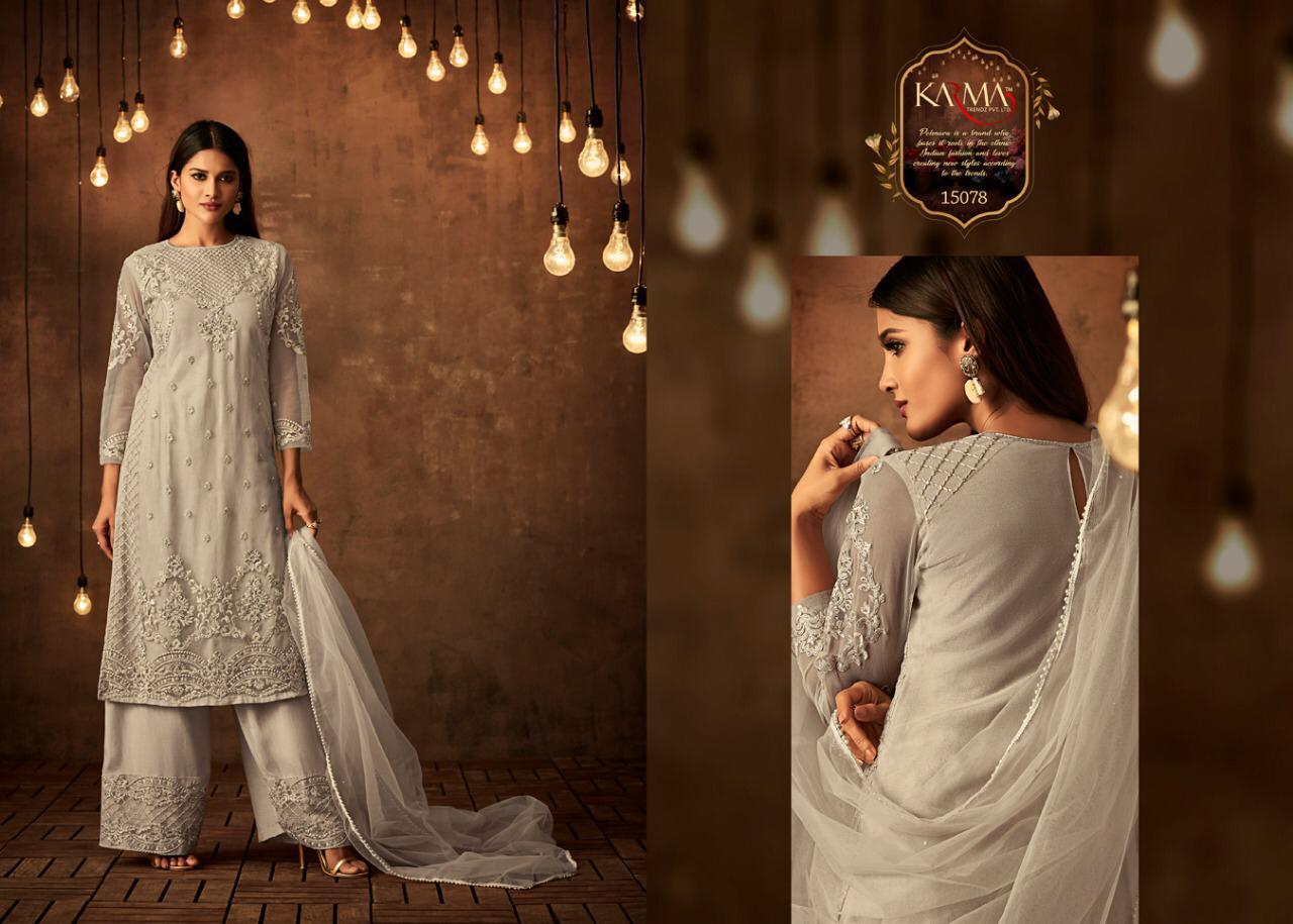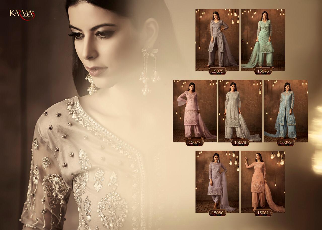 Buy Online Karma Series 15075 To 15081 Eid Special Net Embroidered Designer Suits Wholesale Supplier And Dealer Gujarat 7 Pcs of Full Catalogue at Wholesale Price. Looking for Karma Series 15075 To 15081 Eid Special Net Embroidered Designer Suits Wholesale Supplier And Dealer Gujarat Full Catalouge at Best Price? Buy Now Karma Series 15075 To 15081 Eid Special Net Embroidered Designer Suits Wholesale Supplier And Dealer Gujarat at Wholesale Rate of Rs 12565 with Total 7 Pcs from authroized dealer and supplier of KARMA Brand. Cost of Each piece is just only Rs 1795 which is very low and affordable price to resale the product in your retail store ,This is Surat based Wholesale Supplier & Dealer of KARMA Brand. Click on Brand name to Know more about KARMA Brand's products.Call or Whatsapp on 9898838984 for booking or enquiry