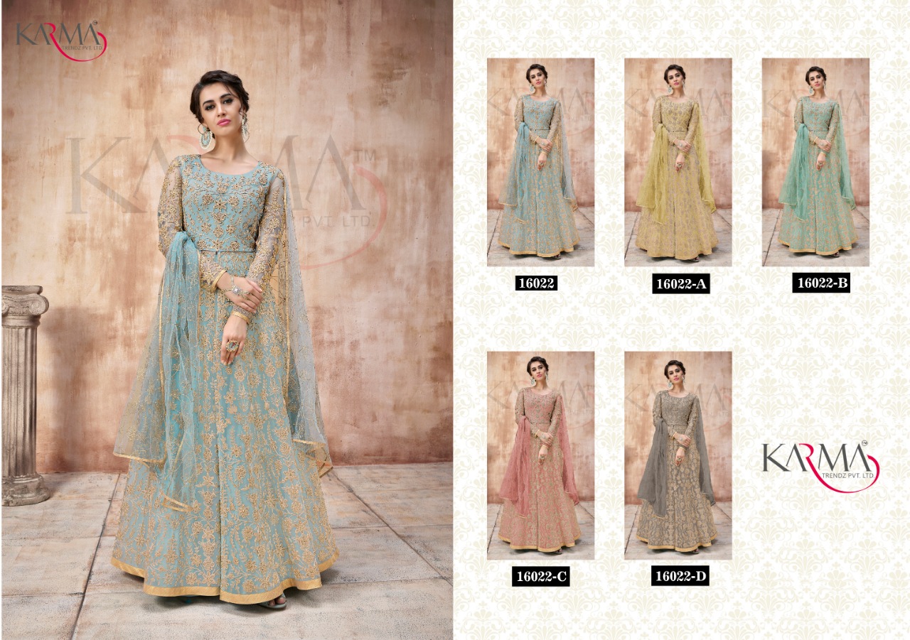 Buy Online Karma Series 16022 Colour Plus Designer Party Wear Suits Wholesale Supplier Gujarat 5 Pcs of Full Catalogue at Wholesale Price. Looking for Karma Series 16022 Colour Plus Designer Party Wear Suits Wholesale Supplier Gujarat Full Catalouge at Best Price? Buy Now Karma Series 16022 Colour Plus Designer Party Wear Suits Wholesale Supplier Gujarat at Wholesale Rate of Rs 19800 with Total 5 Pcs from authroized dealer and supplier of KARMA Brand. Cost of Each piece is just only Rs 3960 which is very low and affordable price to resale the product in your retail store ,This is Surat based Wholesale Supplier & Dealer of KARMA Brand. Click on Brand name to Know more about KARMA Brand's products.Call or Whatsapp on 9898838984 for booking or enquiry