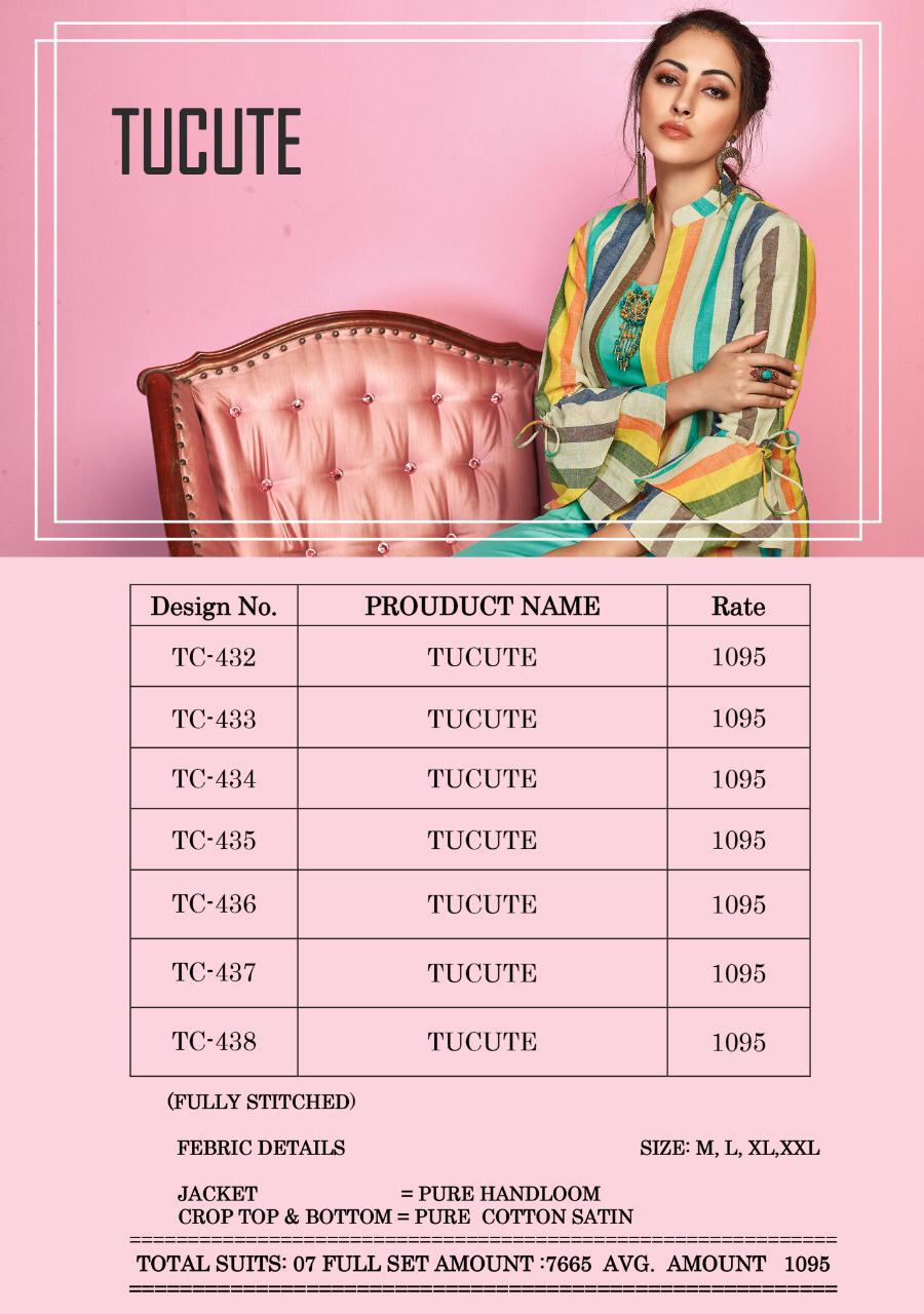 Buy Online Karma Trendz Tucute Series 432 Handloom Cotton Jacket With Top Nd Bottom Wholesale Supplier Gujarat 7 Pcs of Full Catalogue at Wholesale Price. Looking for Karma Trendz Tucute Series 432 Handloom Cotton Jacket With Top Nd Bottom Wholesale Supplier Gujarat Full Catalouge at Best Price? Buy Now Karma Trendz Tucute Series 432 Handloom Cotton Jacket With Top Nd Bottom Wholesale Supplier Gujarat at Wholesale Rate of Rs 7665 with Total 7 Pcs from authroized dealer and supplier of KARMA Brand. Cost of Each piece is just only Rs 1095 which is very low and affordable price to resale the product in your retail store ,This is Surat based Wholesale Supplier & Dealer of KARMA Brand. Click on Brand name to Know more about KARMA Brand's products.Call or Whatsapp on 9898838984 for booking or enquiry