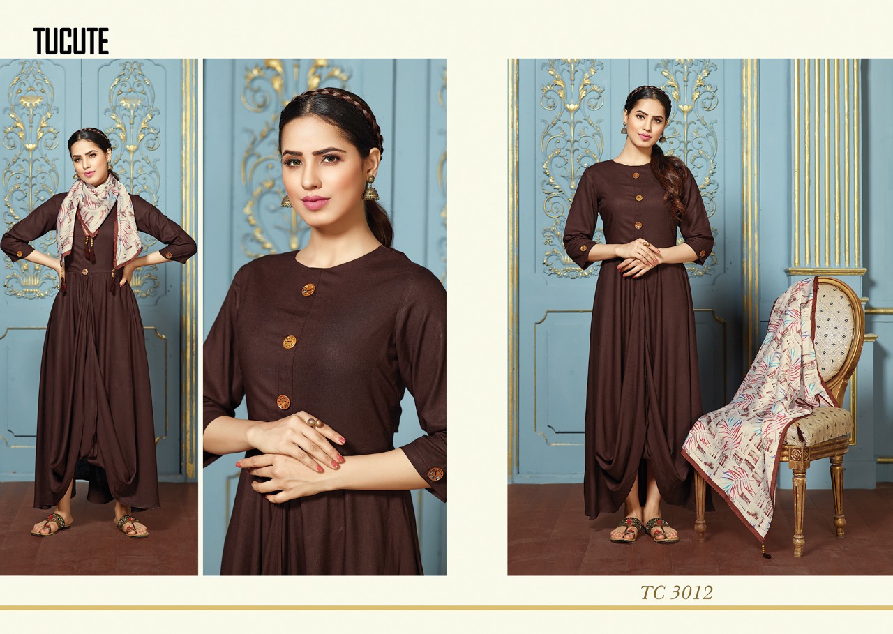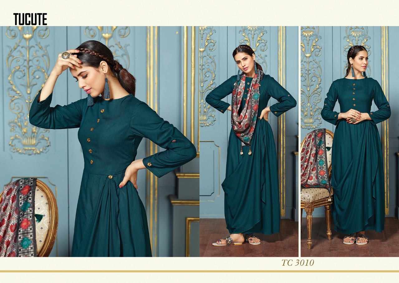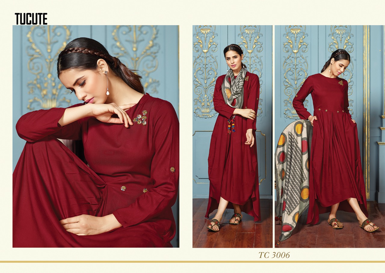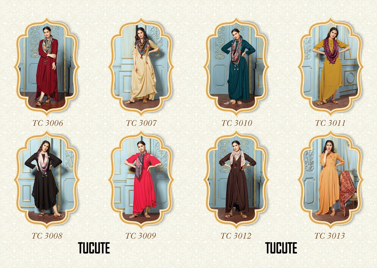 *KARMA New book * *TUCUTE VOL :- 3* *TC-3006 SERIES..* *KURTI WITH SCARF PATTERN* *4 SIZE..M,L,XL,XXL* *RATE :- 891 per Pcs . GST 5 Percent extra Set to set only |
