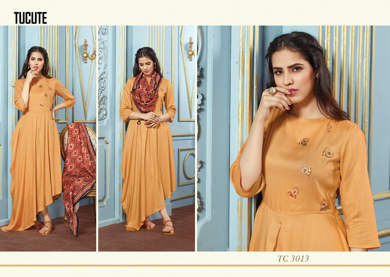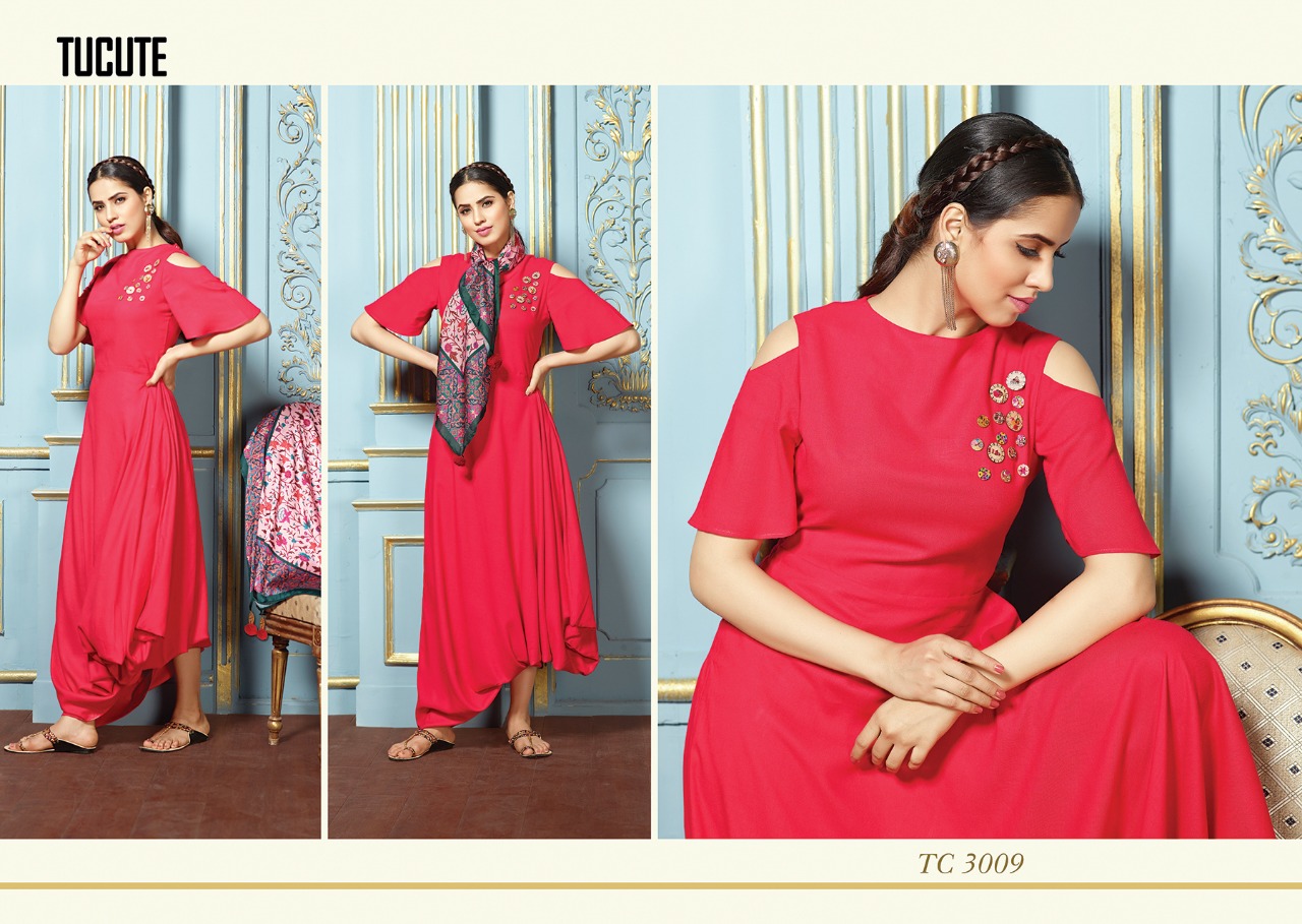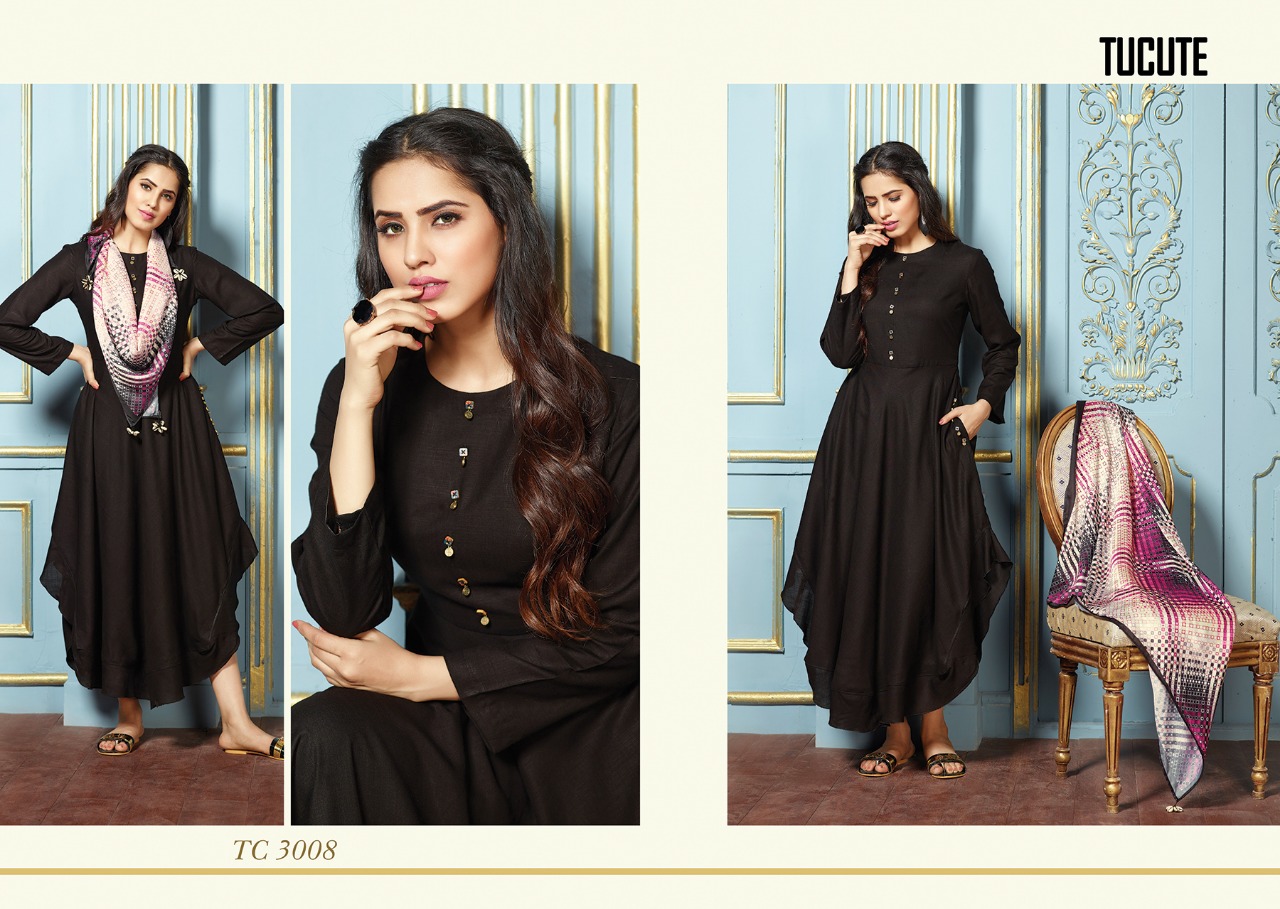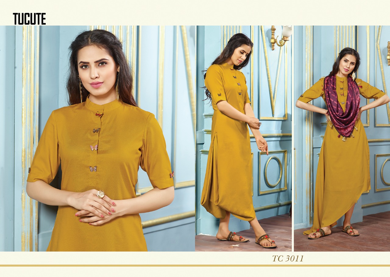 *KARMA New book * *TUCUTE VOL :- 3* *TC-3006 SERIES..* *KURTI WITH SCARF PATTERN* *4 SIZE..M,L,XL,XXL* *RATE :- 891 per Pcs . GST 5 Percent extra Set to set only |