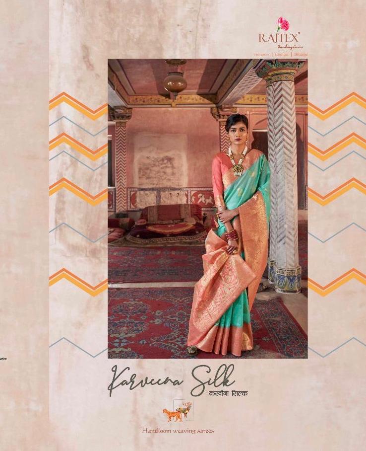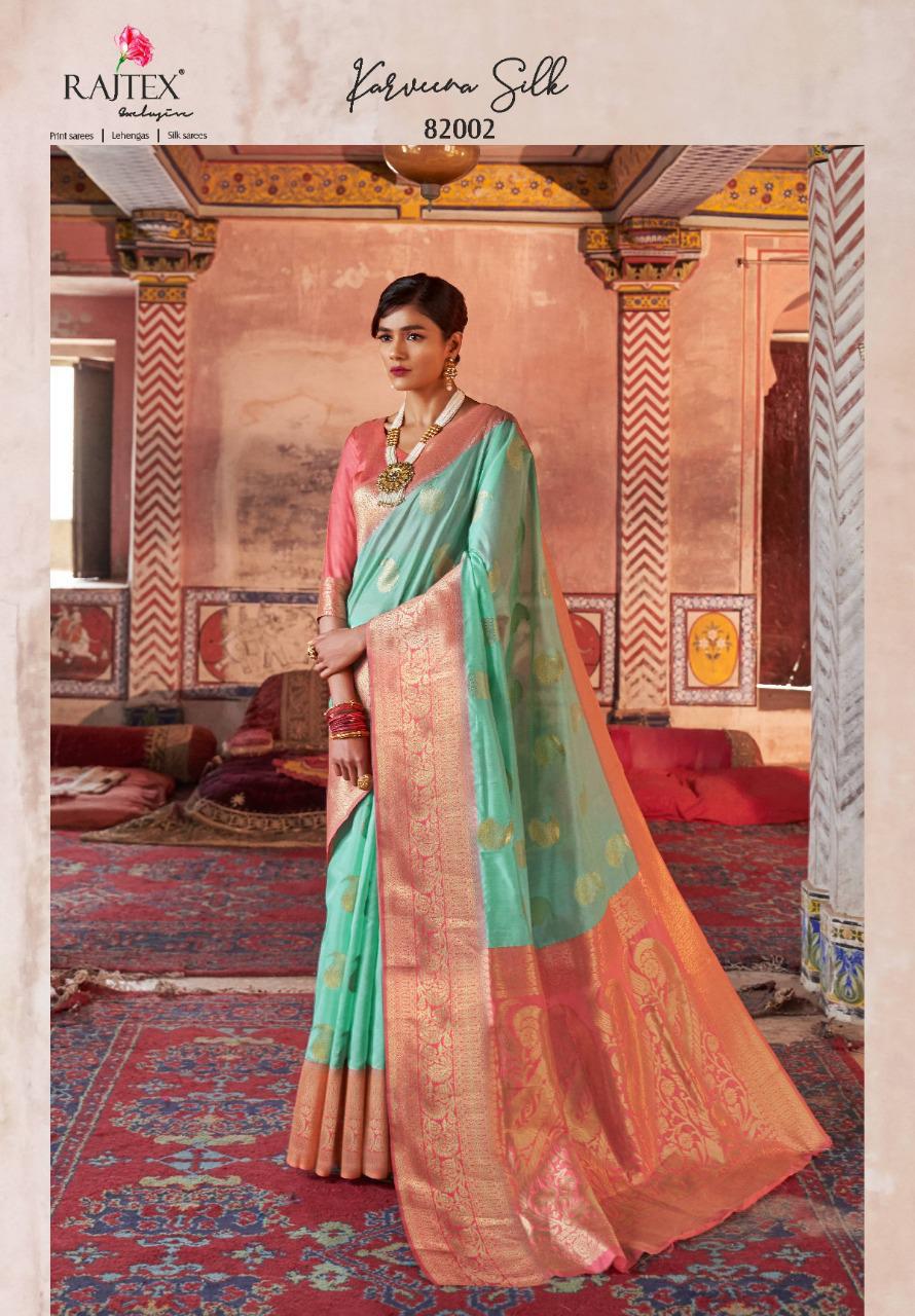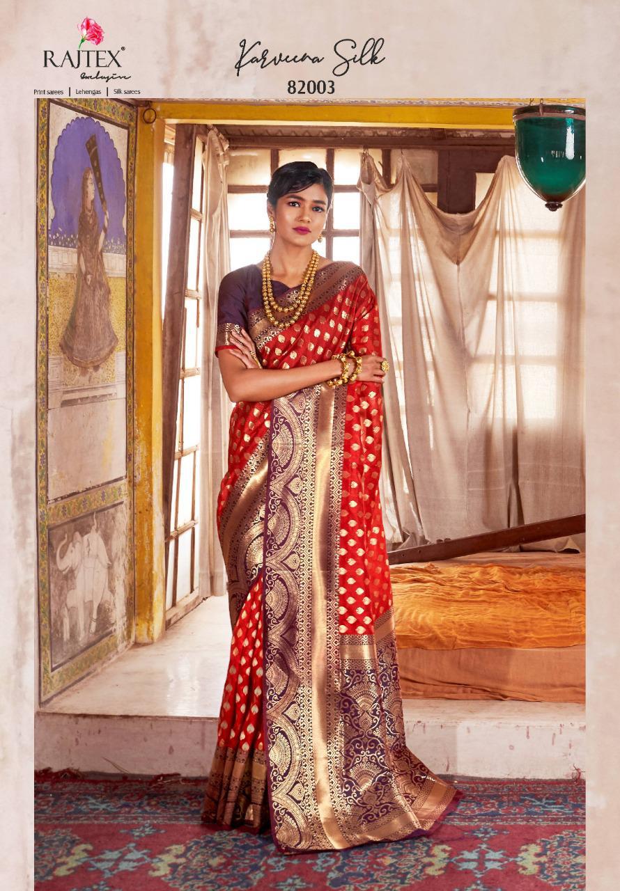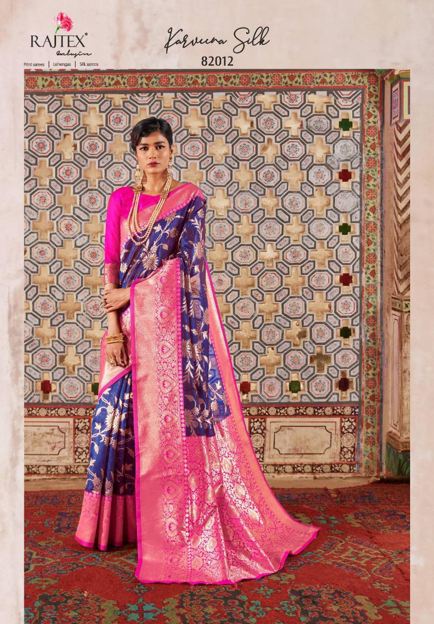 Buy Online Karveena Silk By Rajtex 82001 Series Fancy Traditional Party Wear Saree Collection Wholesaler Surat 12 Pcs of Full Catalogue at Wholesale Price. Looking for Karveena Silk By Rajtex 82001 Series Fancy Traditional Party Wear Saree Collection Wholesaler Surat Full Catalouge at Best Price? Buy Now Karveena Silk By Rajtex 82001 Series Fancy Traditional Party Wear Saree Collection Wholesaler Surat at Wholesale Rate of Rs 15120 with Total 12 Pcs from authroized dealer and supplier of RAJTEX Brand. Cost of Each piece is just only Rs 1260 which is very low and affordable price to resale the product in your retail store ,This is Surat based Wholesale Supplier & Dealer of RAJTEX Brand. Click on Brand name to Know more about RAJTEX Brand's products.Call or Whatsapp on 9898838984 for booking or enquiry