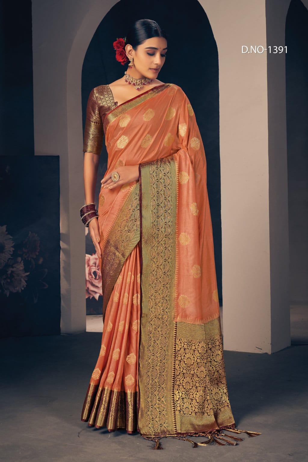 Catalog Name: *_Kasab Jari Silk_* Brand: *_Sangam Prints_* Product Type: Saree Fabric: Silk Price Per Piece: 1690/- Gst Extra: 5% Work: Woven Other Specifications: Zari Weaving Saree Mtr: 5.5 Mtr Blouse: 0.8 Mtr Total Pcs: 6 *_Book your orders now_* 100+single |