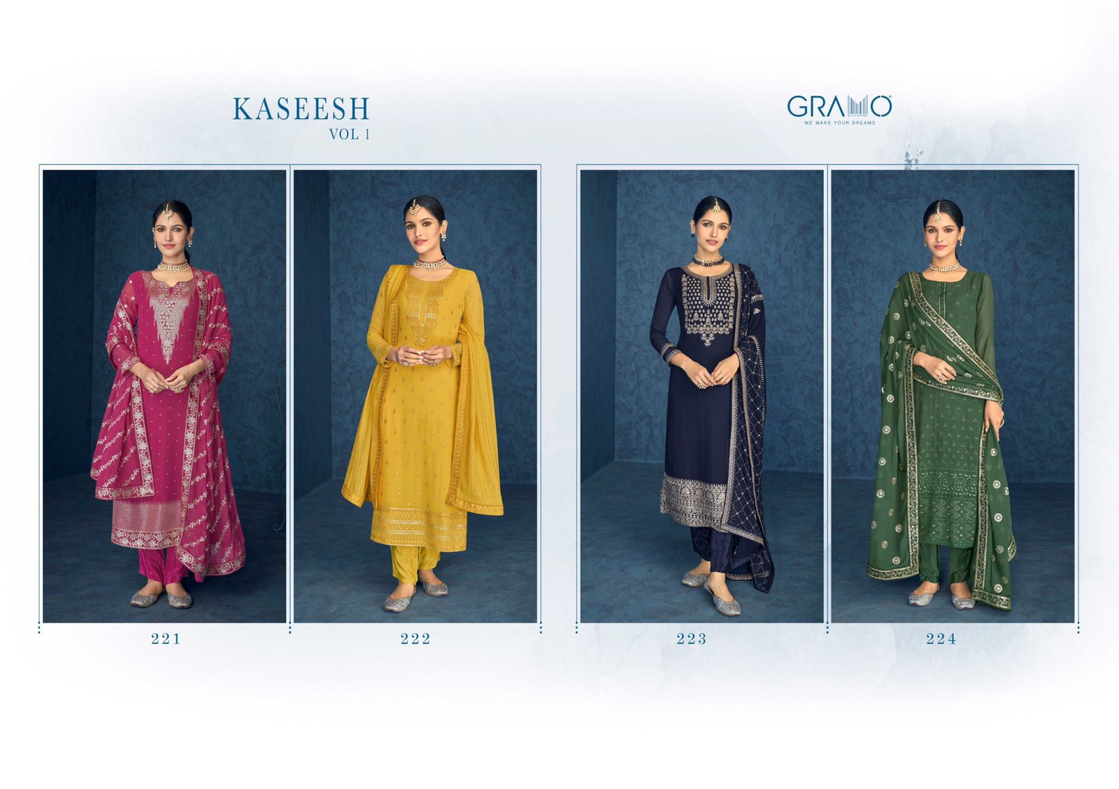 Buy Online Kaseesh By Gramo Readymade Collection Dealer And Exporter Surat 4 Pcs of Full Catalogue at Wholesale Price. Looking for Kaseesh By Gramo Readymade Collection Dealer And Exporter Surat Full Catalouge at Best Price? Buy Now Kaseesh By Gramo Readymade Collection Dealer And Exporter Surat at Wholesale Rate of Rs 6796 with Total 4 Pcs from authroized dealer and supplier of Brand. Cost of Each piece is just only Rs 1699 which is very low and affordable price to resale the product in your retail store ,This is Surat based Wholesale Supplier & Dealer of Brand. Click on Brand name to Know more about Brand's products.Call or Whatsapp on 9898838984 for booking or enquiry