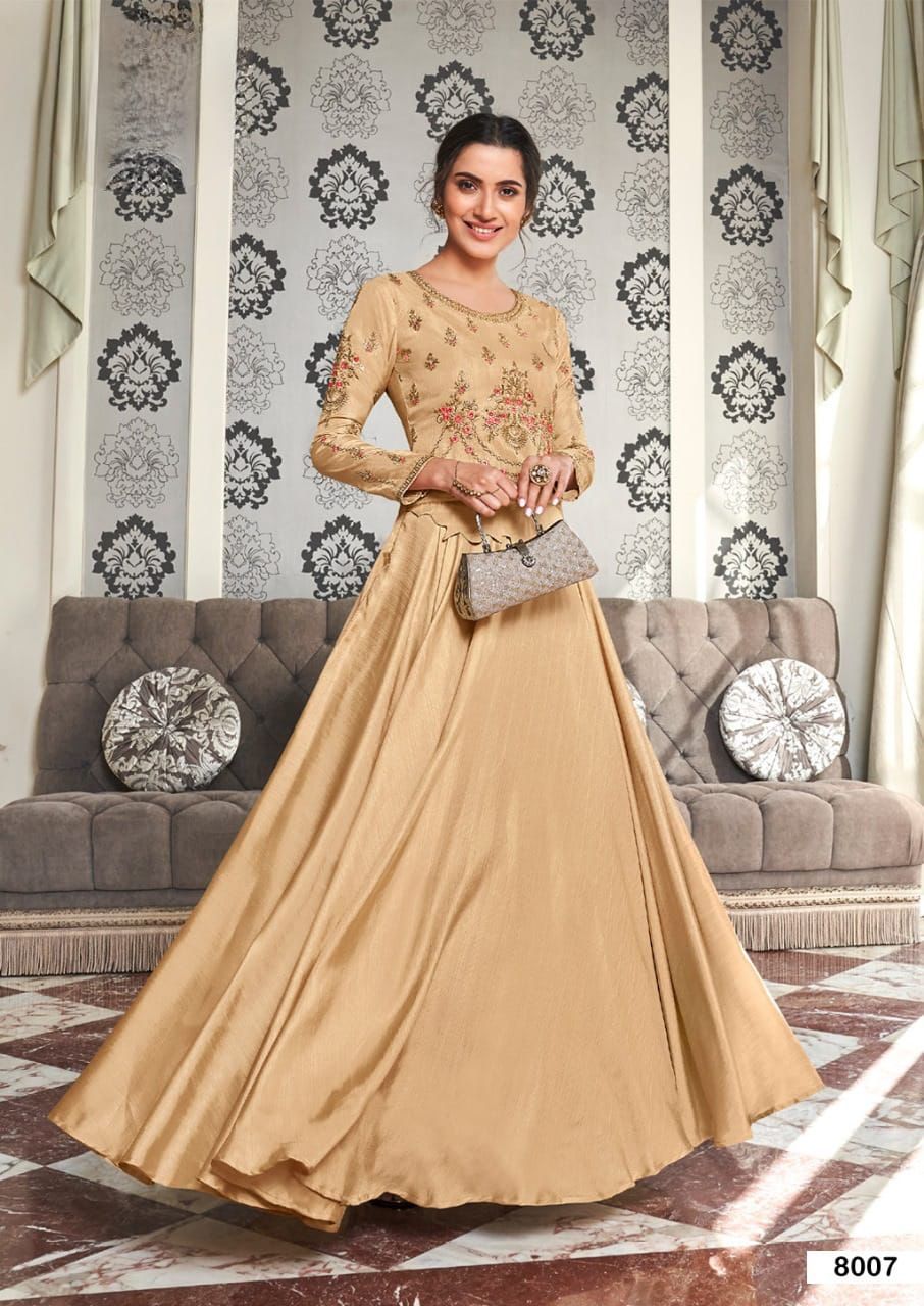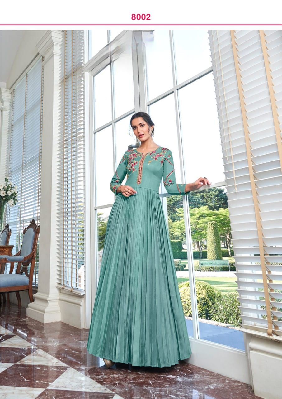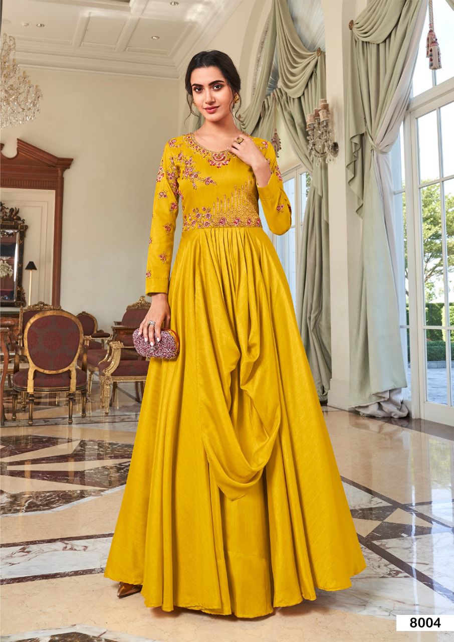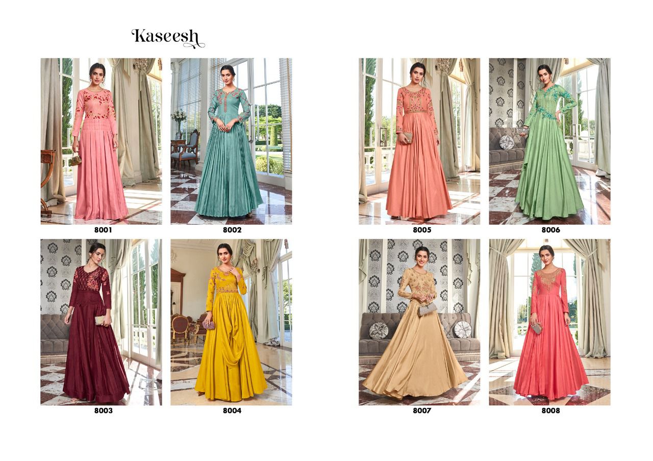 Buy Online Kaseesh Heavy Maslin Silk With Handwork Gowns Collection 8 Pcs of Full Catalogue at Wholesale Price. Looking for Kaseesh Heavy Maslin Silk With Handwork Gowns Collection Full Catalouge at Best Price? Buy Now Kaseesh Heavy Maslin Silk With Handwork Gowns Collection at Wholesale Rate of Rs 7960 with Total 8 Pcs from authroized dealer and supplier of Brand. Cost of Each piece is just only Rs 995 which is very low and affordable price to resale the product in your retail store ,This is Surat based Wholesale Supplier & Dealer of Brand. Click on Brand name to Know more about Brand's products.Call or Whatsapp on 9898838984 for booking or enquiry
