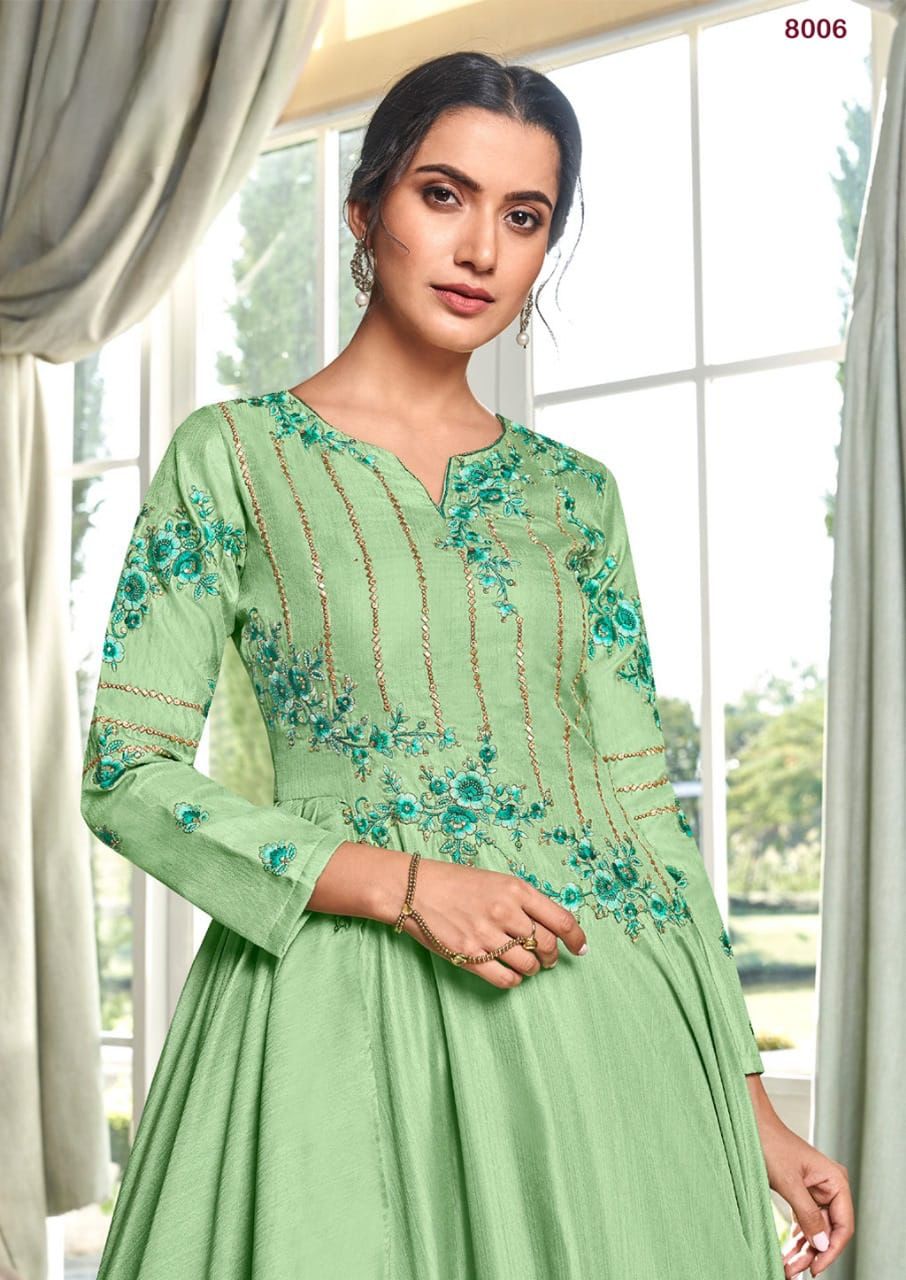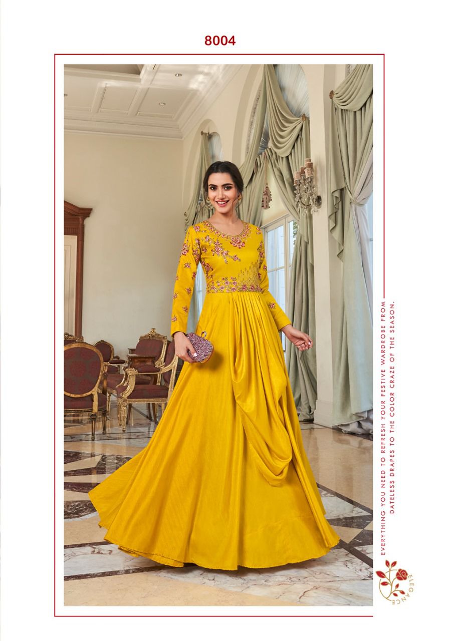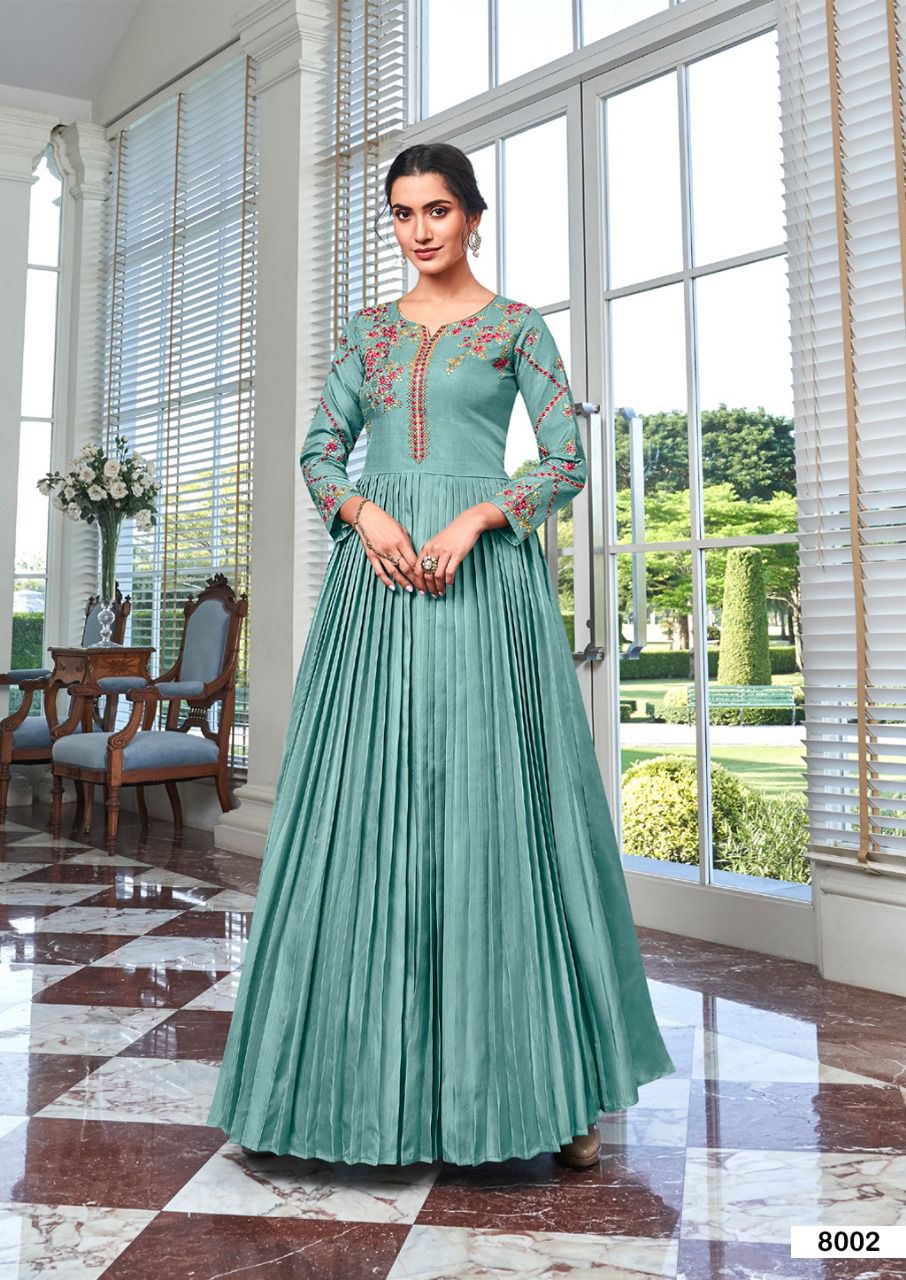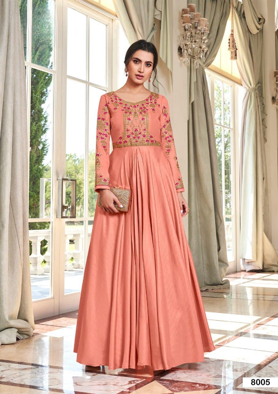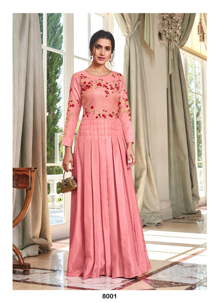 Buy Online Kaseesh Heavy Maslin Silk With Handwork Gowns Collection 8 Pcs of Full Catalogue at Wholesale Price. Looking for Kaseesh Heavy Maslin Silk With Handwork Gowns Collection Full Catalouge at Best Price? Buy Now Kaseesh Heavy Maslin Silk With Handwork Gowns Collection at Wholesale Rate of Rs 7960 with Total 8 Pcs from authroized dealer and supplier of Brand. Cost of Each piece is just only Rs 995 which is very low and affordable price to resale the product in your retail store ,This is Surat based Wholesale Supplier & Dealer of Brand. Click on Brand name to Know more about Brand's products.Call or Whatsapp on 9898838984 for booking or enquiry