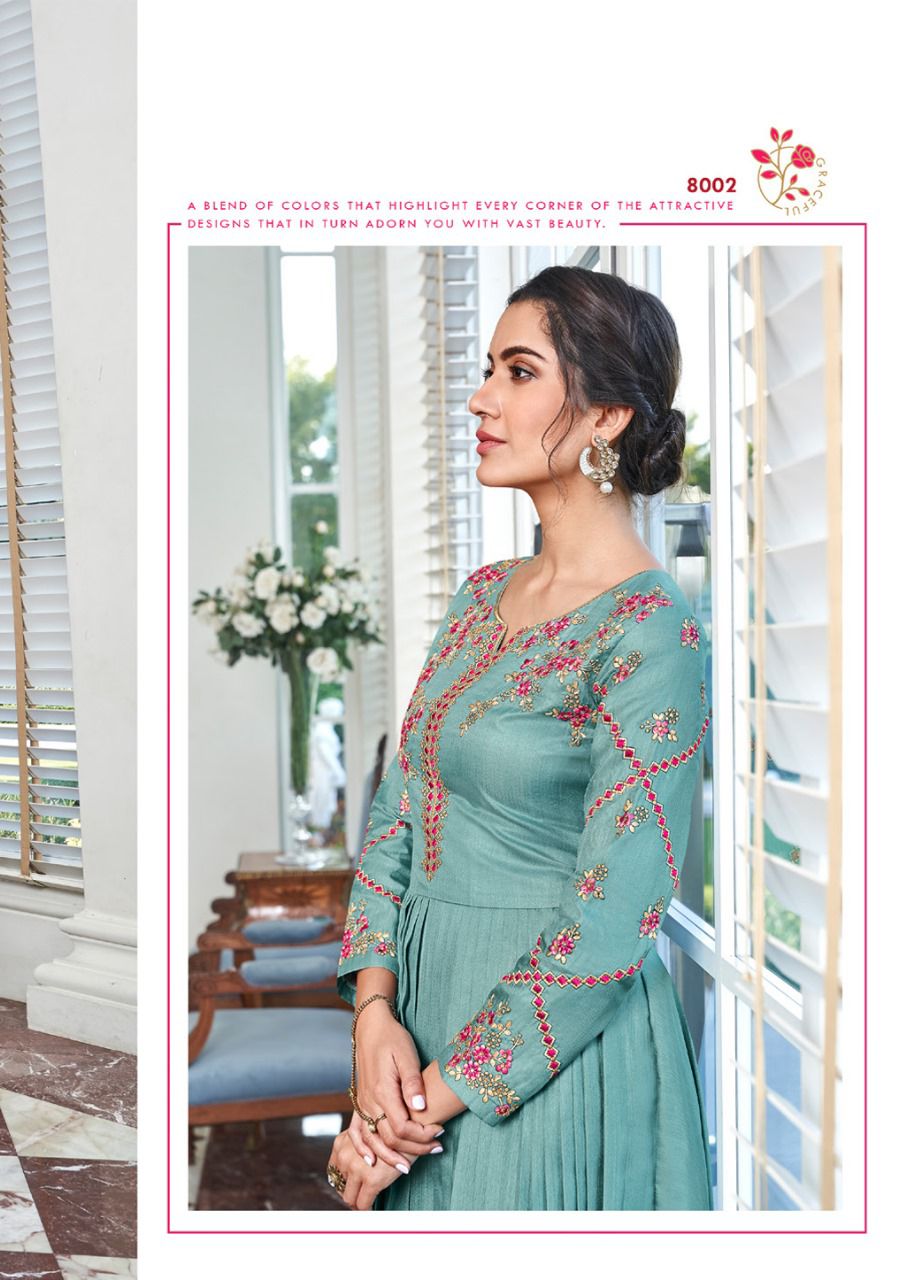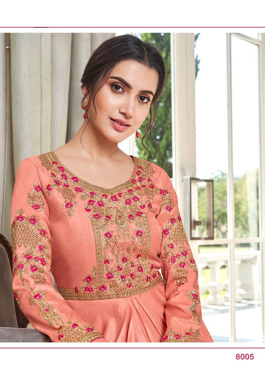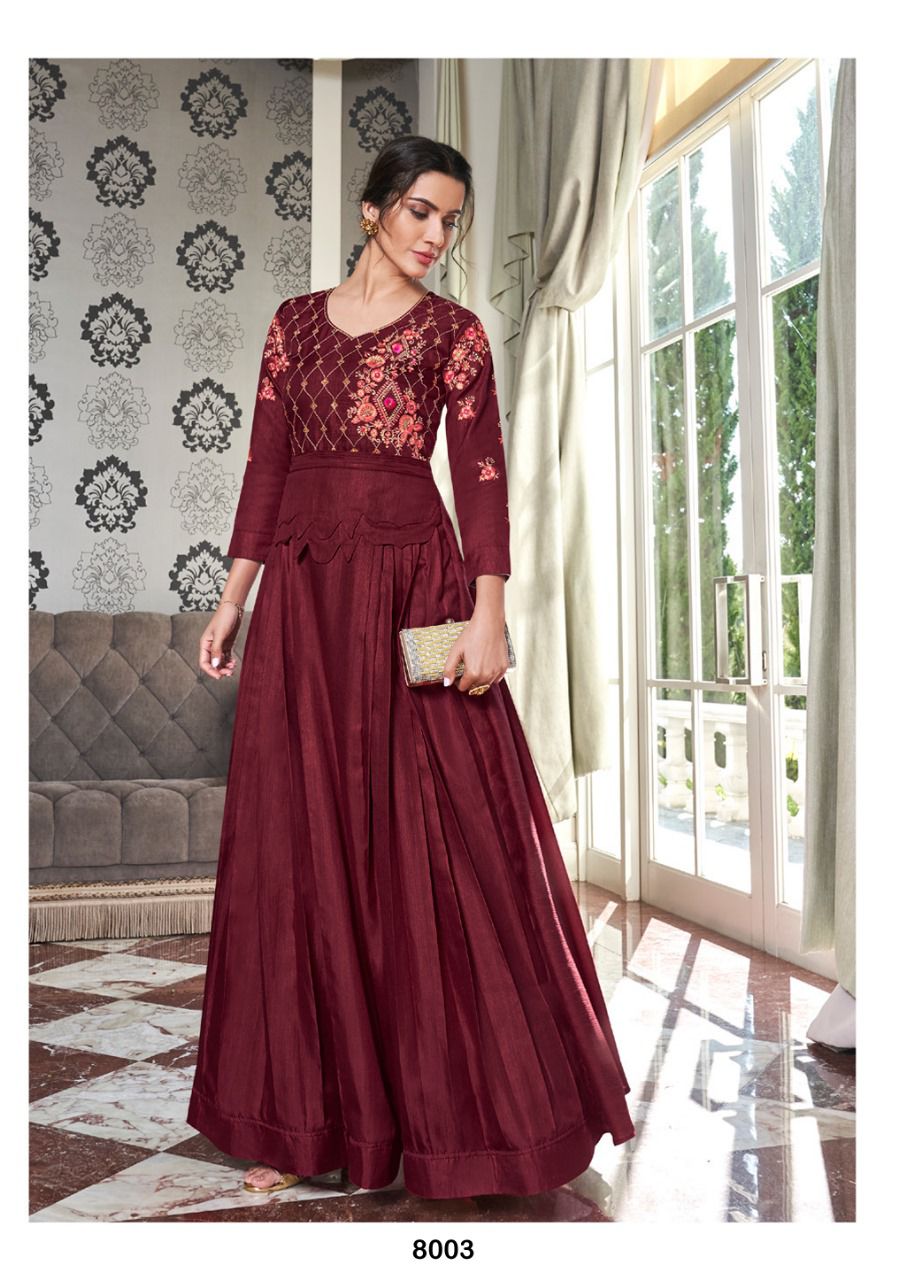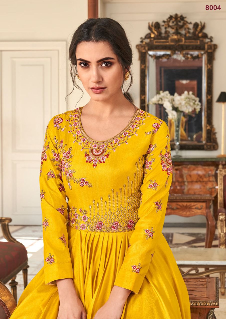 Buy Online Kaseesh Heavy Maslin Silk With Handwork Gowns Collection 8 Pcs of Full Catalogue at Wholesale Price. Looking for Kaseesh Heavy Maslin Silk With Handwork Gowns Collection Full Catalouge at Best Price? Buy Now Kaseesh Heavy Maslin Silk With Handwork Gowns Collection at Wholesale Rate of Rs 7960 with Total 8 Pcs from authroized dealer and supplier of Brand. Cost of Each piece is just only Rs 995 which is very low and affordable price to resale the product in your retail store ,This is Surat based Wholesale Supplier & Dealer of Brand. Click on Brand name to Know more about Brand's products.Call or Whatsapp on 9898838984 for booking or enquiry