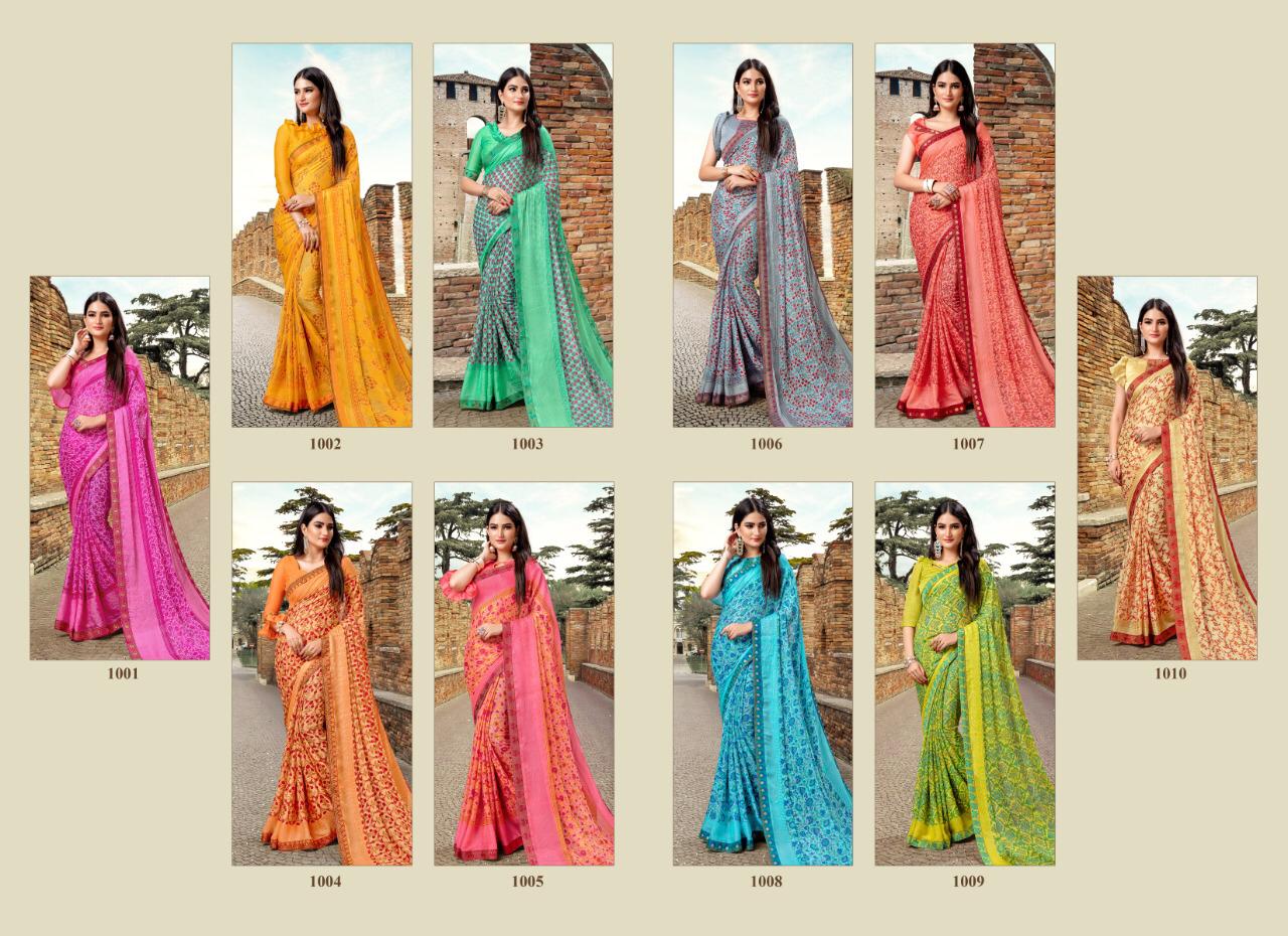 Kashish Priya paridh Fancy Georgette Printed Saree With fancy Border...! 10 pc 10 design 525/- Set to set only 5% GST |
