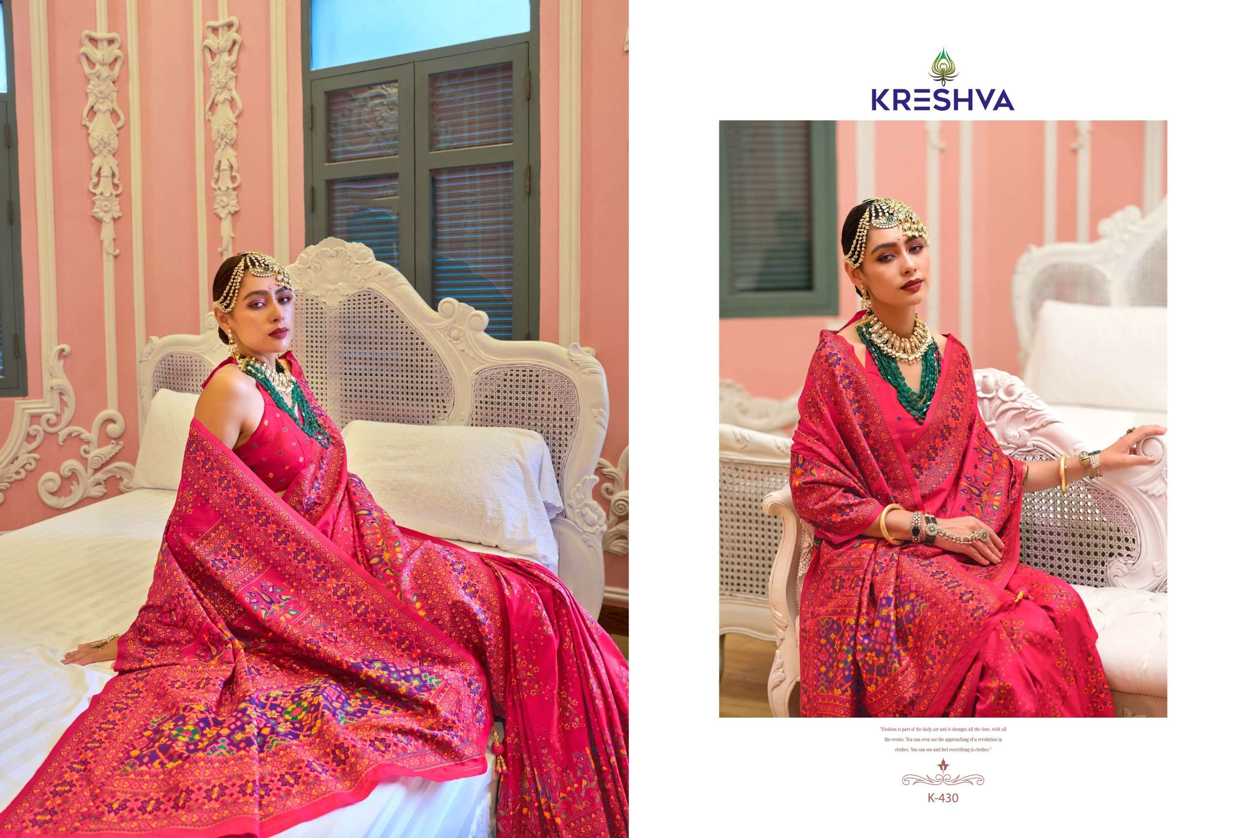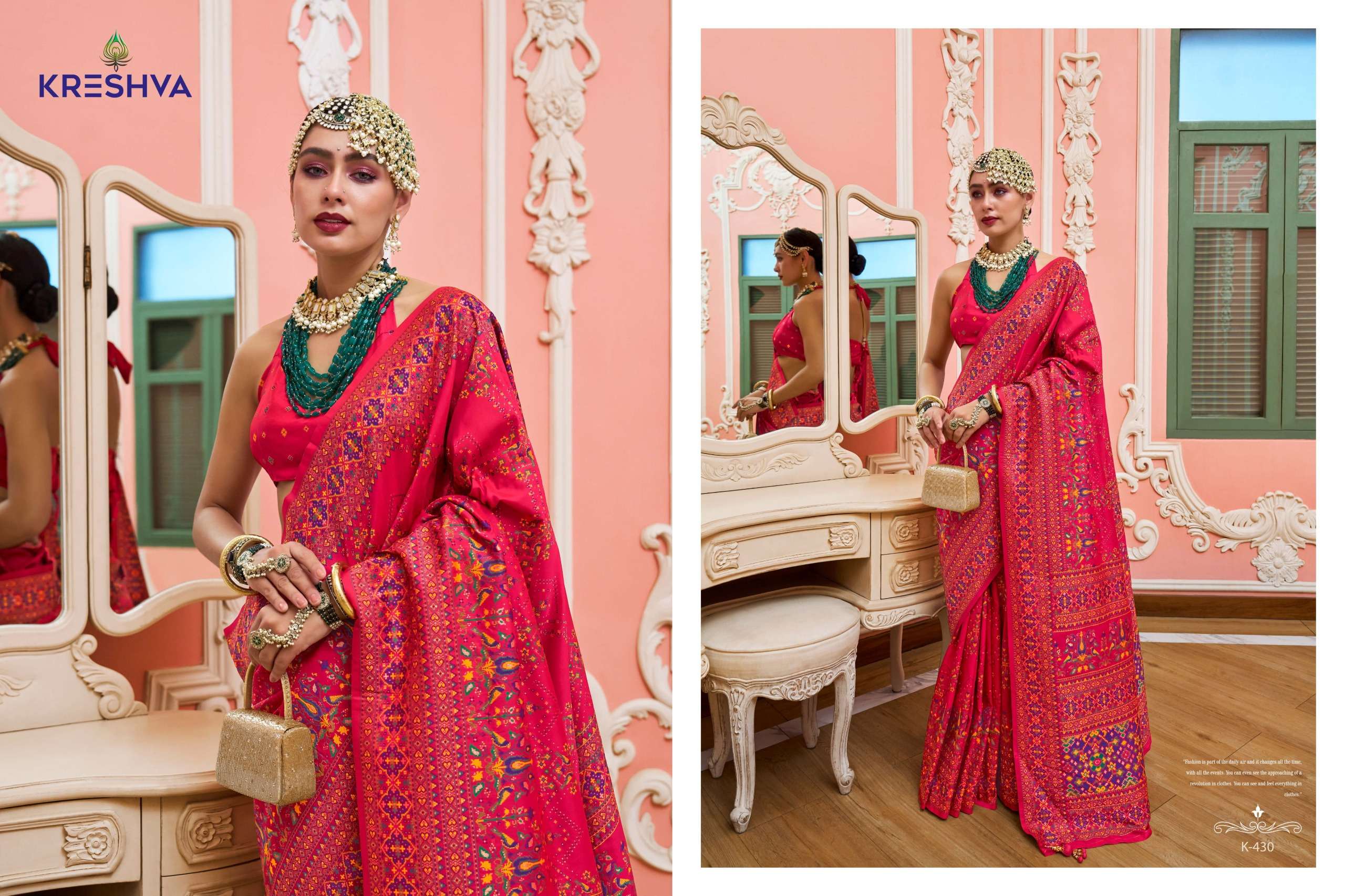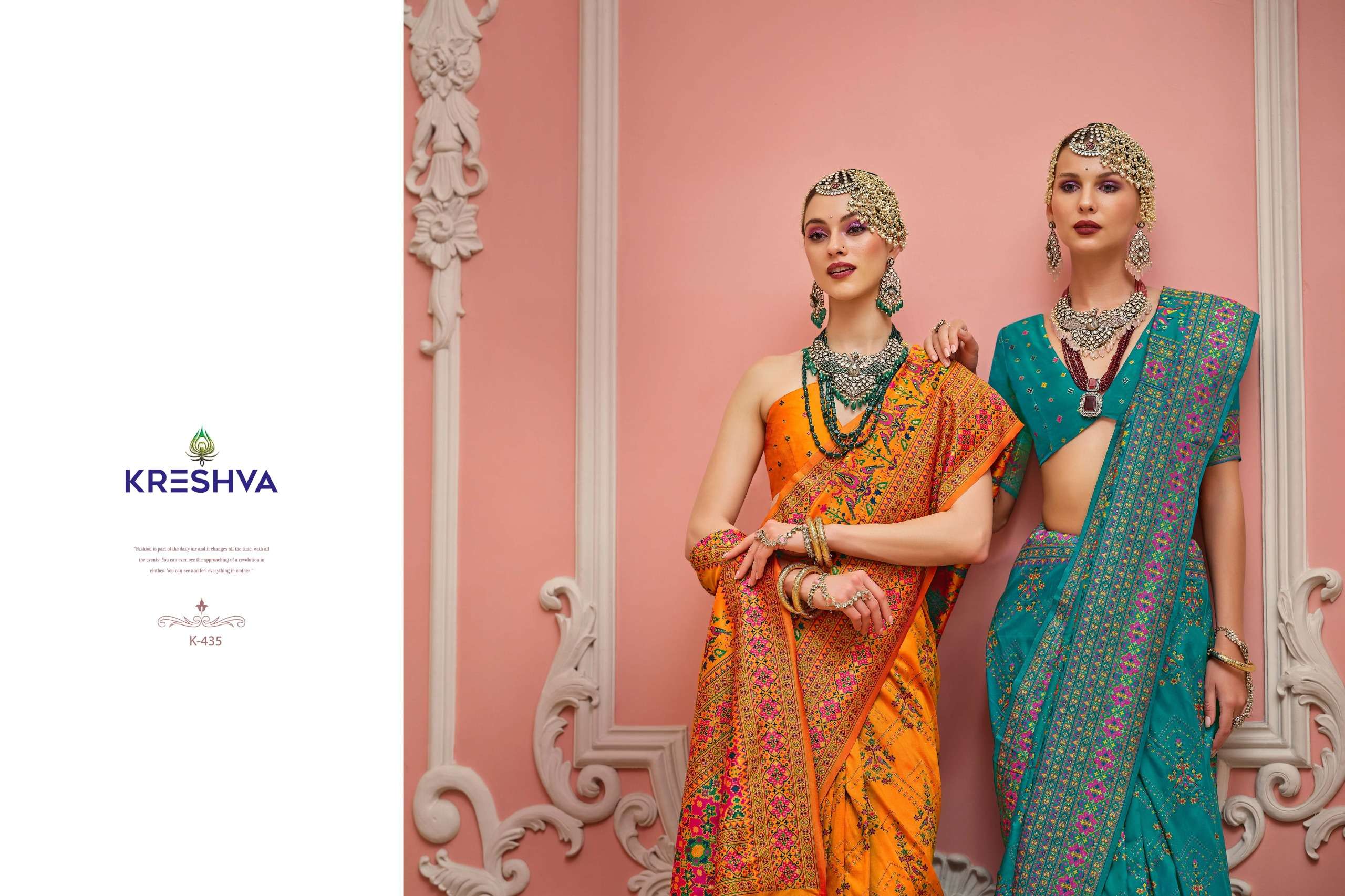 Buy Online Kashmir Vol 4 Series 429 To 436 by Kreshva saree Collection manufacturer surat 8 Pcs of Full Catalogue at Wholesale Price. Looking for Kashmir Vol 4 Series 429 To 436 by Kreshva saree Collection manufacturer surat Full Catalouge at Best Price? Buy Now Kashmir Vol 4 Series 429 To 436 by Kreshva saree Collection manufacturer surat at Wholesale Rate of Rs 15960 with Total 8 Pcs from authroized dealer and supplier of KRESHVA Brand. Cost of Each piece is just only Rs 1995 which is very low and affordable price to resale the product in your retail store ,This is Surat based Wholesale Supplier & Dealer of KRESHVA Brand. Click on Brand name to Know more about KRESHVA Brand's products.Call or Whatsapp on 9898838984 for booking or enquiry
