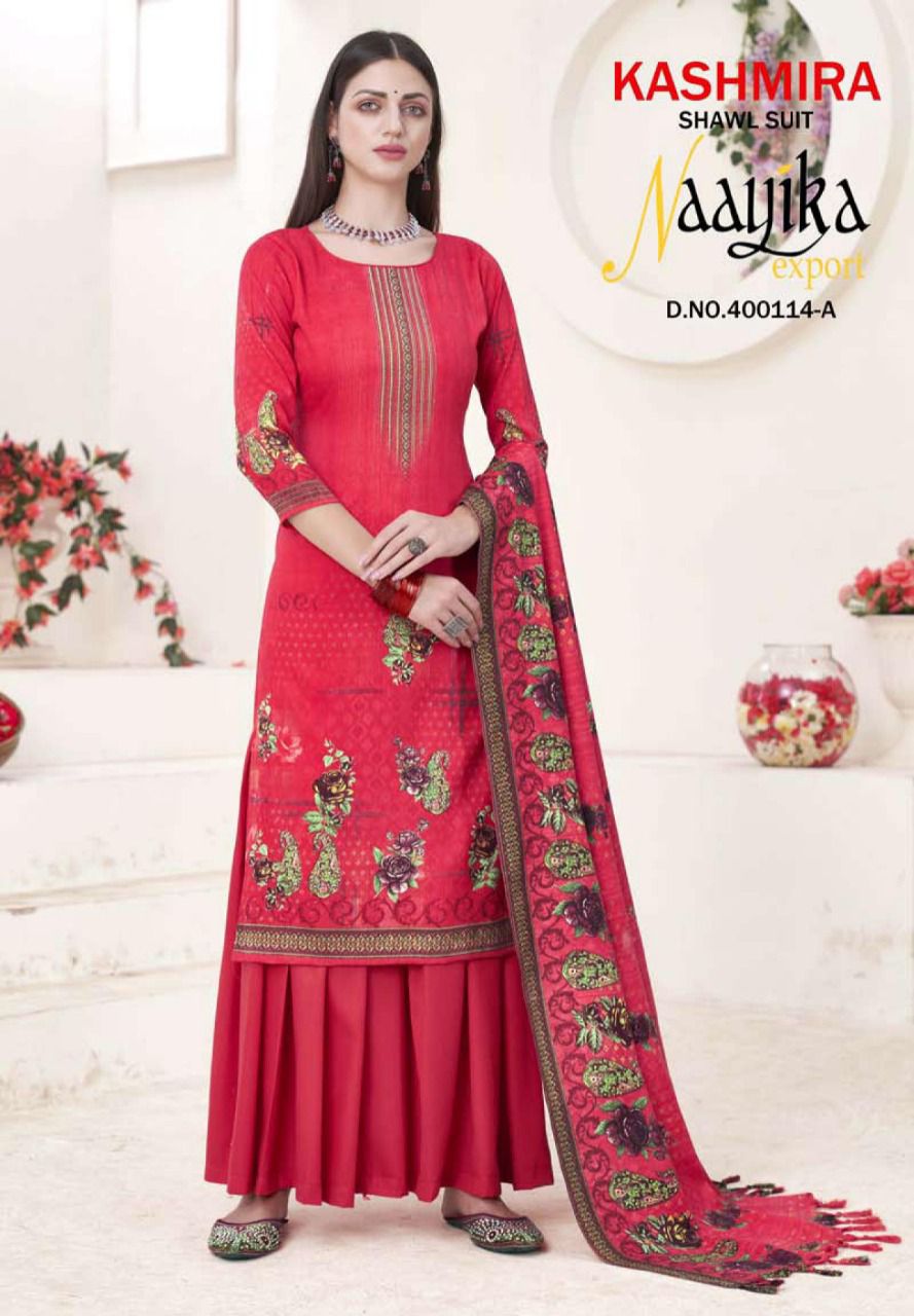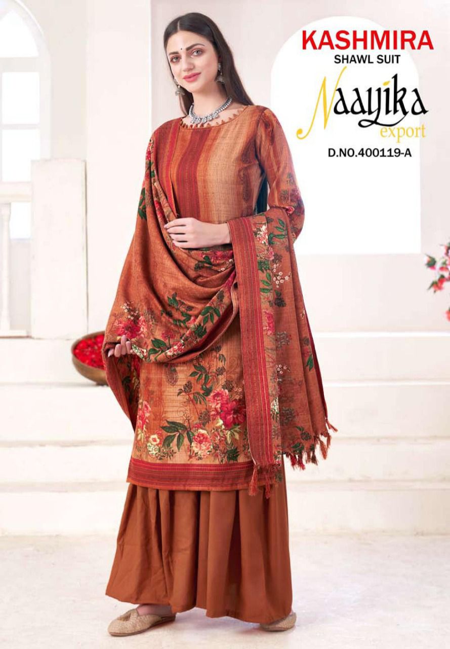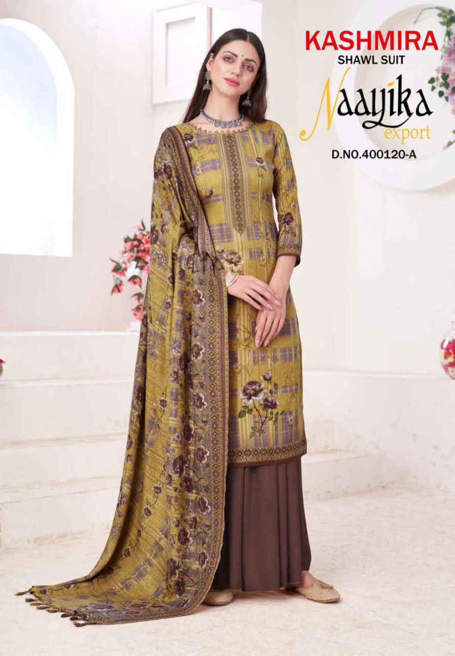 Buy Online Kashmira Shwal Suit By Naayika Export Wholesale Supplier Surat 10 Pcs of Full Catalogue at Wholesale Price. Looking for Kashmira Shwal Suit By Naayika Export Wholesale Supplier Surat Full Catalouge at Best Price? Buy Now Kashmira Shwal Suit By Naayika Export Wholesale Supplier Surat at Wholesale Rate of Rs 3500 with Total 10 Pcs from authroized dealer and supplier of Brand. Cost of Each piece is just only Rs 350 which is very low and affordable price to resale the product in your retail store ,This is Surat based Wholesale Supplier & Dealer of Brand. Click on Brand name to Know more about Brand's products.Call or Whatsapp on 9898838984 for booking or enquiry