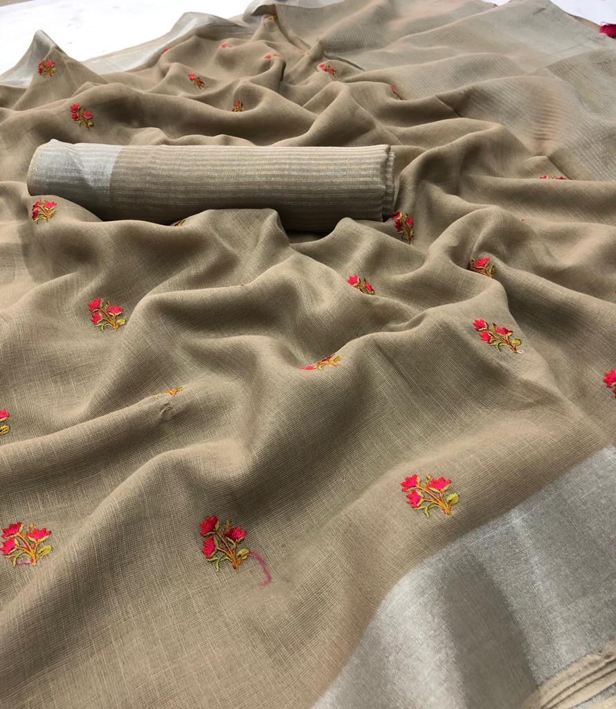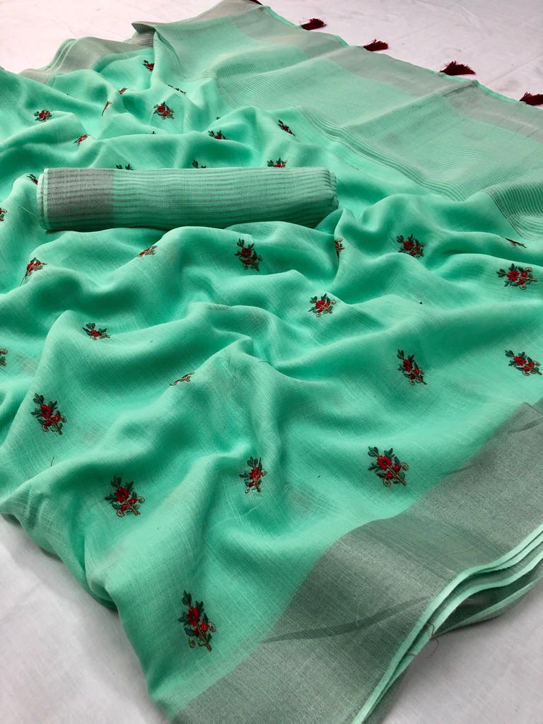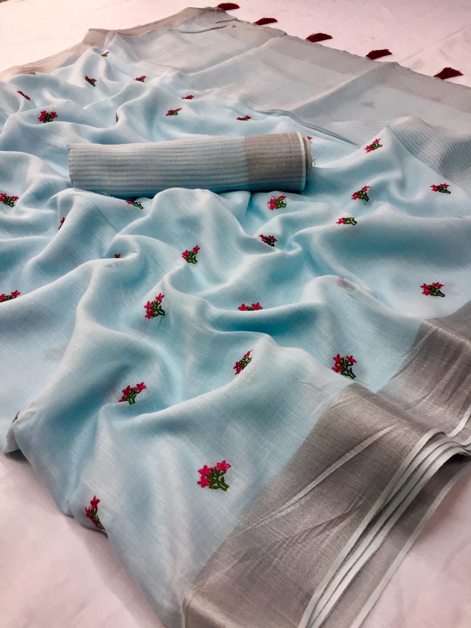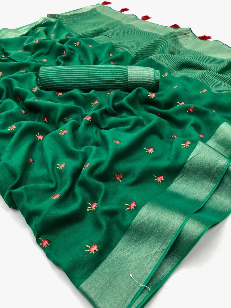 Brand - LT. Type - saree. Catlog name - Kashmiri silk . Rate -1199 per pcs . Total 10 Pcs in one set. Set to set. GST 5 Percent Extra Delivery from tomorrow. Fabric ? Linen Silk with Resham Embriodery |