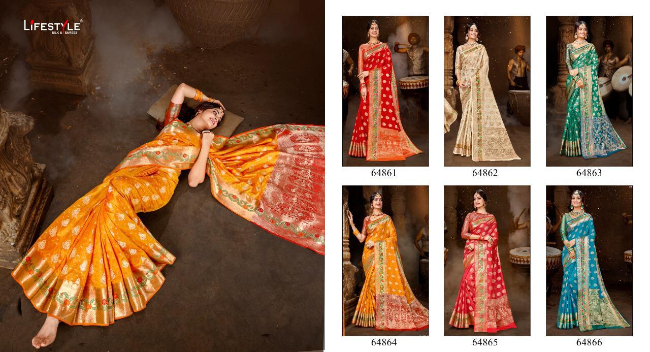 Buy Online Kashmiri Silk Vol 4 By Lifestyle Silk Sarees Wholesale Supplier And Dealer Gujarat 6 Pcs of Full Catalogue at Wholesale Price. Looking for Kashmiri Silk Vol 4 By Lifestyle Silk Sarees Wholesale Supplier And Dealer Gujarat Full Catalouge at Best Price? Buy Now Kashmiri Silk Vol 4 By Lifestyle Silk Sarees Wholesale Supplier And Dealer Gujarat at Wholesale Rate of Rs 6930 with Total 6 Pcs from authroized dealer and supplier of LIFESTYLE Brand. Cost of Each piece is just only Rs 1155 which is very low and affordable price to resale the product in your retail store ,This is Surat based Wholesale Supplier & Dealer of LIFESTYLE Brand. Click on Brand name to Know more about LIFESTYLE Brand's products.Call or Whatsapp on 9898838984 for booking or enquiry