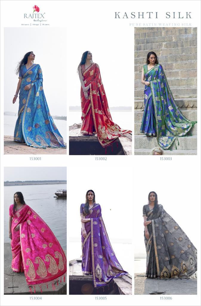 *From the origins and land of Banaras..* *Rajtex is introducing Pure Satin Weaving Silk Sarees, KASHTI SILK ??* *Rate - 1415?* per pcs . * set & loose & Singel * GST 5 Percent Extra. Series - 153001 to 153006. Delivery from today 100+ singles |