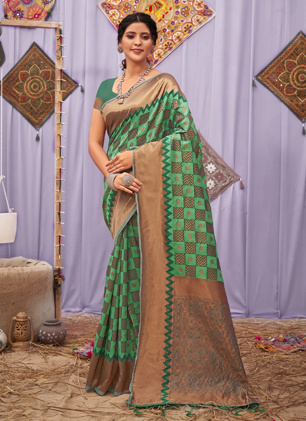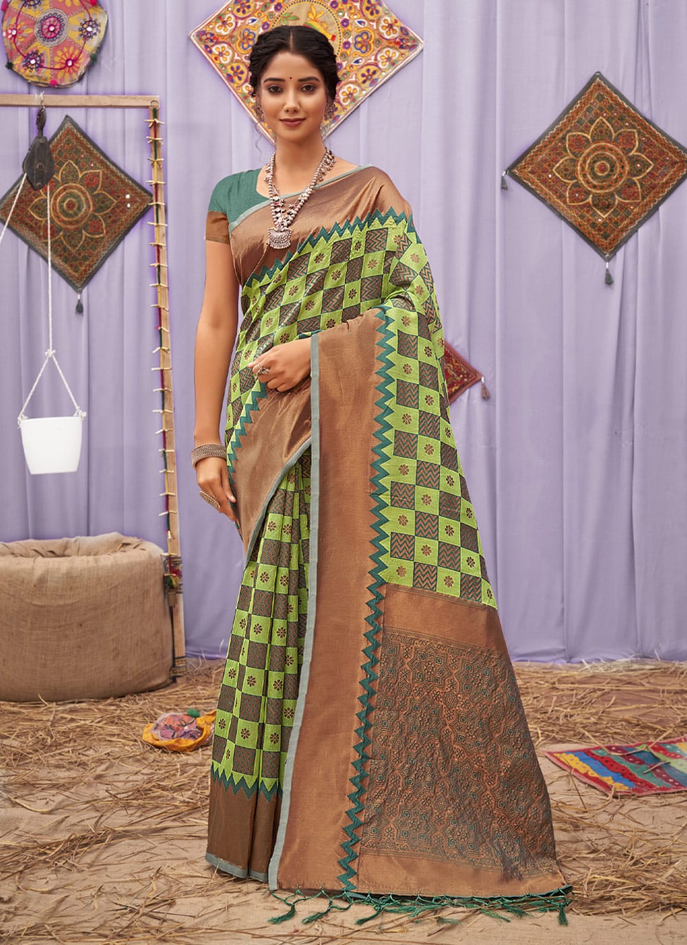 *New Catalog Exclusively Launching* Catalog Name: *Kasida Silk* Brand: *Sangam Prints* Product Type: Saree Fabric: Cotton Price Per Piece: 1160/- Gst Extra: 5% Work: Woven Work Other Specifications: Tassels on Pallu Saree Mtr: 5.5 Mtr Blouse: 0.8 Mtr Total Pcs: 6 _*Book your orders now*_ 100+single |