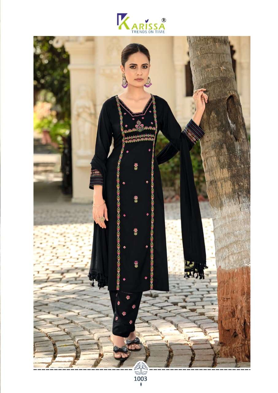Brand : *KARISSA* Catalog : *KASIDA vol-3* Design : *4* Fabric Quality : top+plazzo Premium *LIVA* Rayon with *LIVA TAG* Dupatta: primium nazneen with lace style : thread work + hand work Size : S(36),M(38),L(40), XL(42), XXL(44),3XL(46)