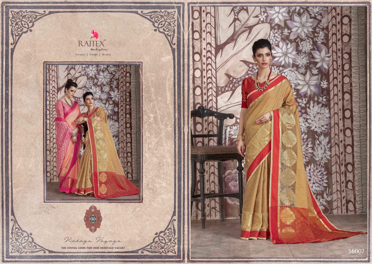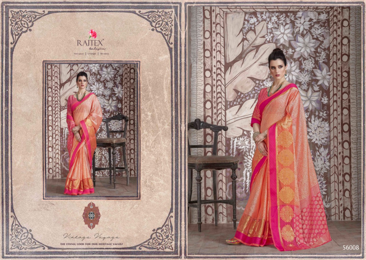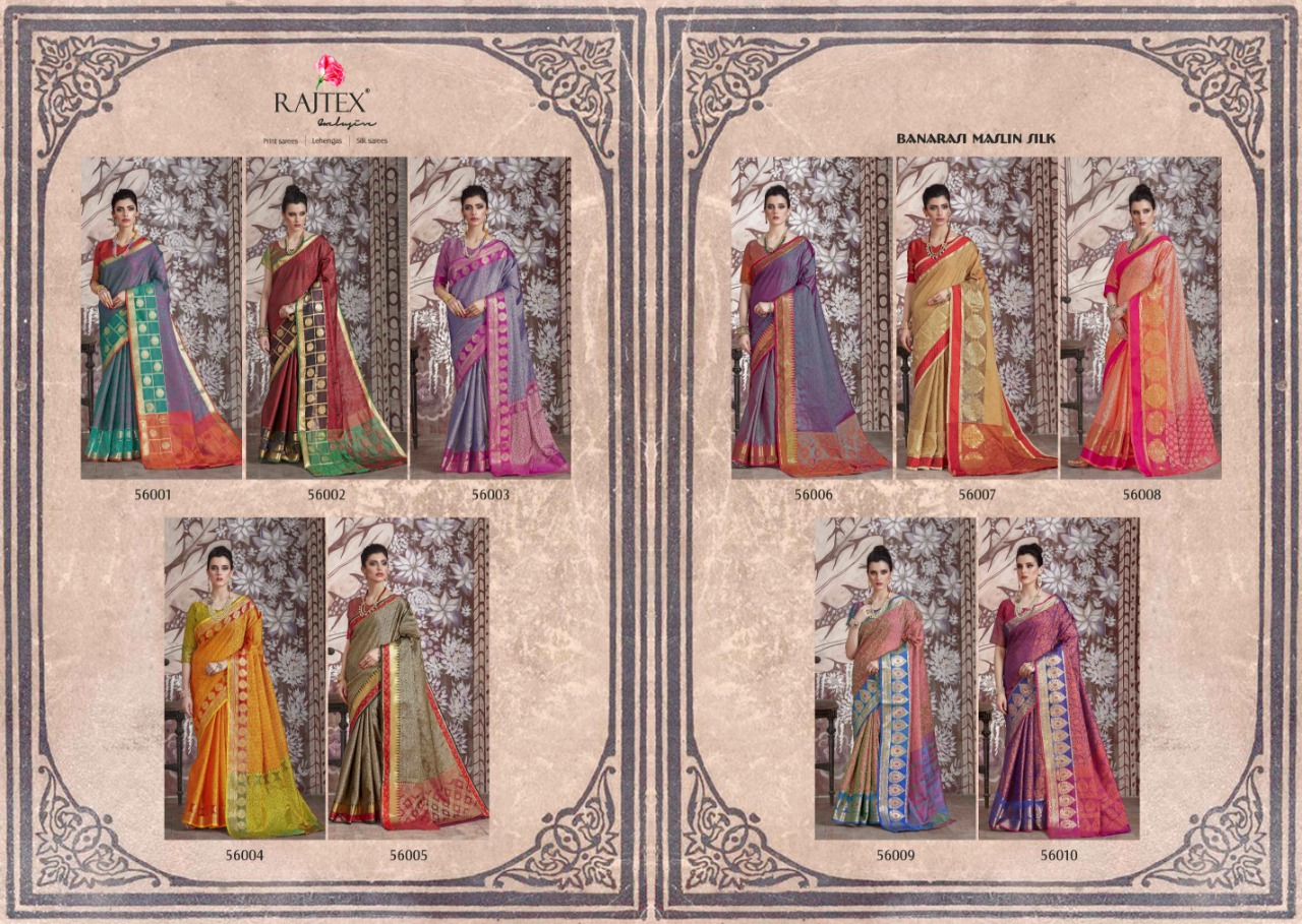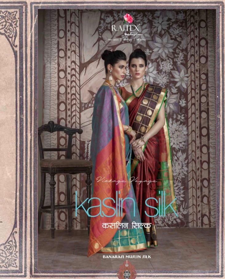 Brand - Raj Tex . Catlog name - KASLIN SILK . Series -56001 to 56010. *KASLIN SILK* *Banarasi Muslin Silk Sarees* Price - 1045 per Pcs . GST 5 Percent Extra Â? Delivery From Today * |