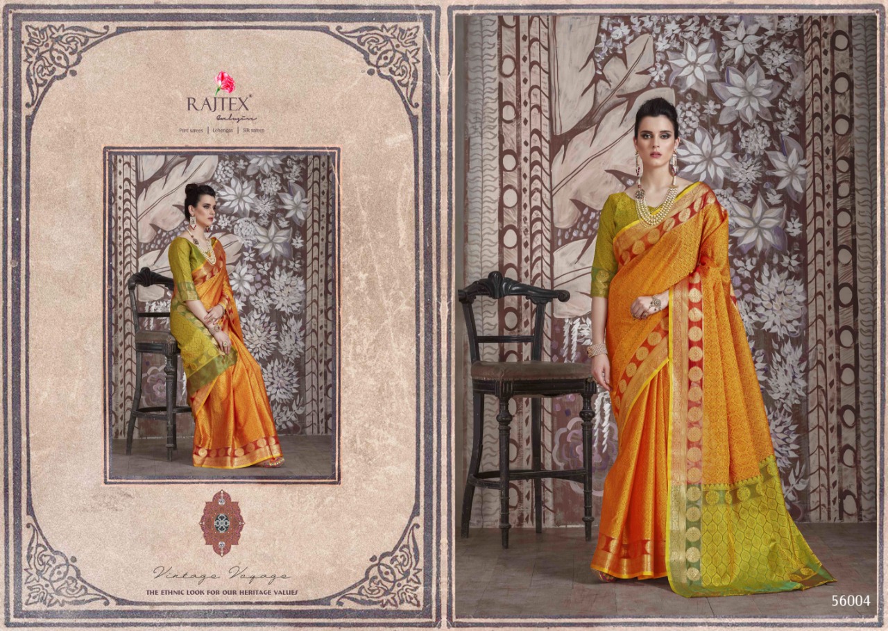Buy Online Kaslin Silk By Rajtex Series 56001 To 56010 Silk Designer Occasion Wear Sarees Wholesale Suppliers Nd Trader Nitya Nx Surat 10 Pcs of Full Catalogue at Wholesale Price. Looking for Kaslin Silk By Rajtex Series 56001 To 56010 Silk Designer Occasion Wear Sarees Wholesale Suppliers Nd Trader Nitya Nx Surat Full Catalouge at Best Price? Buy Now Kaslin Silk By Rajtex Series 56001 To 56010 Silk Designer Occasion Wear Sarees Wholesale Suppliers Nd Trader Nitya Nx Surat at Wholesale Rate of Rs 10450 with Total 10 Pcs from authroized dealer and supplier of RAJTEX Brand. Cost of Each piece is just only Rs 1045 which is very low and affordable price to resale the product in your retail store ,This is Surat based Wholesale Supplier & Dealer of RAJTEX Brand. Click on Brand name to Know more about RAJTEX Brand's products.Call or Whatsapp on 9898838984 for booking or enquiry