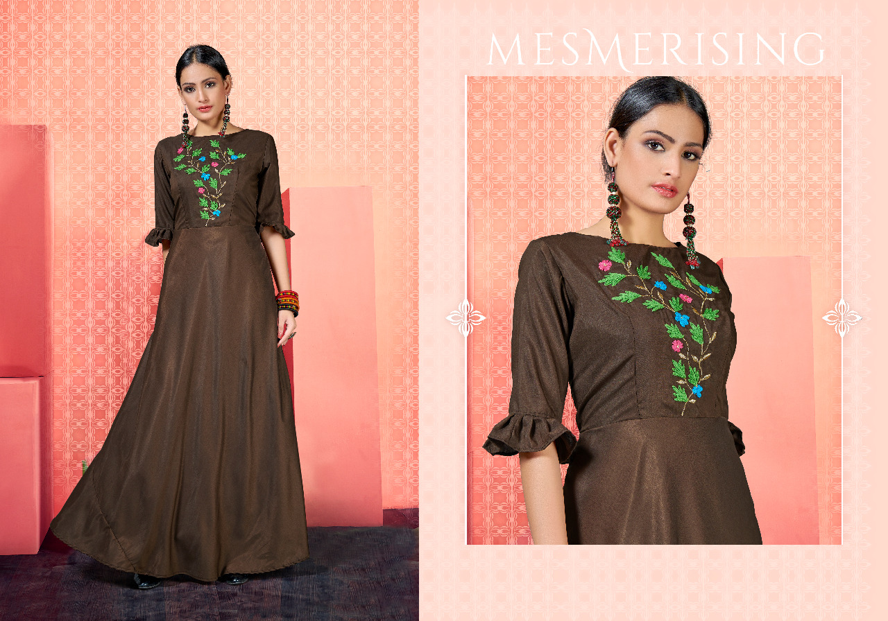 Kasmora By Rangshree Fancy Designer Polyster Muslin Gown Collection Wholesaler Sura