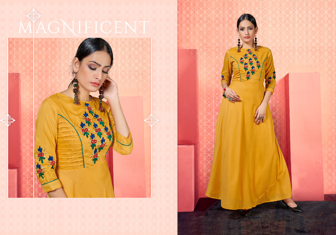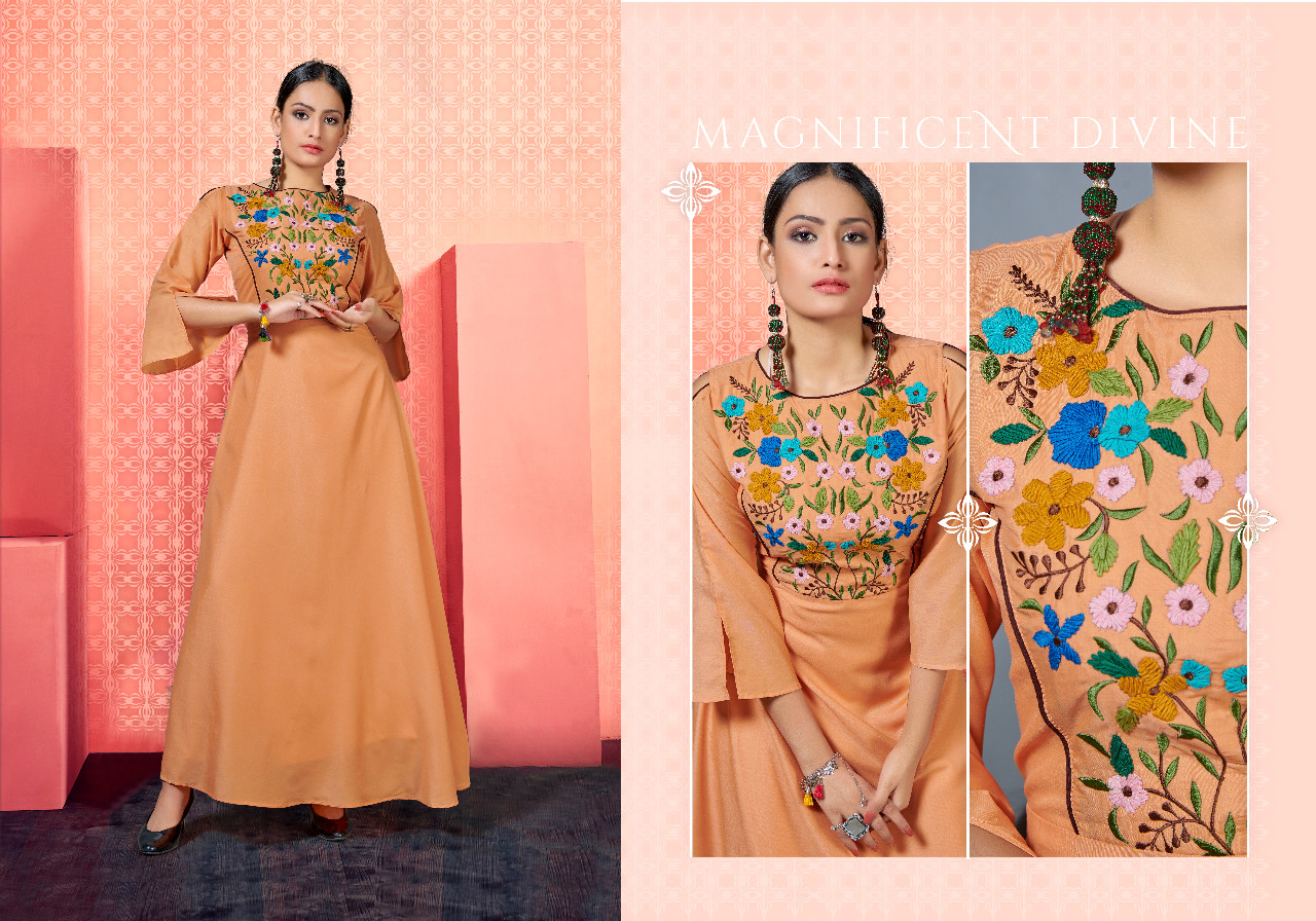 Buy Online Kasmora By Rangshree Fancy Designer Polyster Muslin Gown Collection Wholesaler Sura 6 Pcs of Full Catalogue at Wholesale Price. Looking for Kasmora By Rangshree Fancy Designer Polyster Muslin Gown Collection Wholesaler Sura Full Catalouge at Best Price? Buy Now Kasmora By Rangshree Fancy Designer Polyster Muslin Gown Collection Wholesaler Sura at Wholesale Rate of Rs 5394 with Total 6 Pcs from authroized dealer and supplier of Brand. Cost of Each piece is just only Rs 899 which is very low and affordable price to resale the product in your retail store ,This is Surat based Wholesale Supplier & Dealer of Brand. Click on Brand name to Know more about Brand's products.Call or Whatsapp on 9898838984 for booking or enquiry
