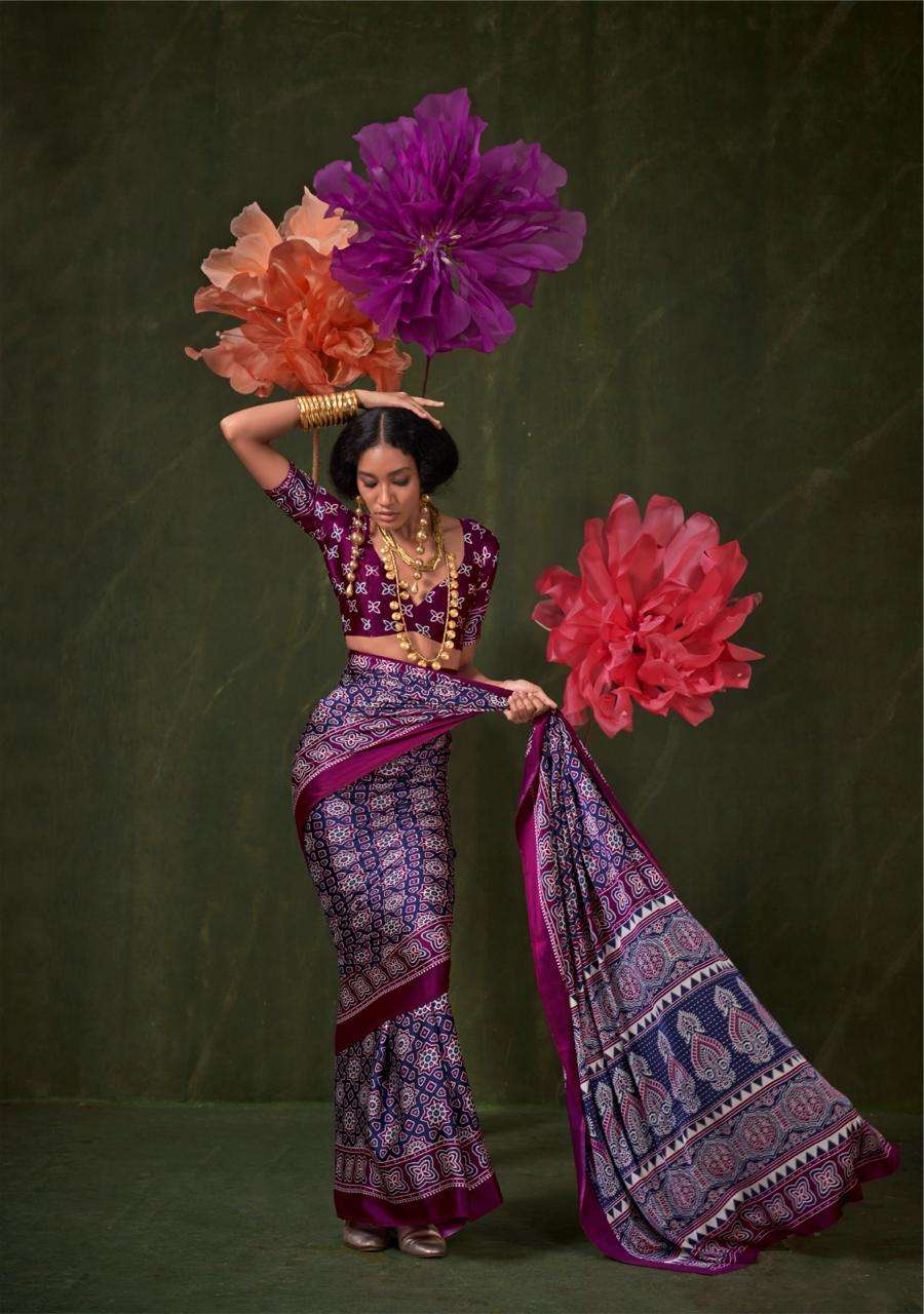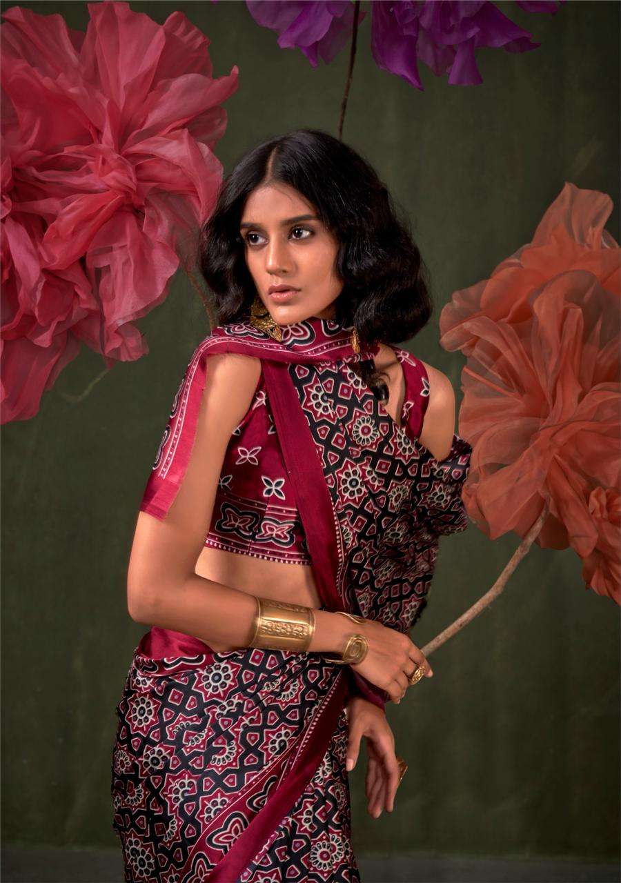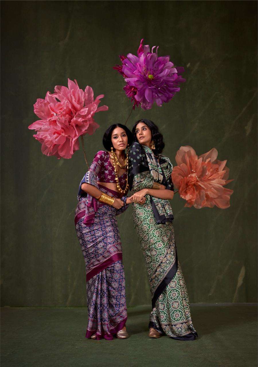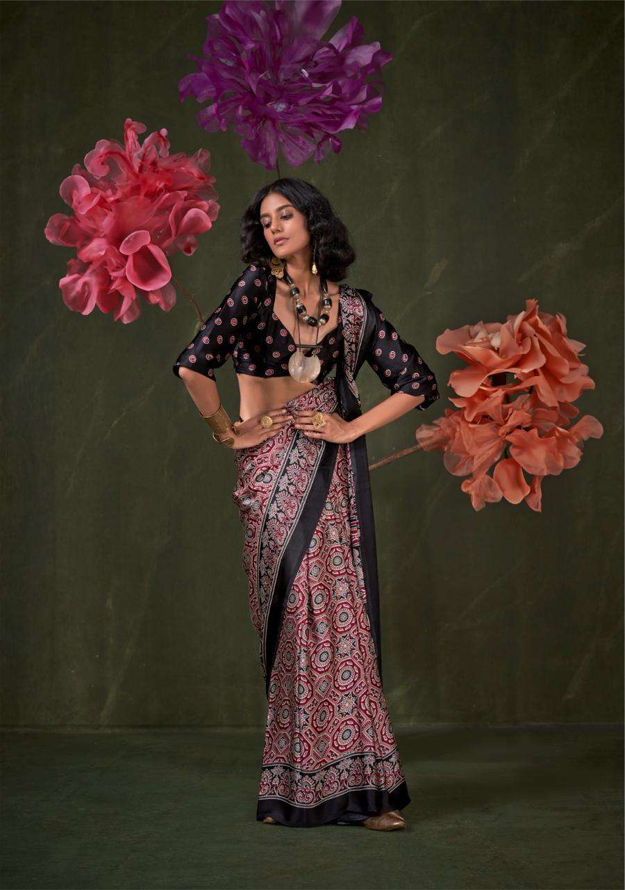*KASTOOR* *PRINTED AJRAKH - SATIN CREPE SAREES*