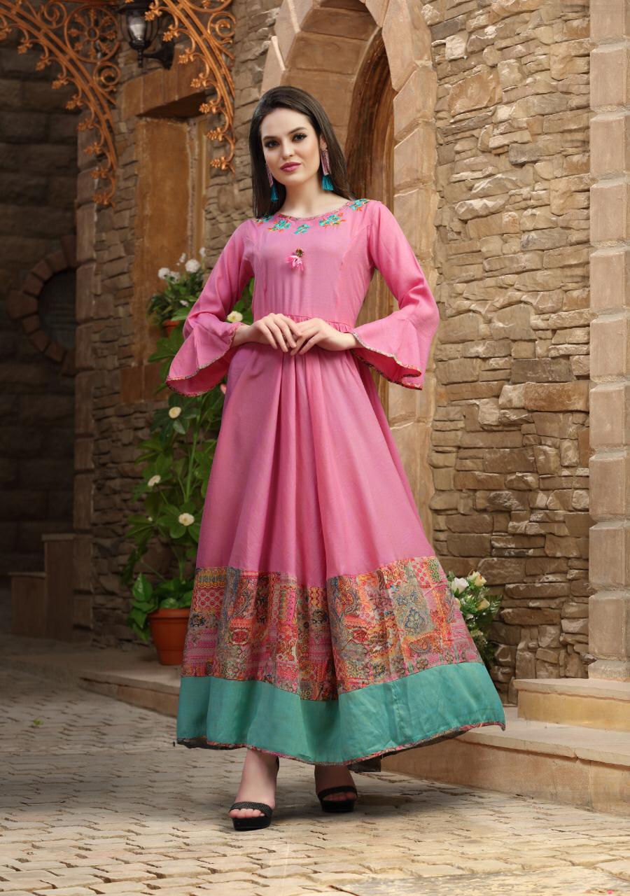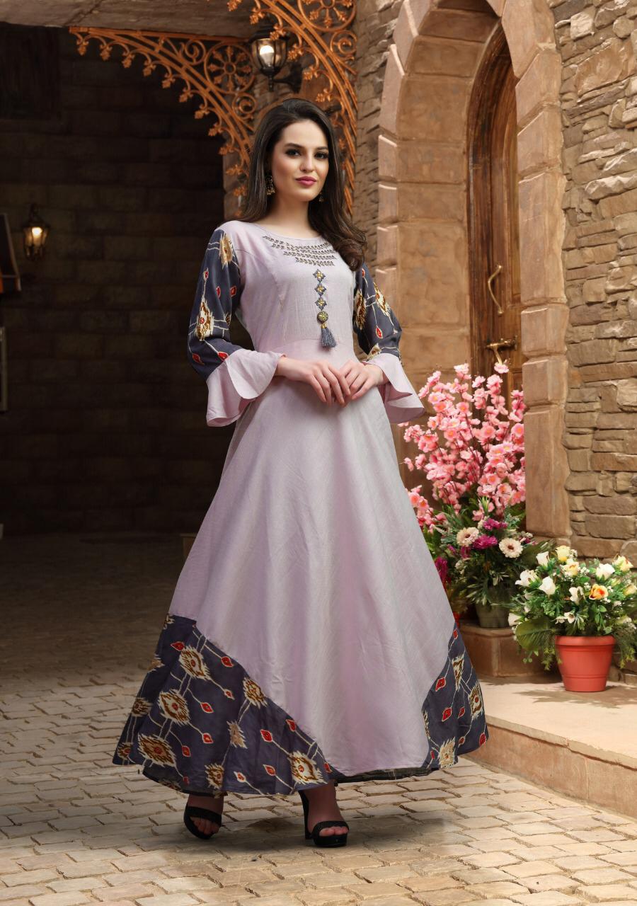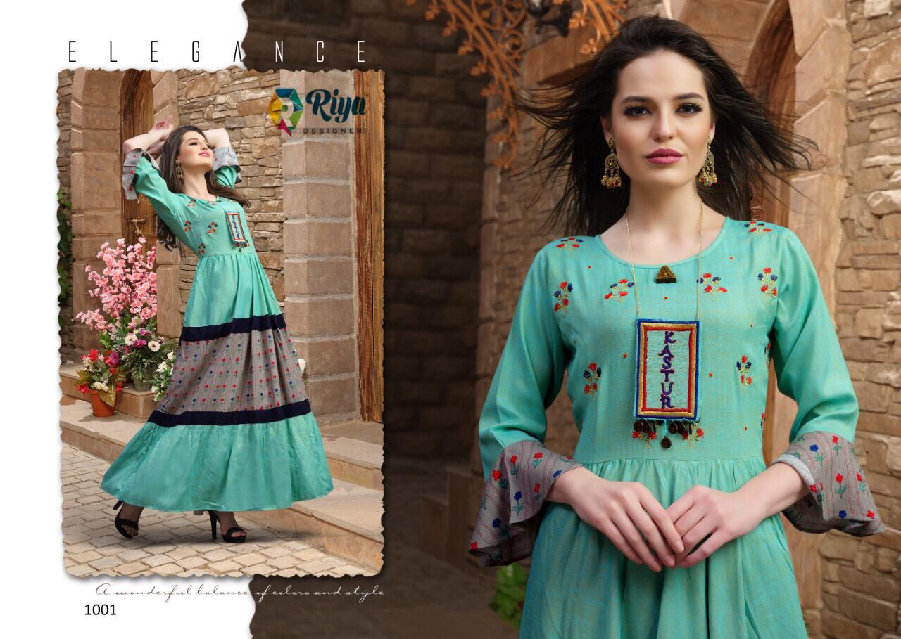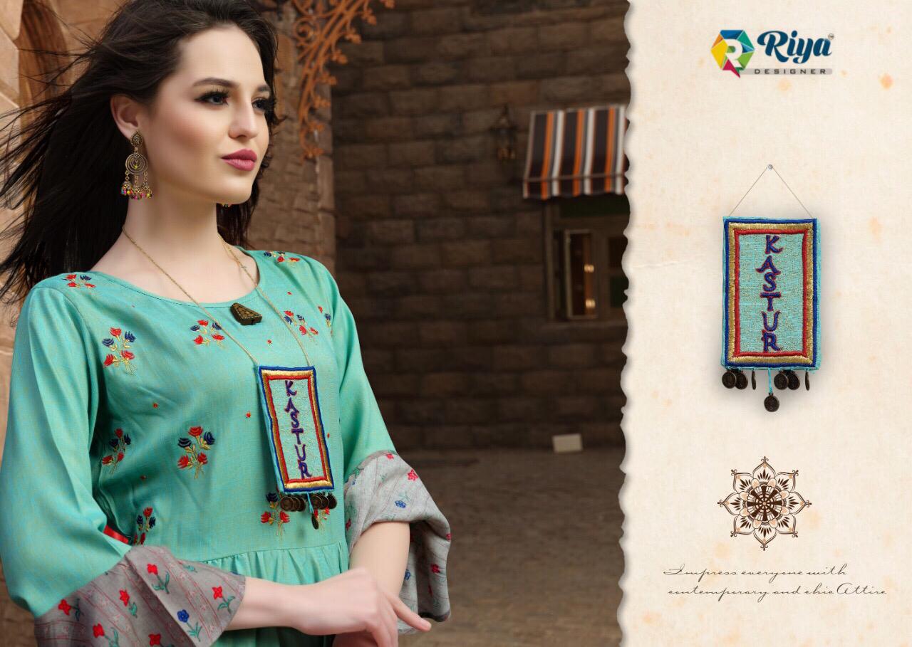 *Riya Designer* Â? is proud to launch its latest **Festive like* A collection of *Gown Kurtis* enriched with *Exquisite Handwork* paired with *Two Tone Fabric* ? Catalog: *Kastur* ? Kurti Fabric: *Two tone Namo with Reyon Print With Foil With Hand work And Assosrics* ?Pcs: *6* ? Sizes: *L, XL, XXL* ? Price: *799* per Pcs Set To Set. GST 5 Percent Extra Delivery soon Booking Started *Limited Stock* *Book your Orders Soon* |