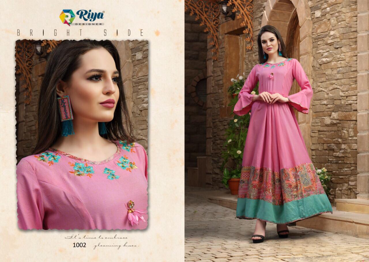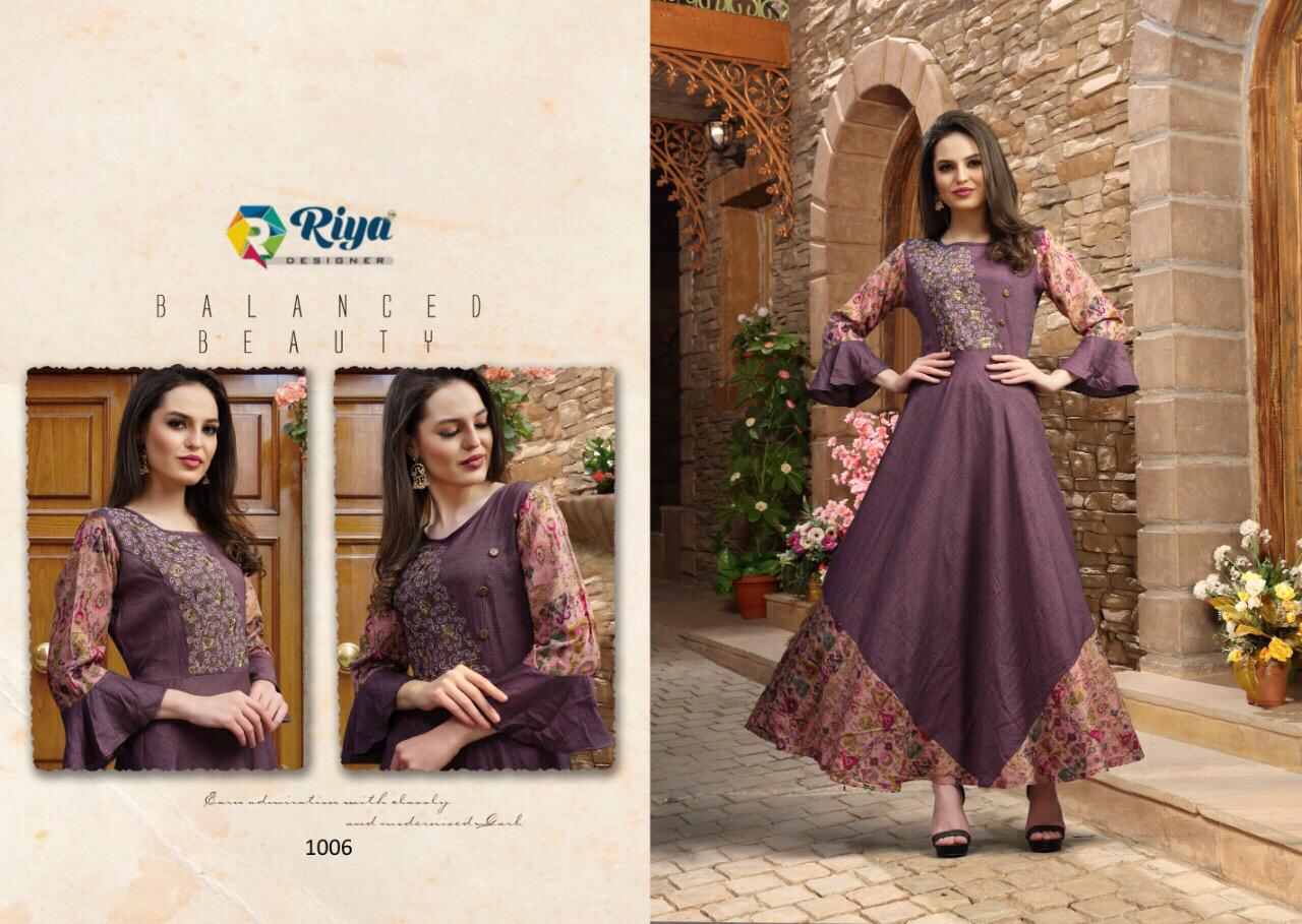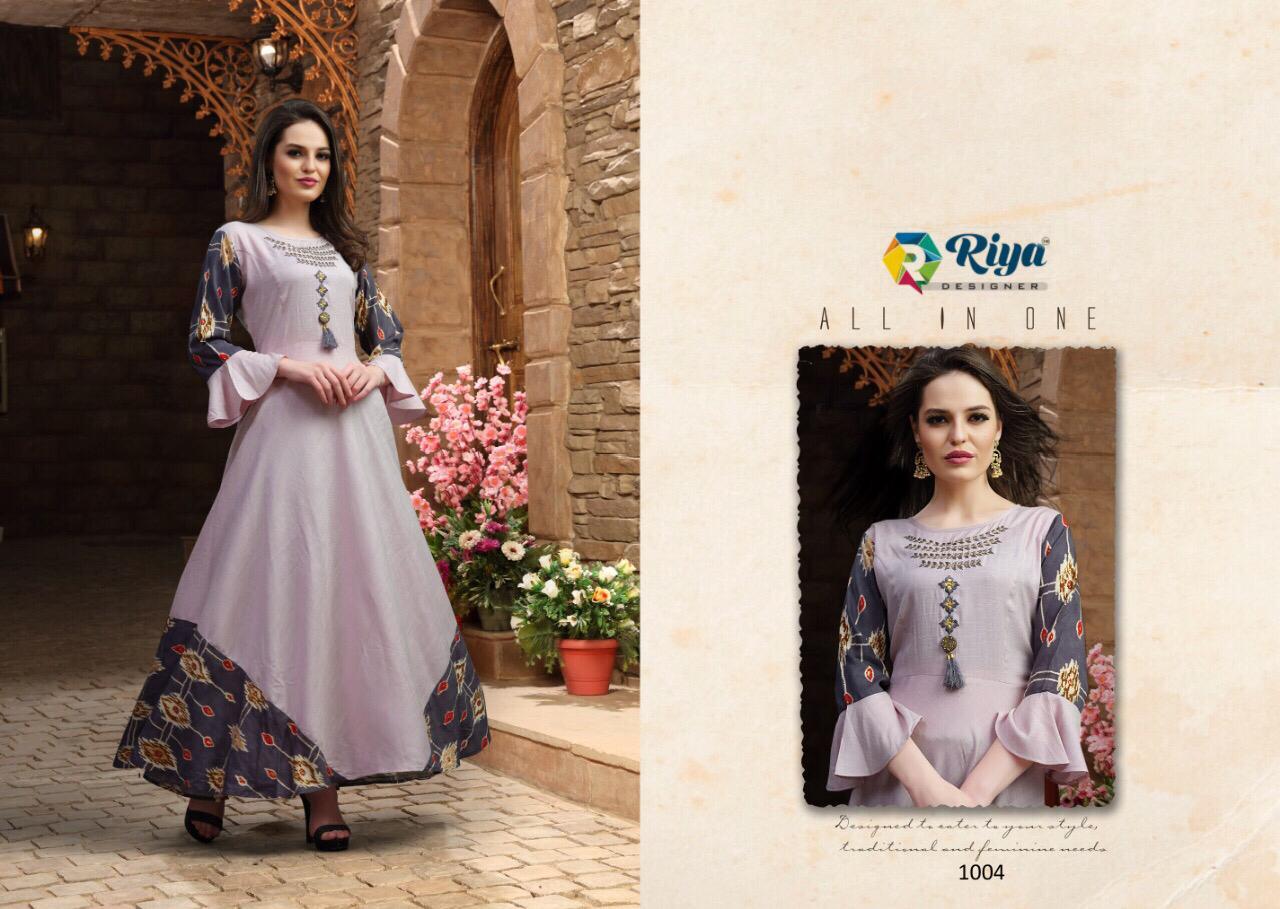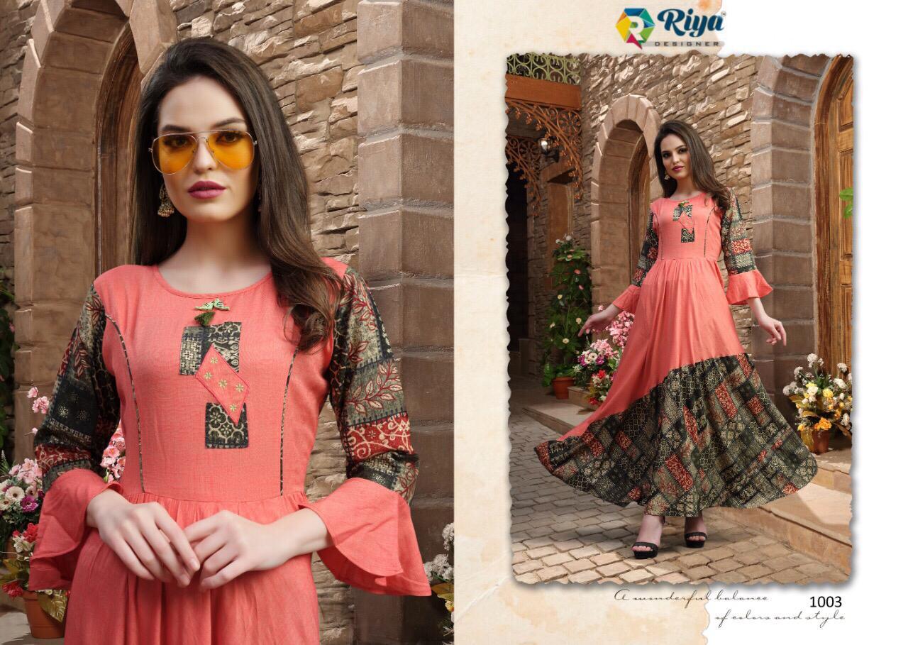*Riya Designer* Â? is proud to launch its latest **Festive like* A collection of *Gown Kurtis* enriched with *Exquisite Handwork* paired with *Two Tone Fabric* ? Catalog: *Kastur* ? Kurti Fabric: *Two tone Namo with Reyon Print With Foil With Hand work And Assosrics* ?Pcs: *6* ? Sizes: *L, XL, XXL* ? Price: *799* per Pcs Set To Set. GST 5 Percent Extra Delivery soon Booking Started *Limited Stock* *Book your Orders Soon* |