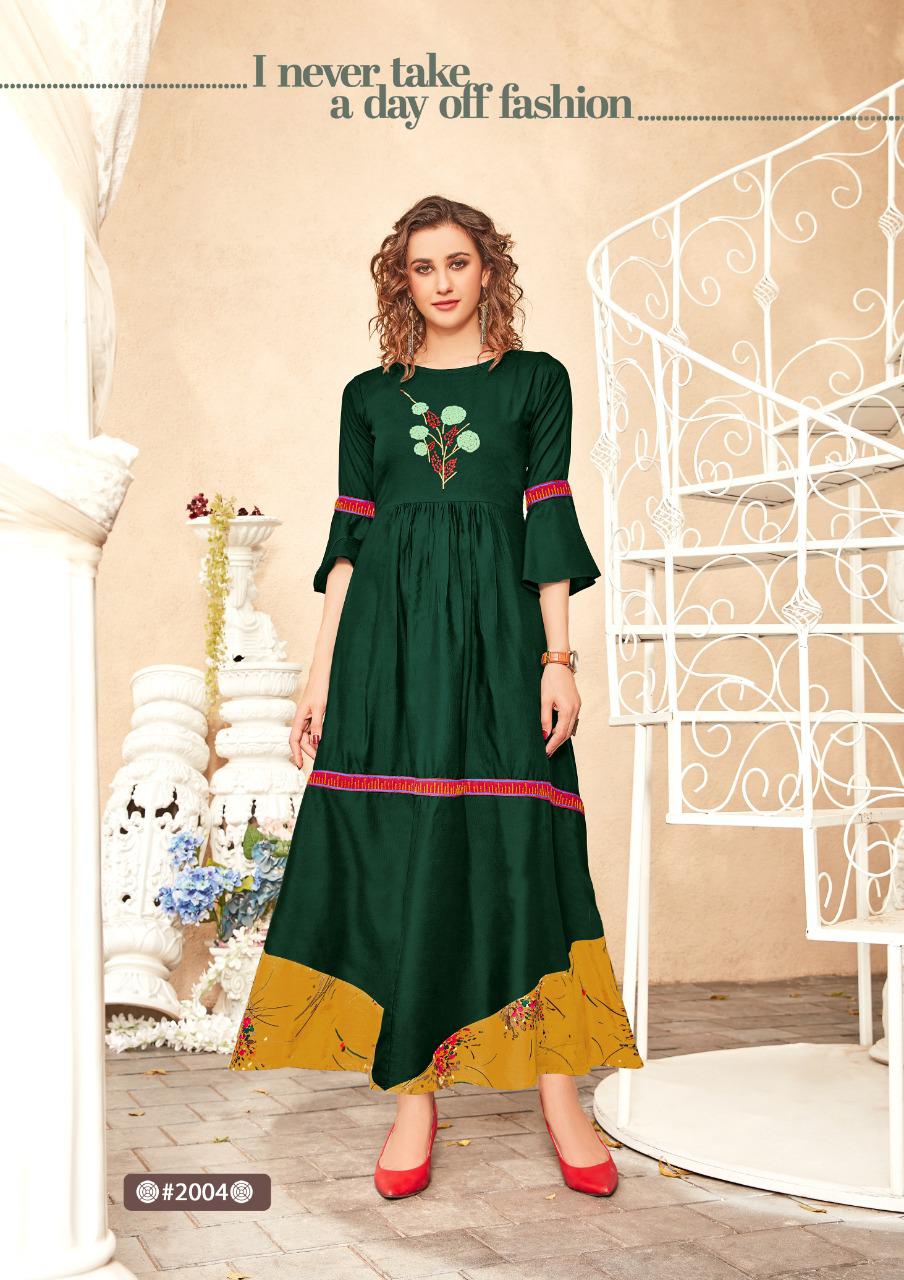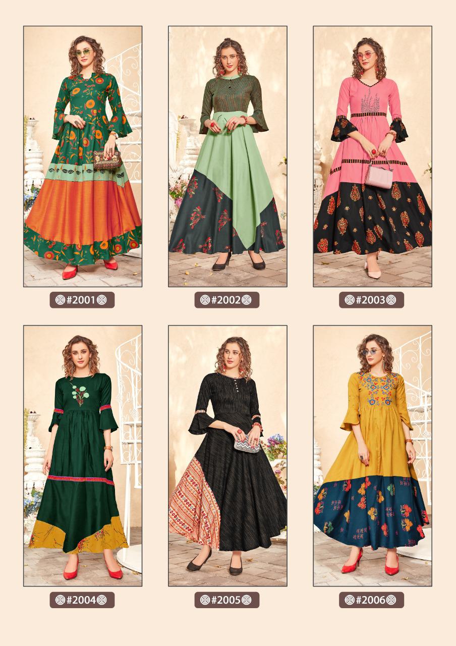 *Riya Designer* Â?? is proud to launch its latest **Festive like* A collection of *Gown Kurtis* enriched with *Exquisite Handwork* paired with *Two Tone Fabric* ? Catalog: *Kastur Vol 2* ? Kurti Fabric: *Two tone Namo with Sansari Silk With Reyon Print With Foil With Hand work And Assosrics* ?Pcs: *6* ? Sizes: *L,XL, XXL* ? Price: *799* Booking Started *Limited Stock* |