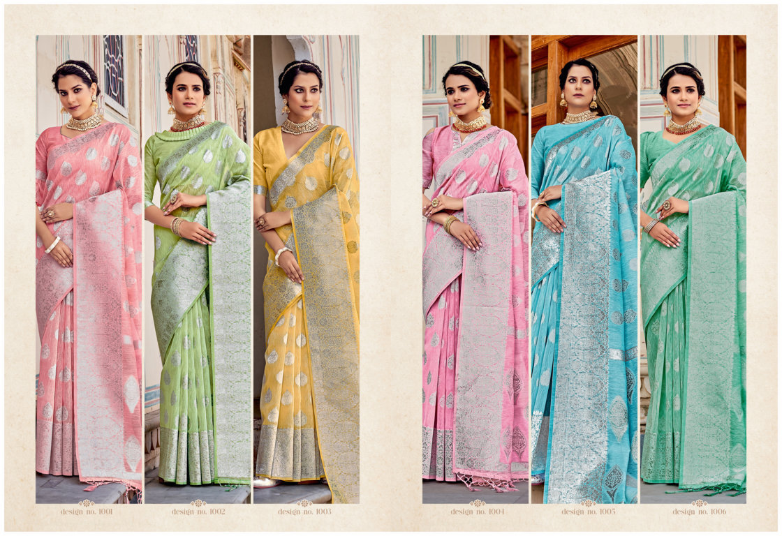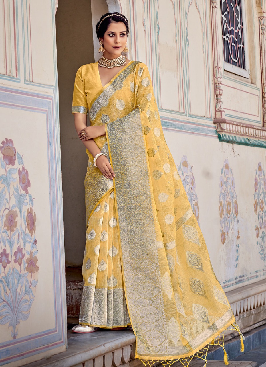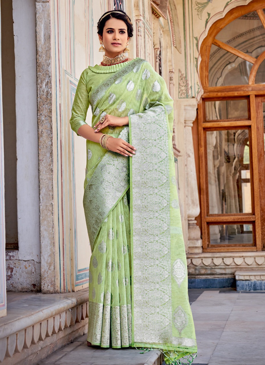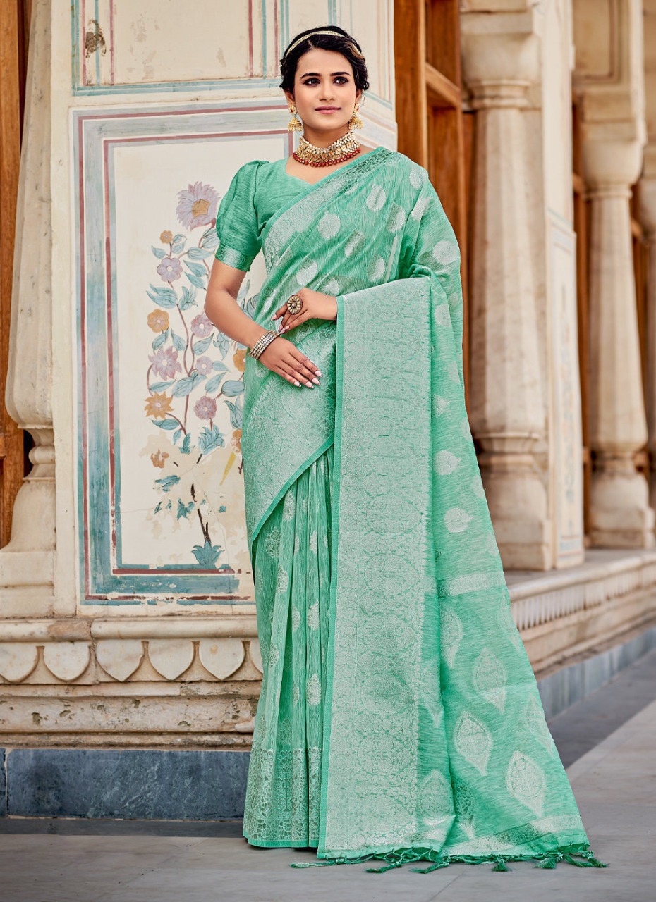 Catalog Name: *_Katan Silk_* Brand: *_Sangam Prints_* Product Type: Saree Fabric: Linen Price Per Piece: 1785/- Gst Extra: 5% Work: Woven Other Specifications: Tassels at pallu Saree Mtr: 5.5 Mtr Blouse: 0.8 Mtr Total Pcs: 6 *_Book your orders now_* Single available 100+single |
