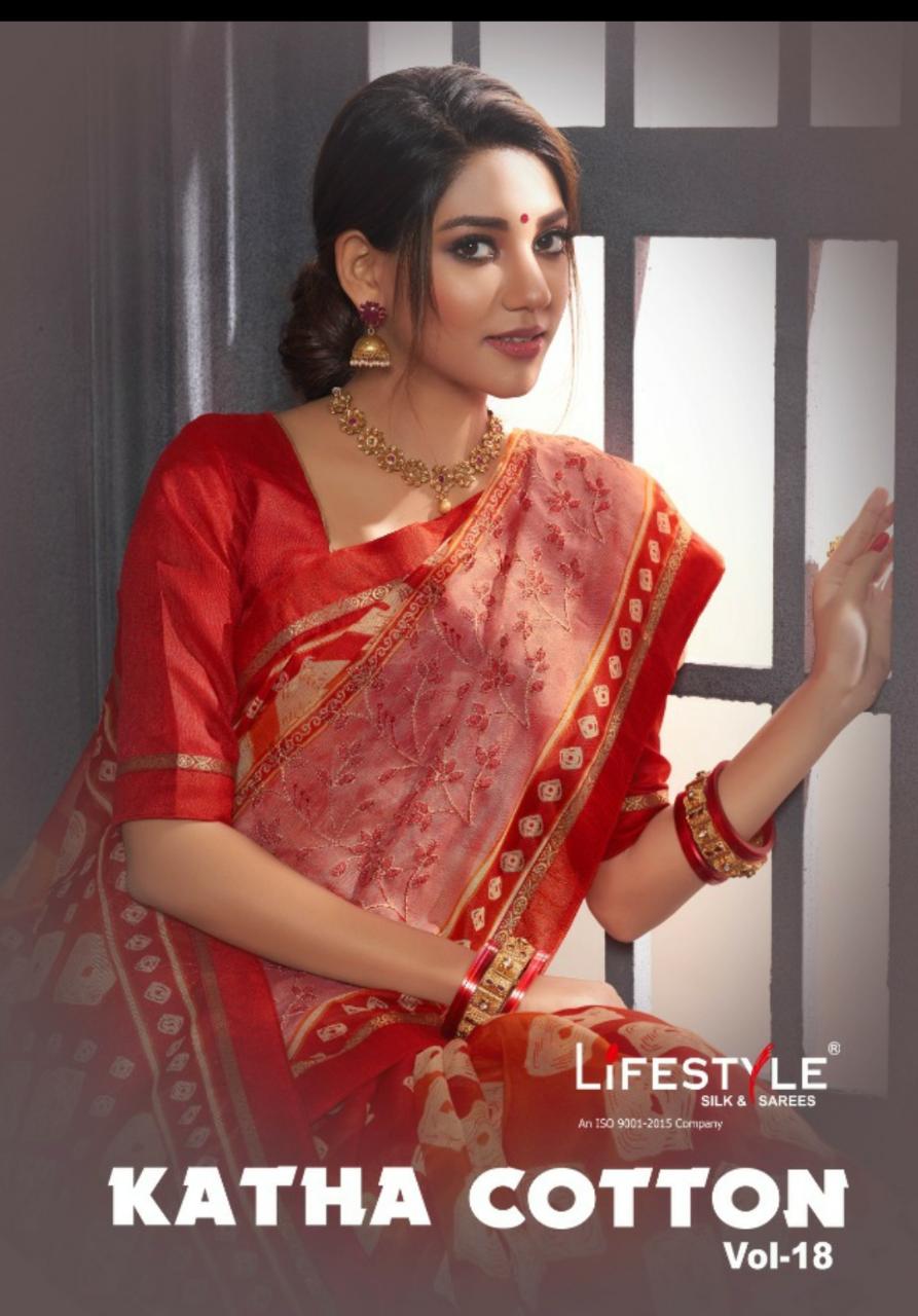 Katha Cotton 18 By Lifestyle Sarees Wholesale Supplier Gujarat