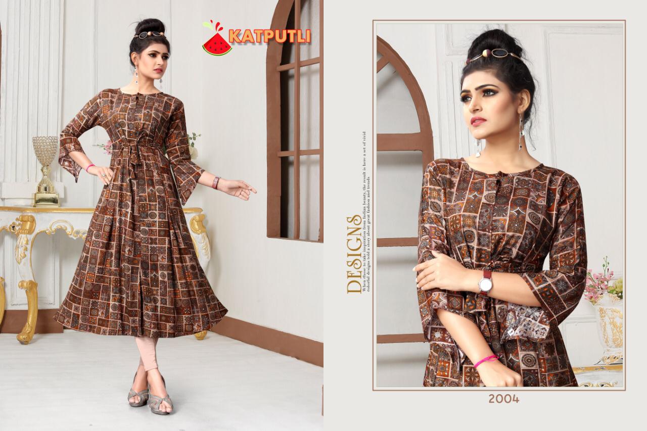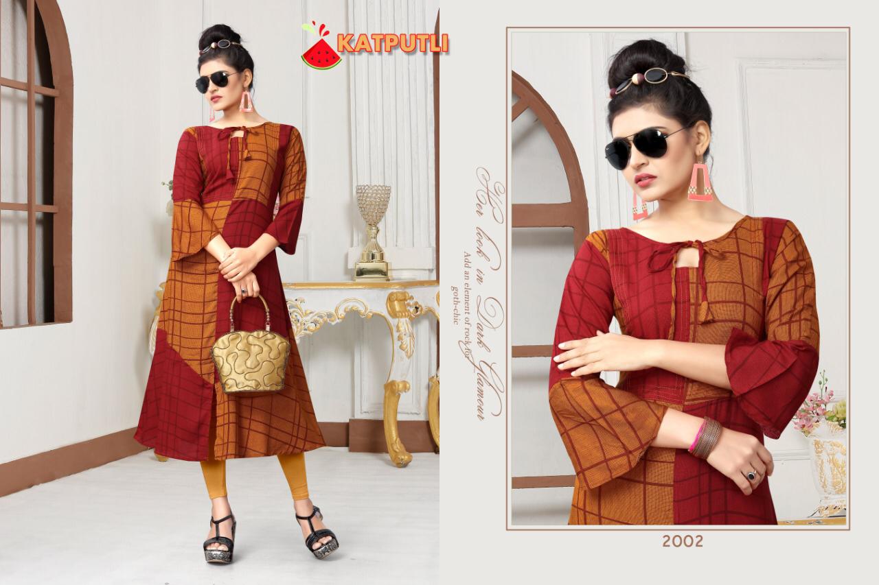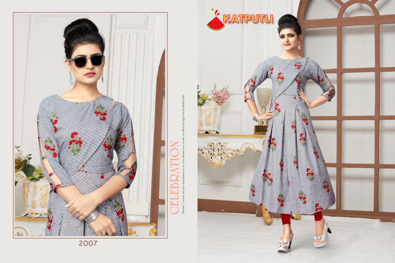 Buy Online Katputli By Watermelon 2001 Series Fancy Reyon Printed Kurti Catlog Wholesaler Surat 7 Pcs of Full Catalogue at Wholesale Price. Looking for Katputli By Watermelon 2001 Series Fancy Reyon Printed Kurti Catlog Wholesaler Surat Full Catalouge at Best Price? Buy Now Katputli By Watermelon 2001 Series Fancy Reyon Printed Kurti Catlog Wholesaler Surat at Wholesale Rate of Rs 3969 with Total 7 Pcs from authroized dealer and supplier of WATERMELON Brand. Cost of Each piece is just only Rs 567 which is very low and affordable price to resale the product in your retail store ,This is Surat based Wholesale Supplier & Dealer of WATERMELON Brand. Click on Brand name to Know more about WATERMELON Brand's products.Call or Whatsapp on 9898838984 for booking or enquiry