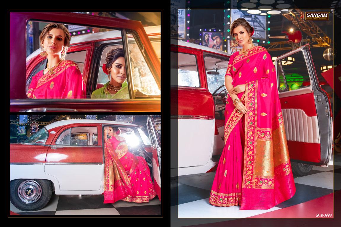 Brand - Sangam Catalog Name : KAUSHALYA SILK Saree Size : 5.50 Mtr Blouse Fabric : 0.80 Mtr Saree Fabric : Jacquard Silk Blouse Fabric : Jacquard Silk Price : 1830 /-Gst Extra Set to set |