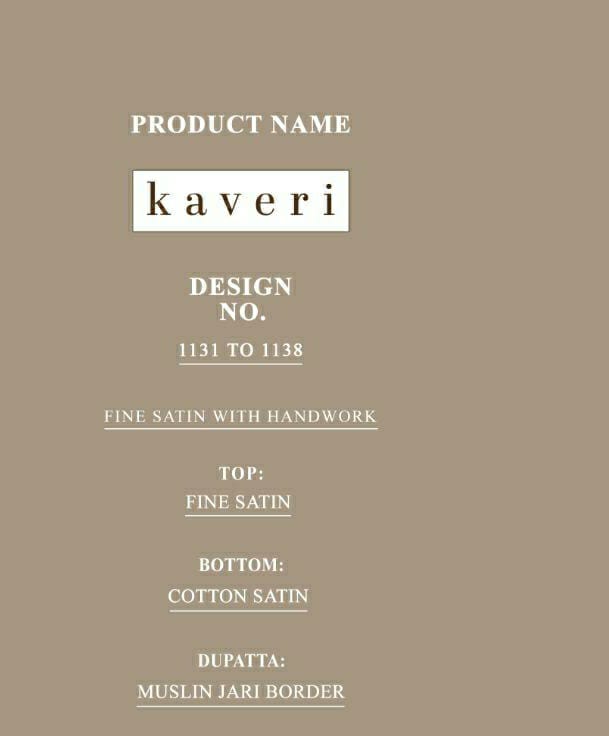 *Brand :* OM TEX *Catalog Name :* Kaveri *Price :* ?1595 *Piece :* 8 *Total Price :* 12760 ( GST Extra ) *Size :* Unstitched *Fabric :* Satin *Availibility :* On Booking |