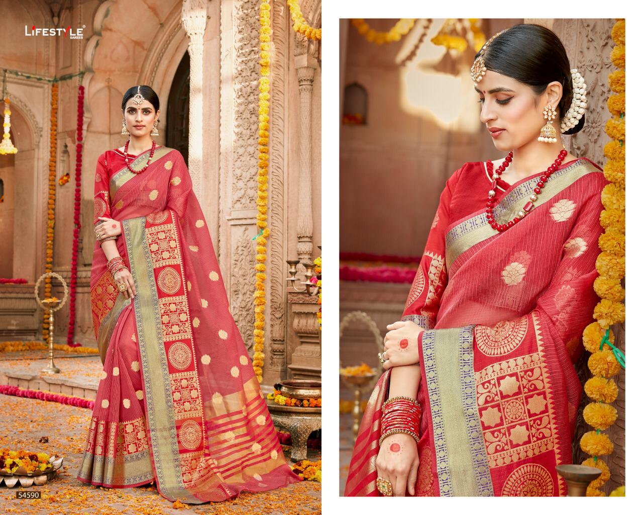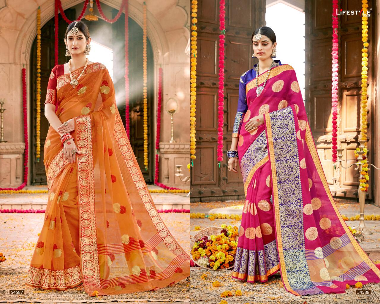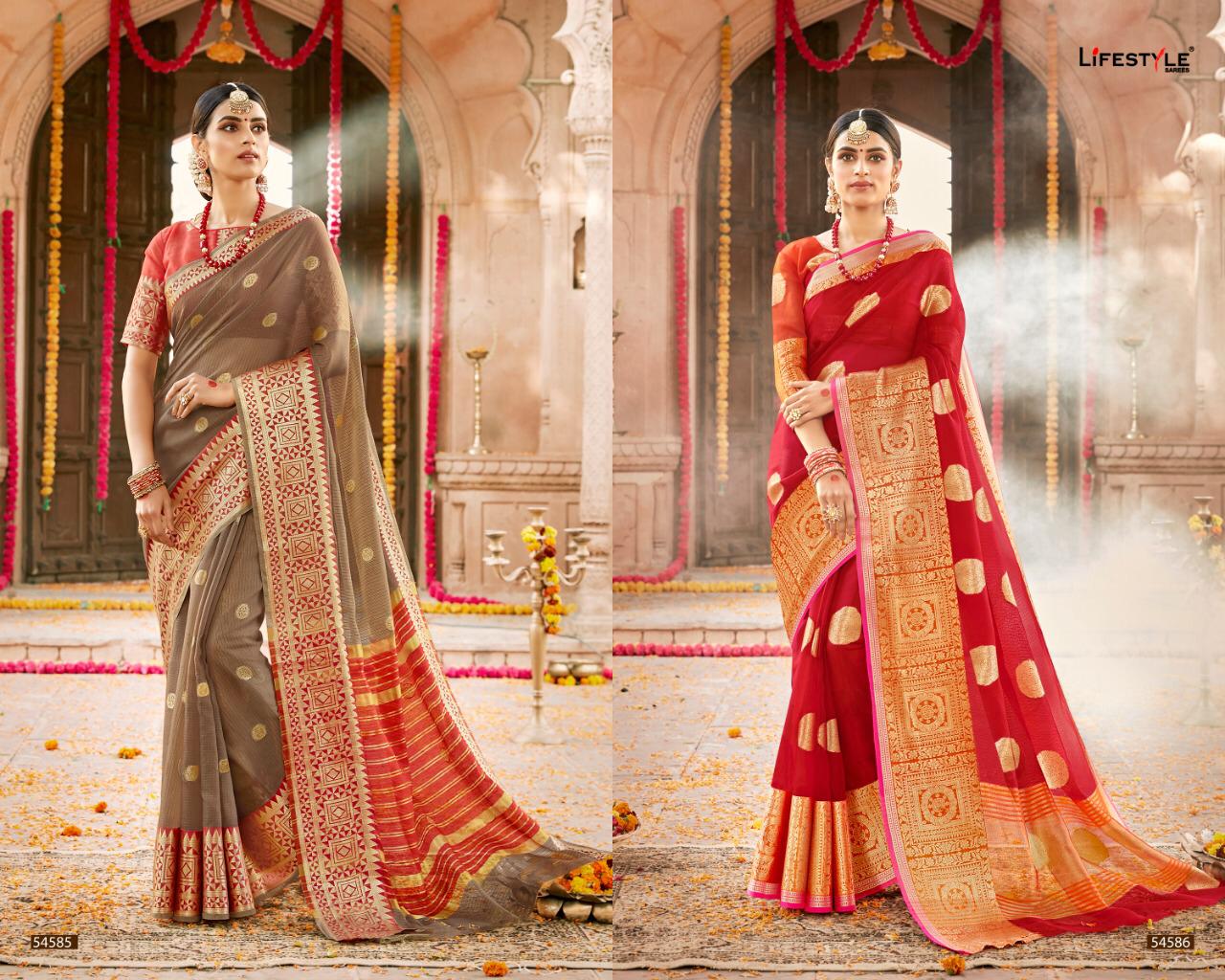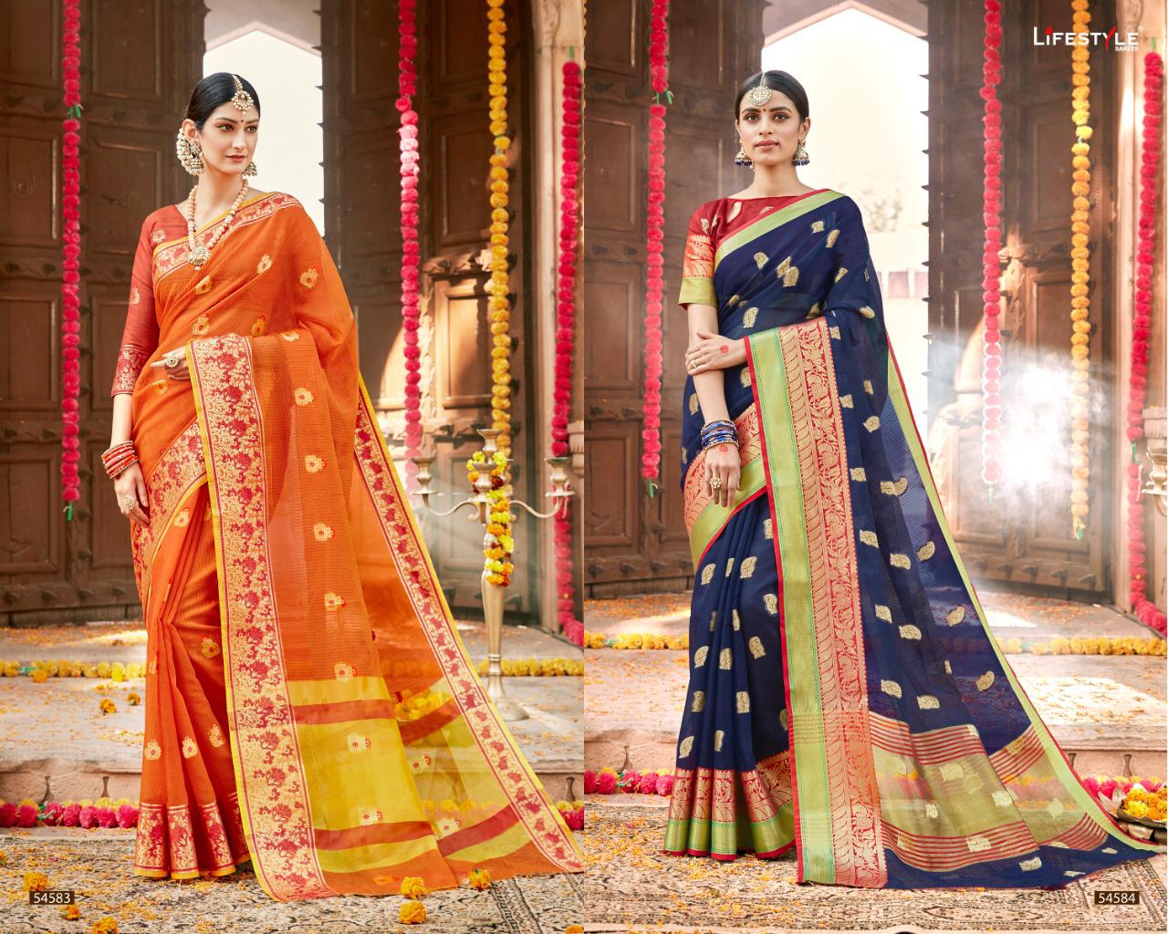 Kavita Vol 2 By Lifestyle 54581 Series Fancy Tapriya Checks Saree Collection Wholesaler Surat