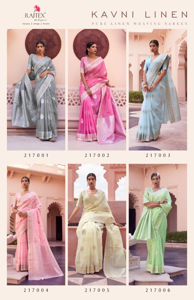 Buy Online Kavni Linen Series 217001 To 217006 By Rajtex 6 Pcs of Full Catalogue at Wholesale Price. Looking for Kavni Linen Series 217001 To 217006 By Rajtex Full Catalouge at Best Price? Buy Now Kavni Linen Series 217001 To 217006 By Rajtex at Wholesale Rate of Rs 7770 with Total 6 Pcs from authroized dealer and supplier of RAJTEX Brand. Cost of Each piece is just only Rs 1295 which is very low and affordable price to resale the product in your retail store ,This is Surat based Wholesale Supplier & Dealer of RAJTEX Brand. Click on Brand name to Know more about RAJTEX Brand's products.Call or Whatsapp on 9898838984 for booking or enquiry