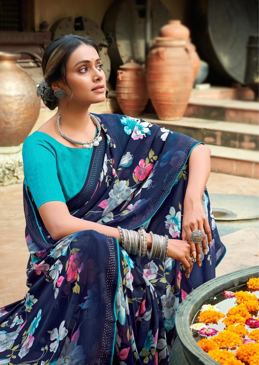 Kavya Lt Fabric Regular Wear Georgette Floral Print Saree