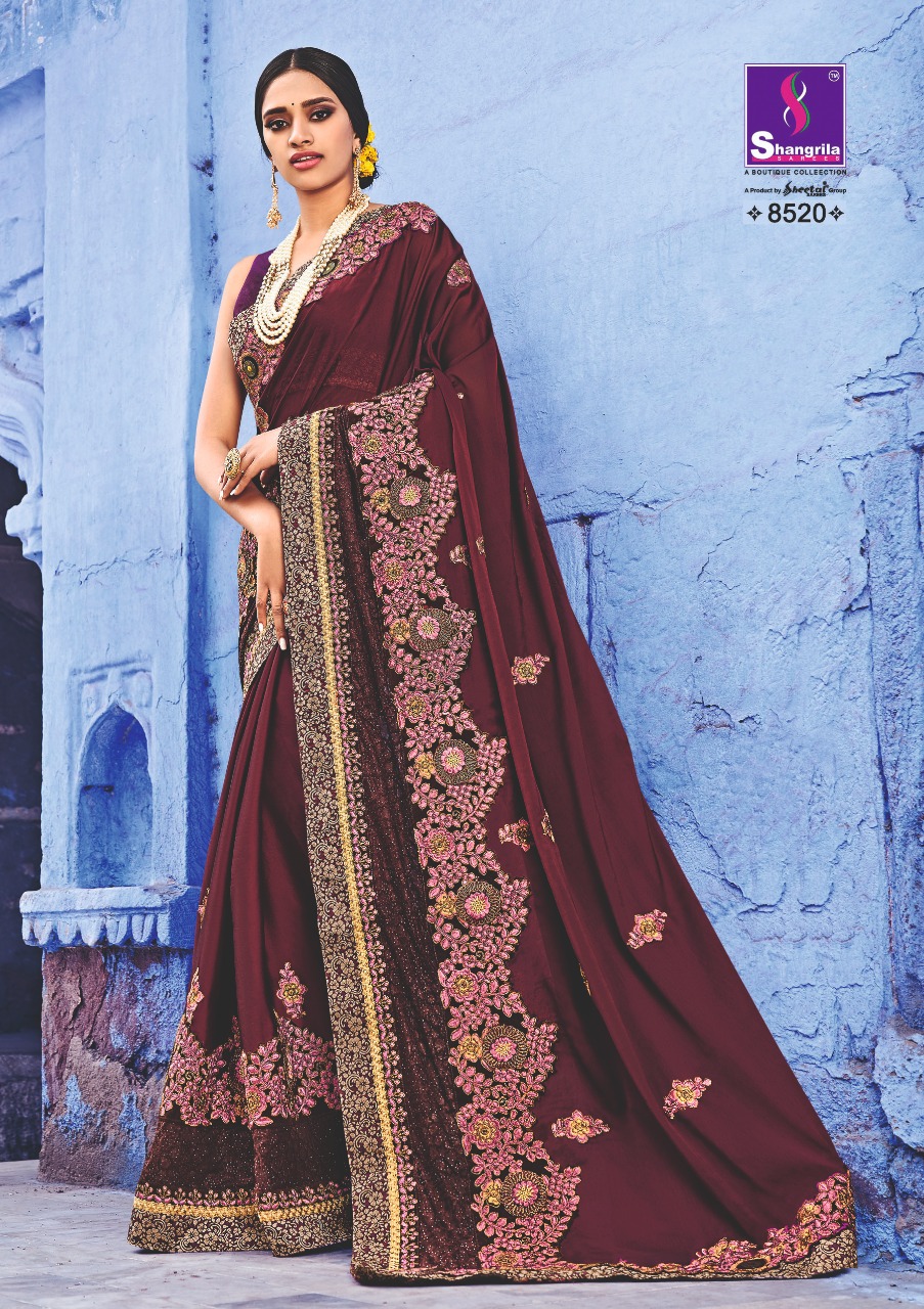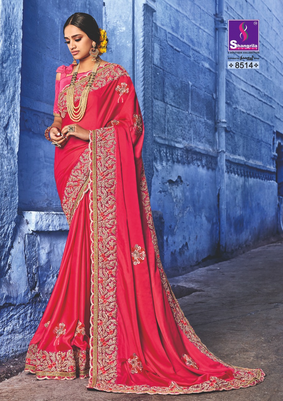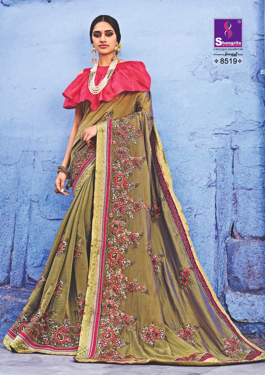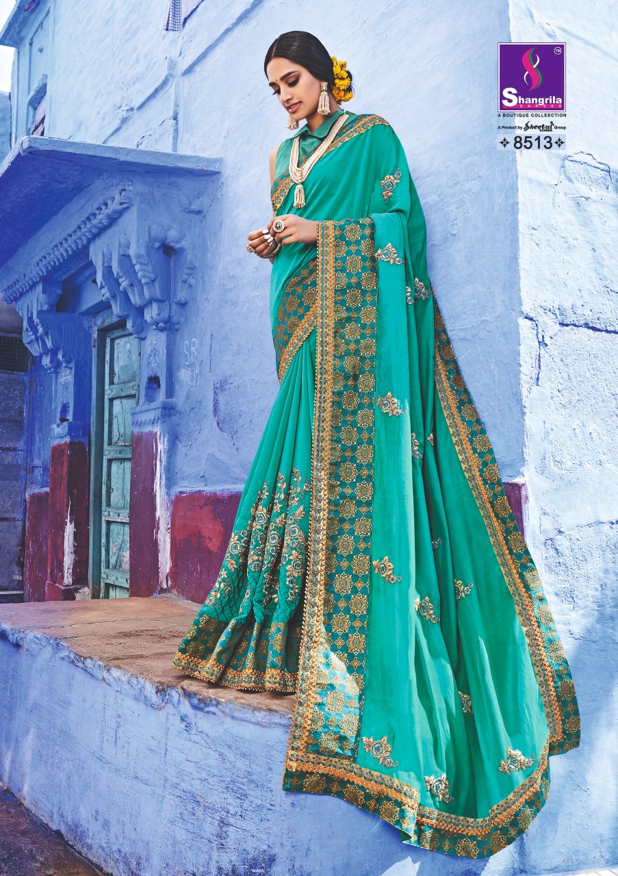 Buy Online Kavyanjali By Shangrila Series 8511 To 8520 Heavy Designer Work Party Wear Sarees Wholesale Supplier Gujarat 10 Pcs of Full Catalogue at Wholesale Price. Looking for Kavyanjali By Shangrila Series 8511 To 8520 Heavy Designer Work Party Wear Sarees Wholesale Supplier Gujarat Full Catalouge at Best Price? Buy Now Kavyanjali By Shangrila Series 8511 To 8520 Heavy Designer Work Party Wear Sarees Wholesale Supplier Gujarat at Wholesale Rate of Rs 12500 with Total 10 Pcs from authroized dealer and supplier of SHANGRILA Brand. Cost of Each piece is just only Rs 1250 which is very low and affordable price to resale the product in your retail store ,This is Surat based Wholesale Supplier & Dealer of SHANGRILA Brand. Click on Brand name to Know more about SHANGRILA Brand's products.Call or Whatsapp on 9898838984 for booking or enquiry